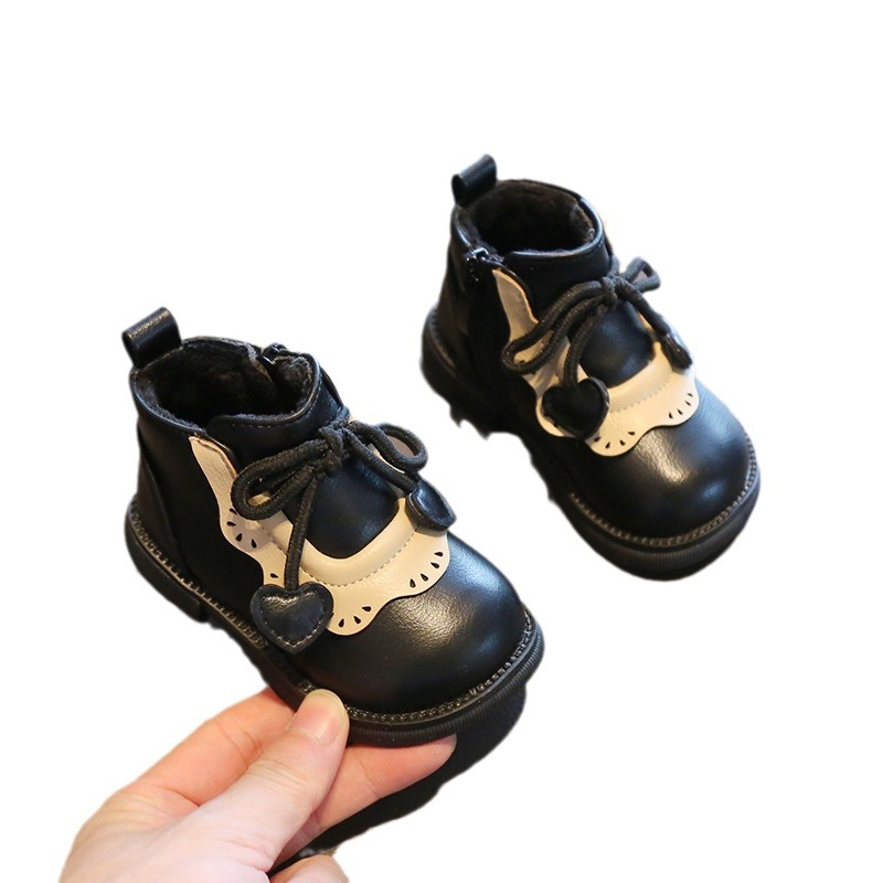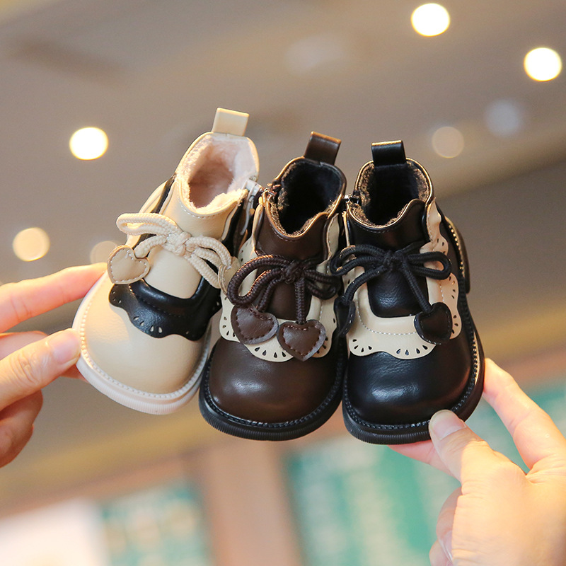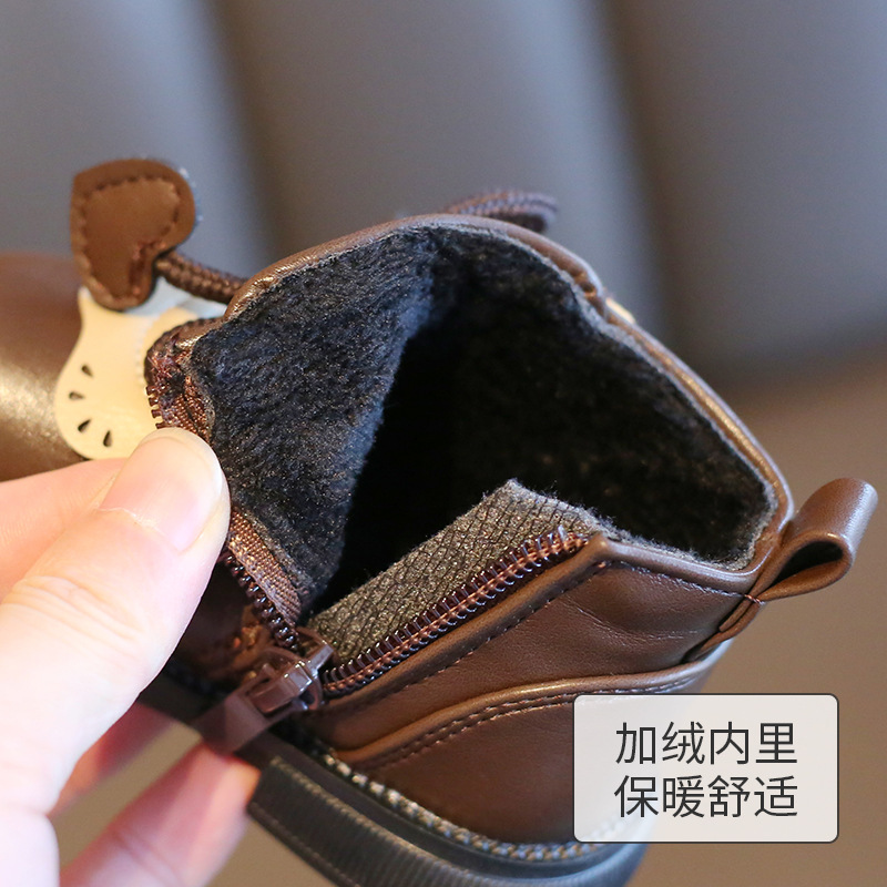 Обувь для девочки из двух хлопка, толстая теплая обувь для малышей на флисовой подкладке, детская зимняя обувь на мягкой подошве для 1 года, 2 короткие сапоги 3