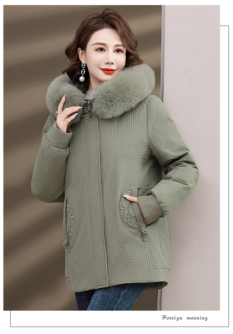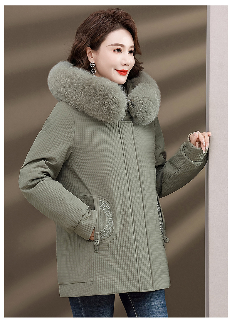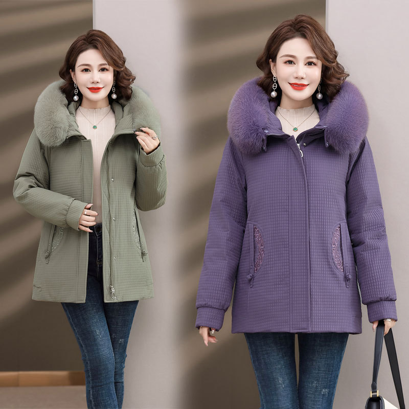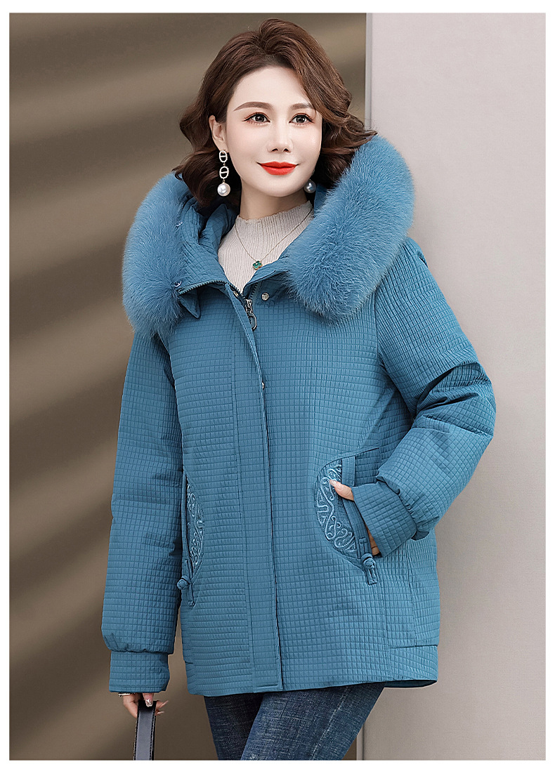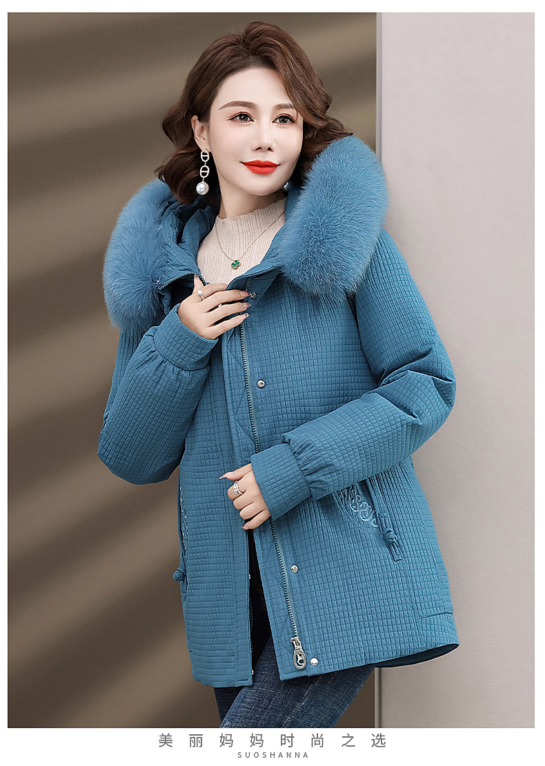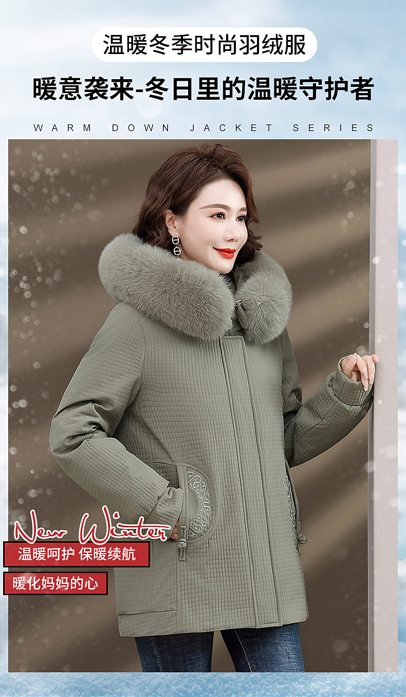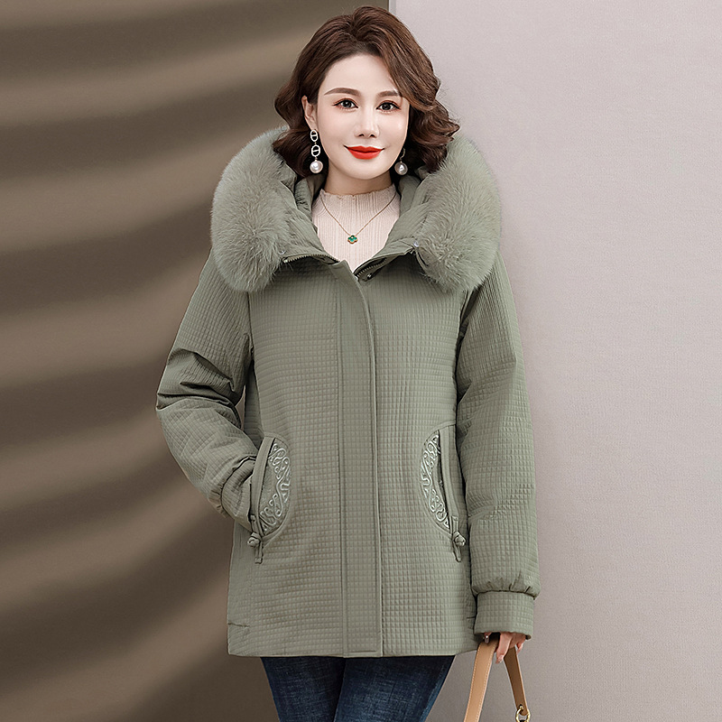 Пуховик для мам, женская теплая зимняя одежда с воротником из лисьего меха, для среднего и пожилого возраста, утепленное пальто в западном стиле, средней длины