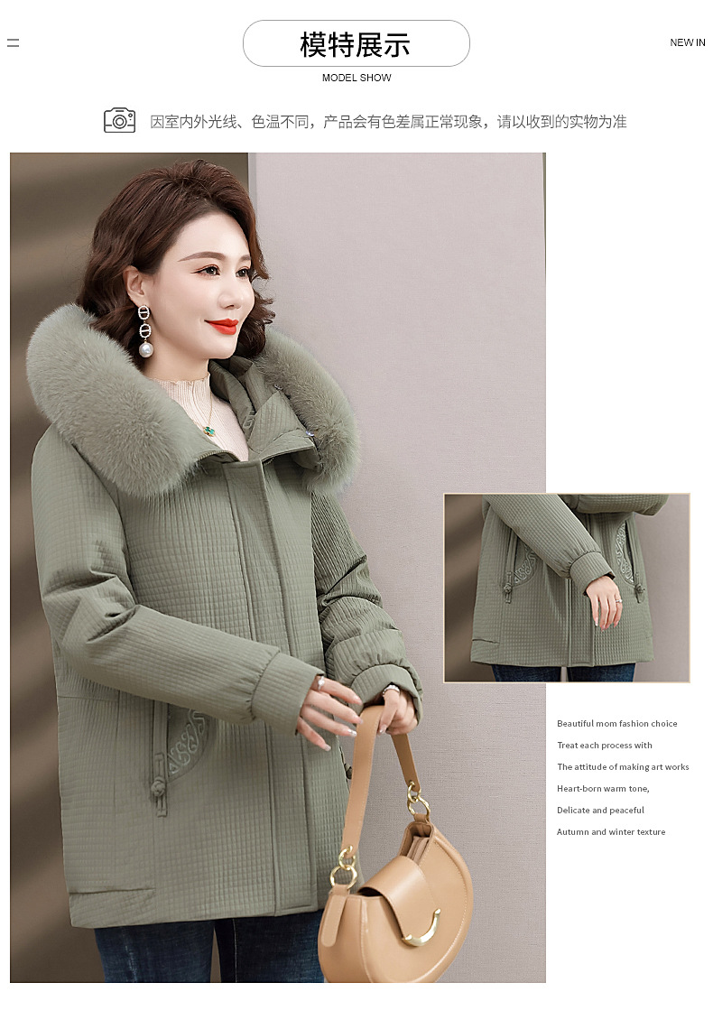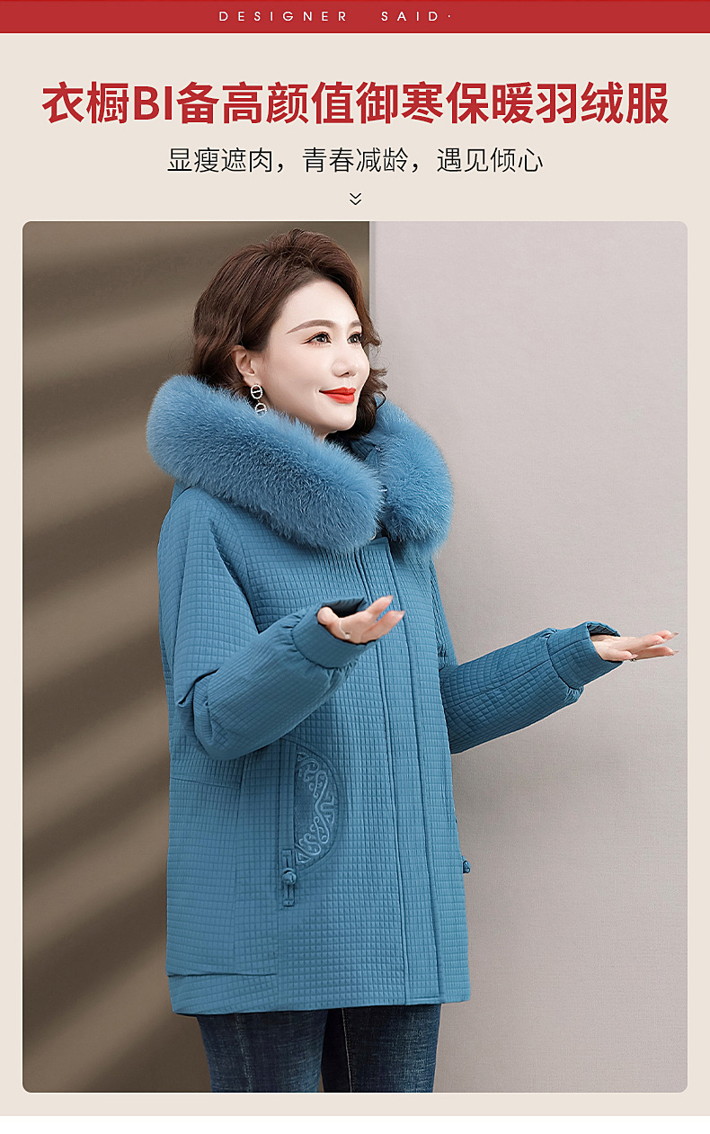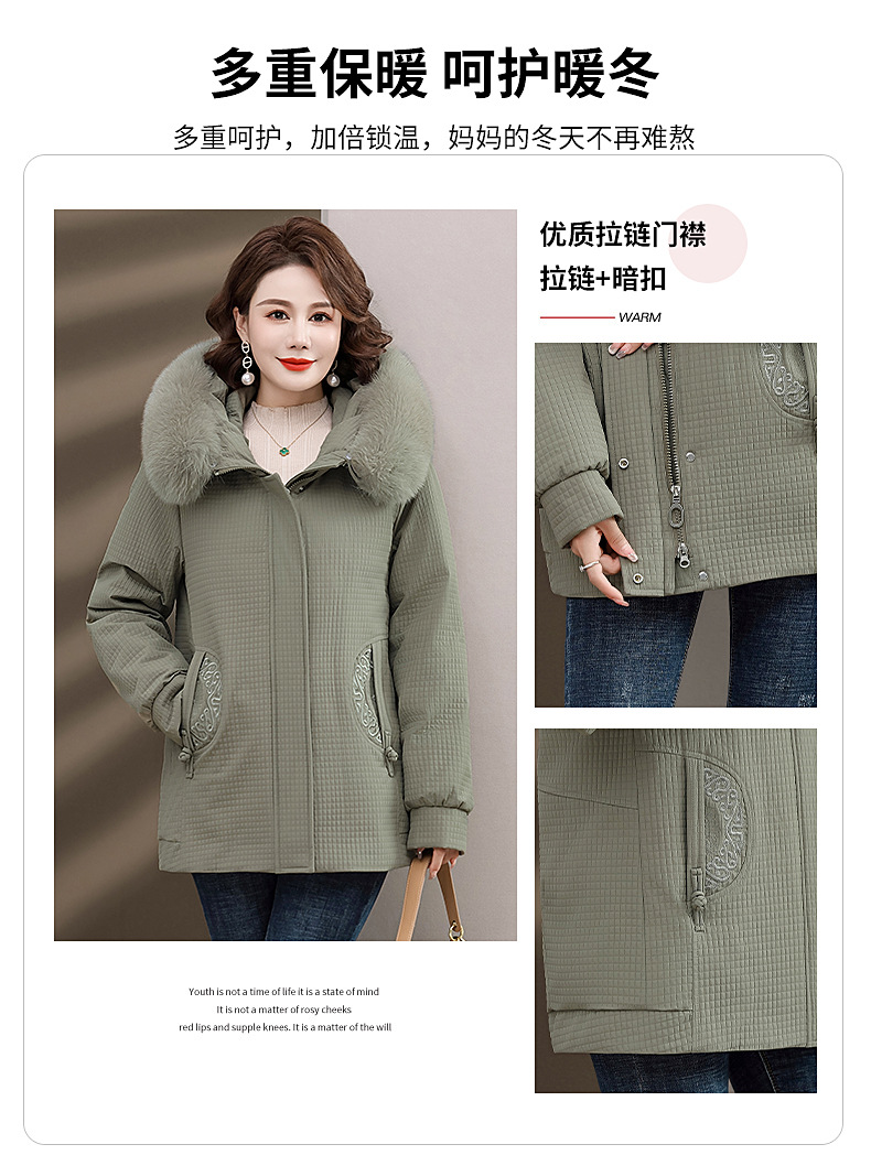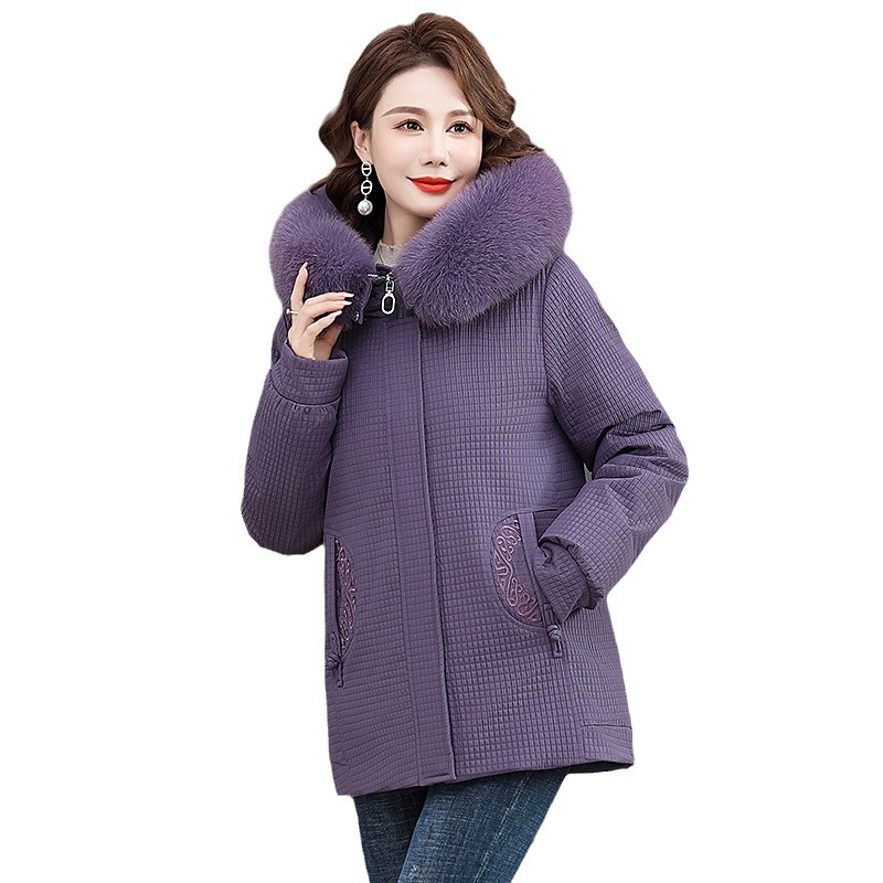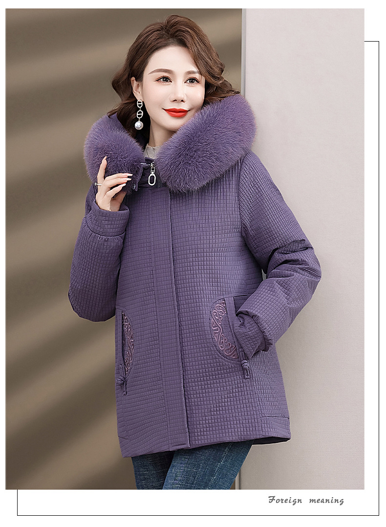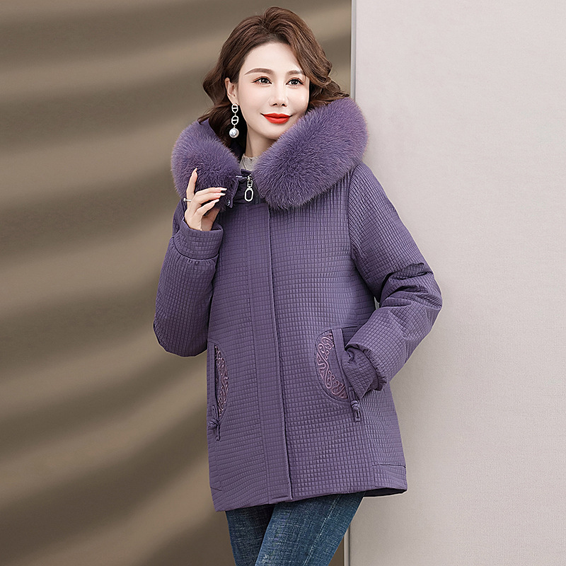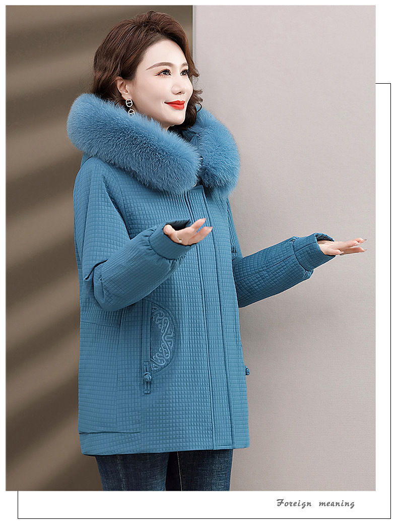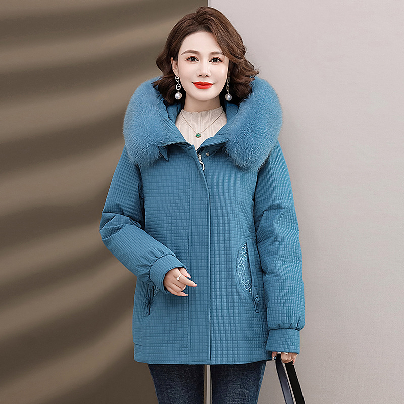 Пуховик для мам, женская теплая зимняя одежда с воротником из лисьего меха, для среднего и пожилого возраста, утепленное пальто в западном стиле, средней длины