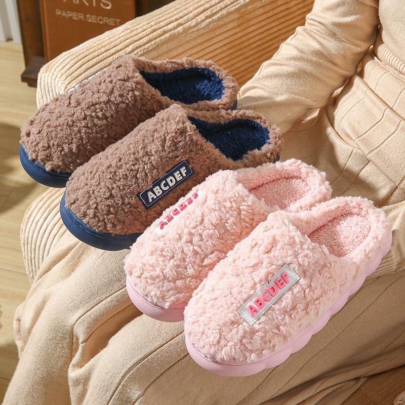 Новые хлопковые тапочки женские осенне-зимние теплые домашние носки с противоскользящим толстым дном на флисовой подкладке, буква наступала на хлопчатобумажную обувь