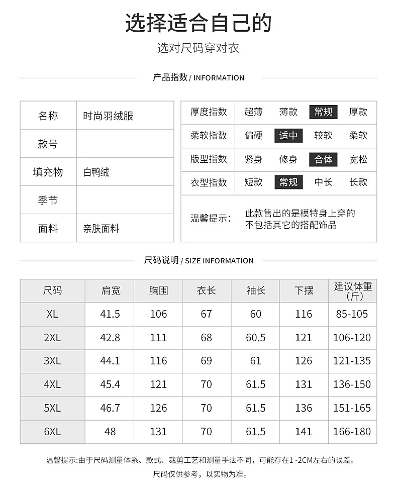 XL (рекомендуется 45,00-55,00 кг; 2XL (рекомендуется 55,00-62,50 кг; 3XL (рекомендуется 62,50-70,00 кг; 4XL (рекомендуется 70,00-77,50 кг; 5XL (рекомендуется 75,00-82,50 кг; 6XL (рекомендуется 82,50-90,00 кг