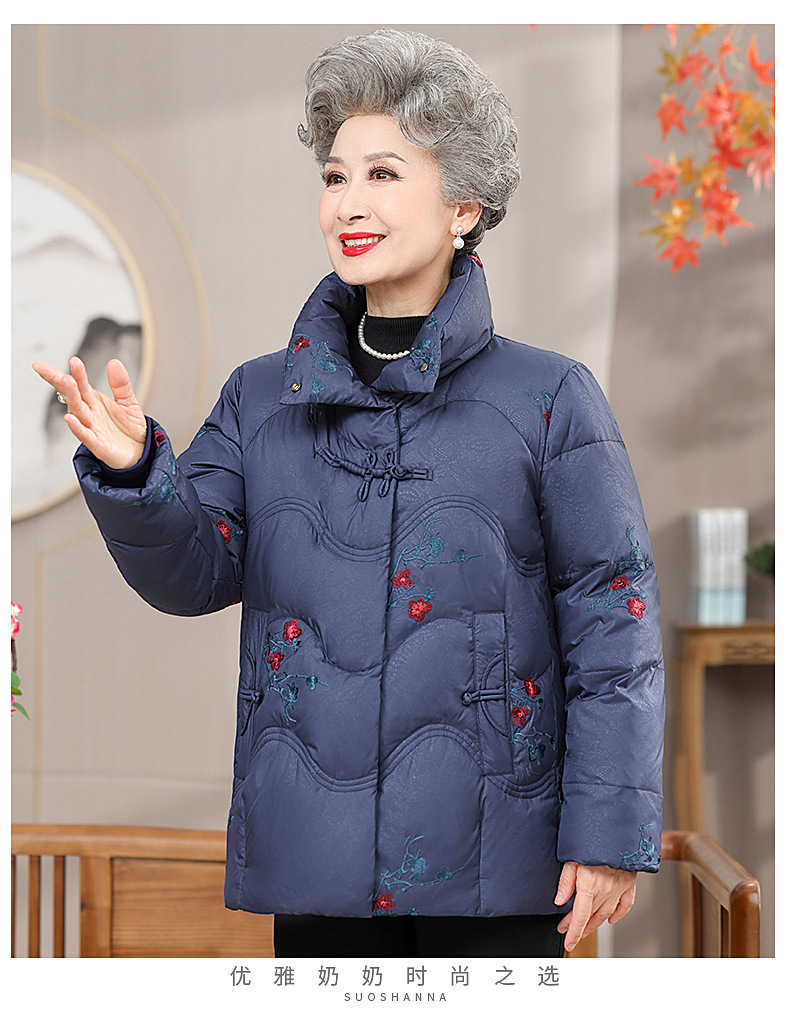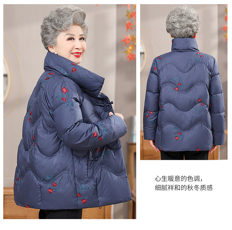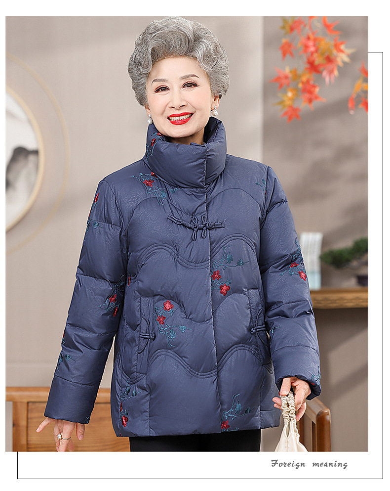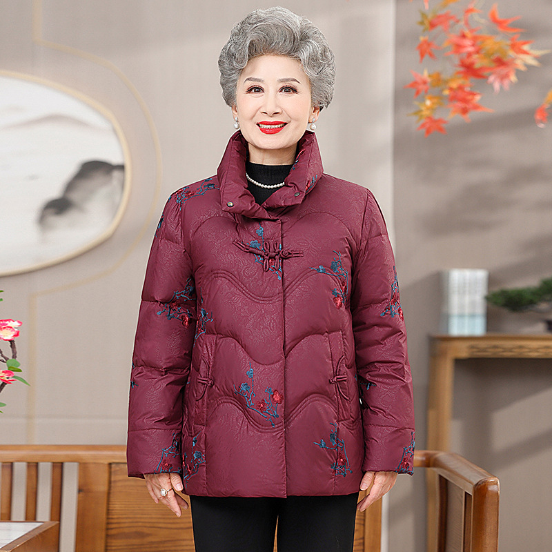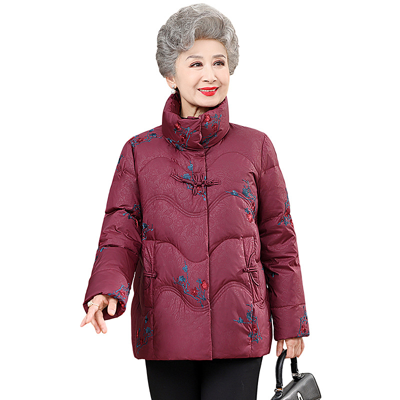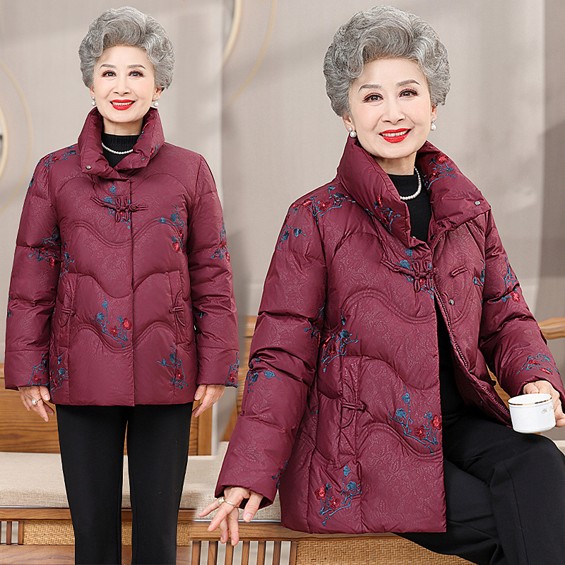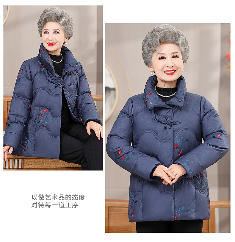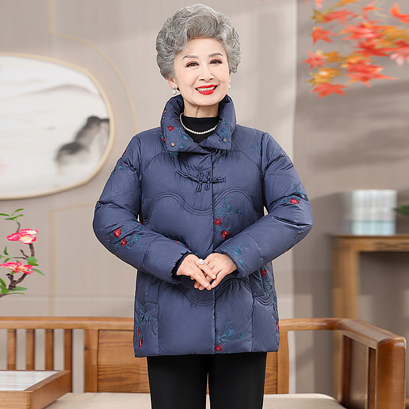 Зимнее новое платье для бабушки с вышивкой пуховик с высоким воротником, старая леди 80-летняя утиная куртка, холодное хлопковое пальто оптом