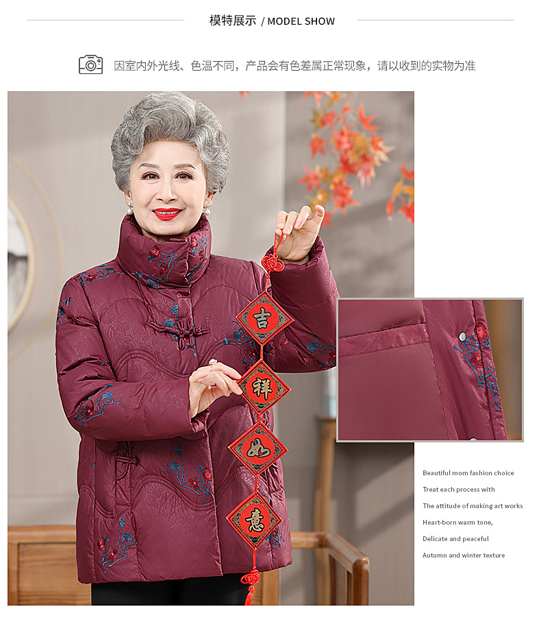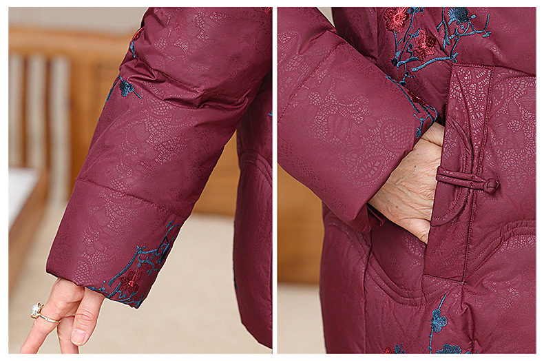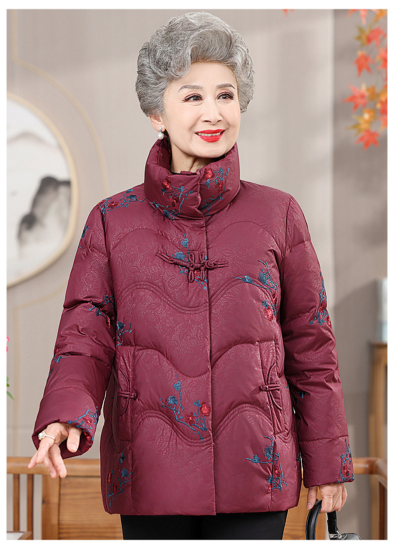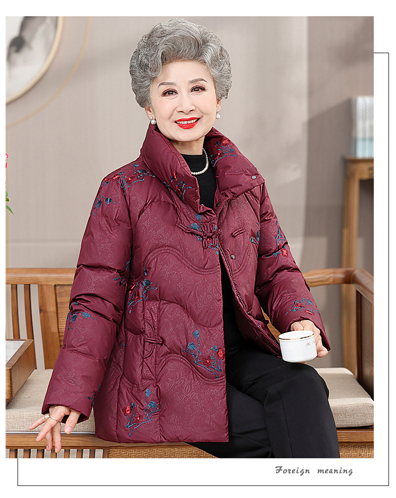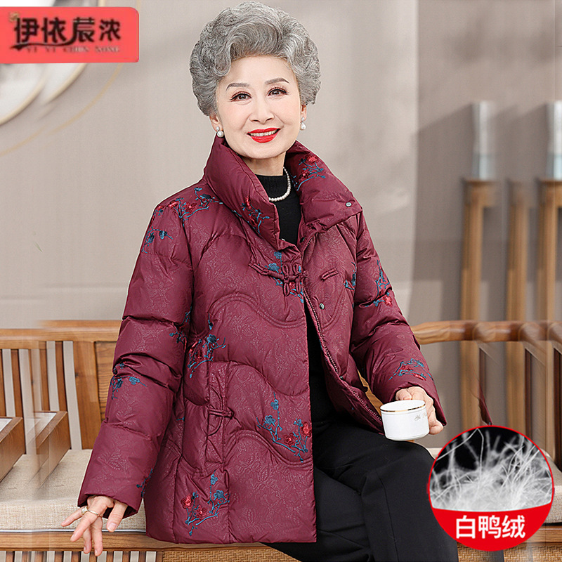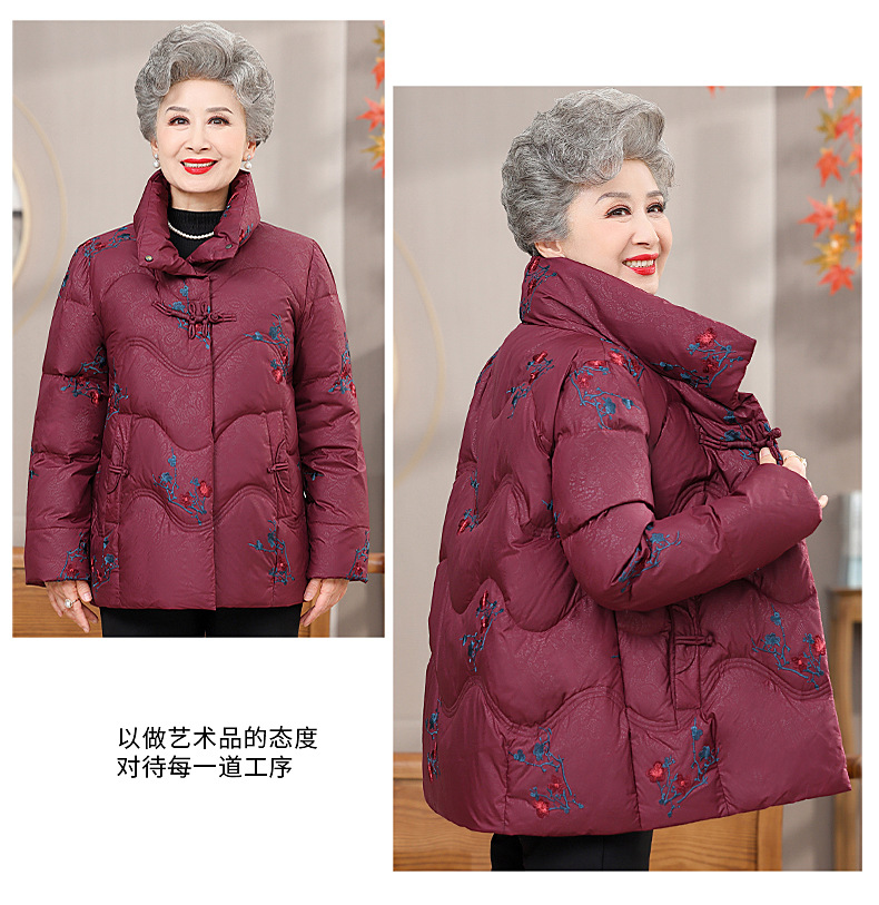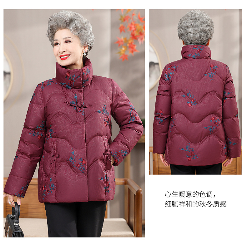 Зимнее новое платье для бабушки с вышивкой пуховик с высоким воротником, старая леди 80-летняя утиная куртка, холодное хлопковое пальто оптом
