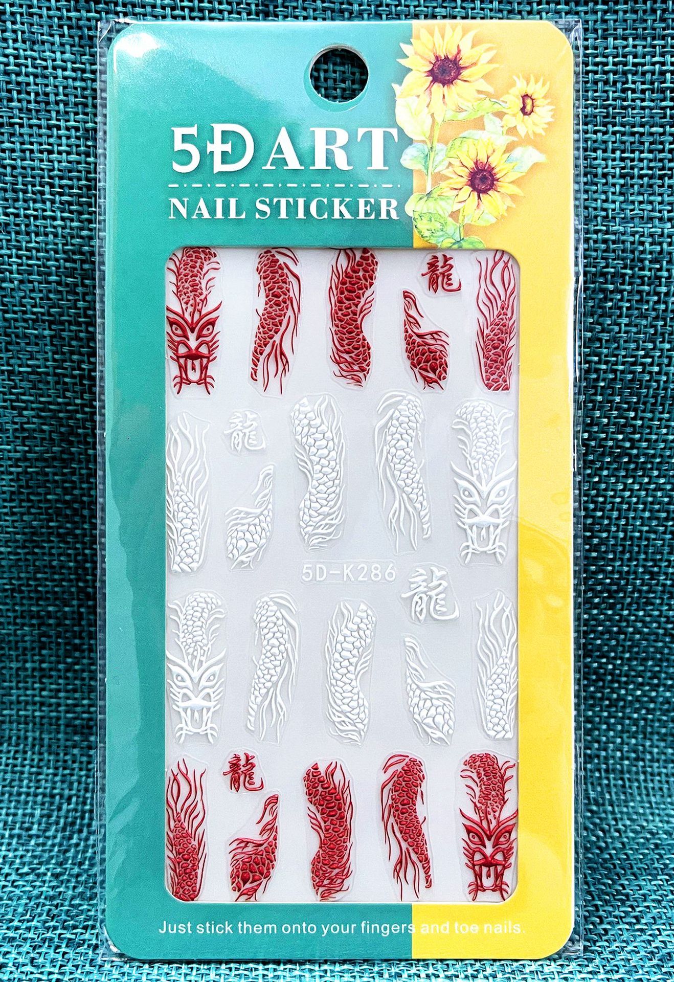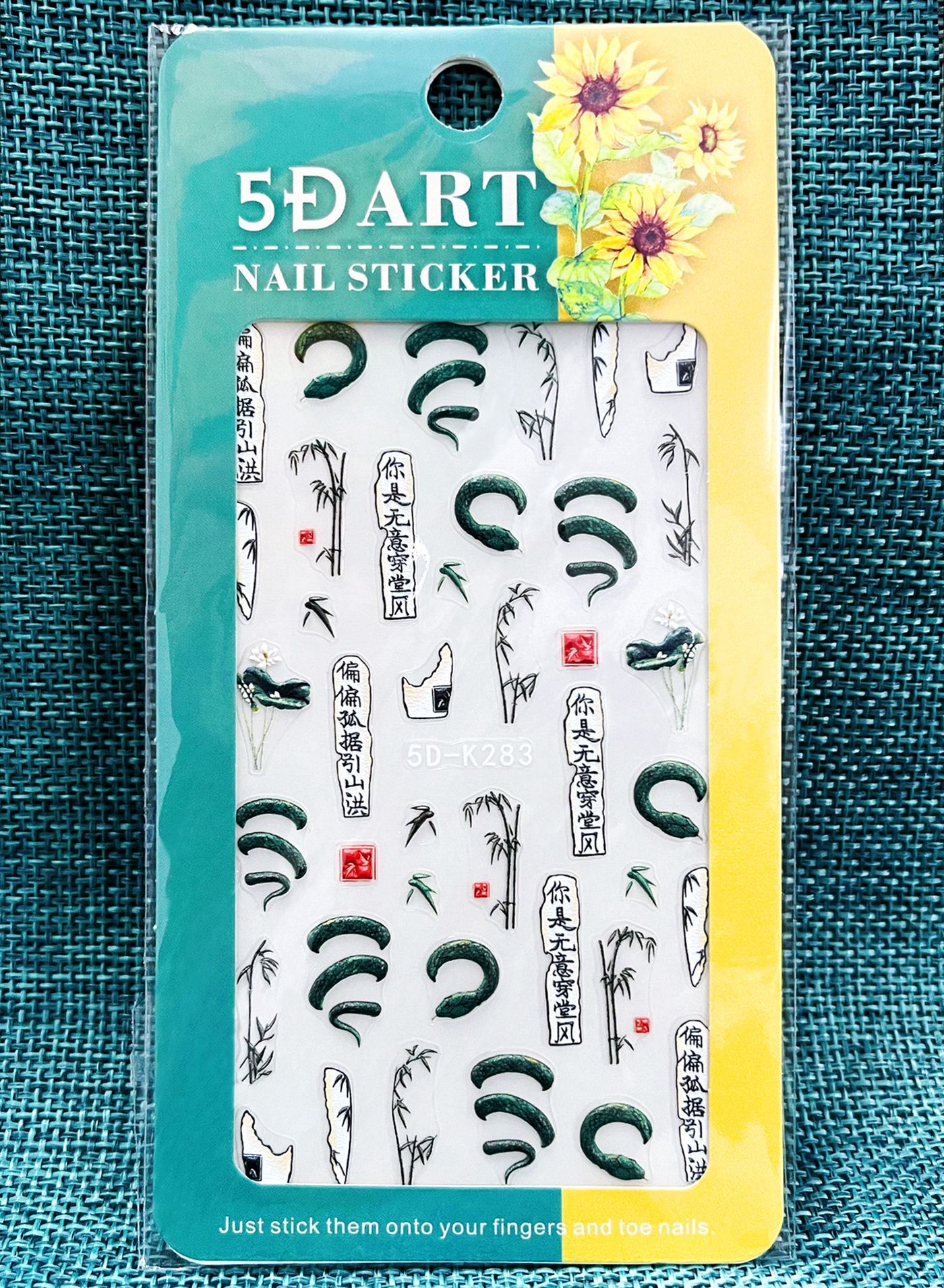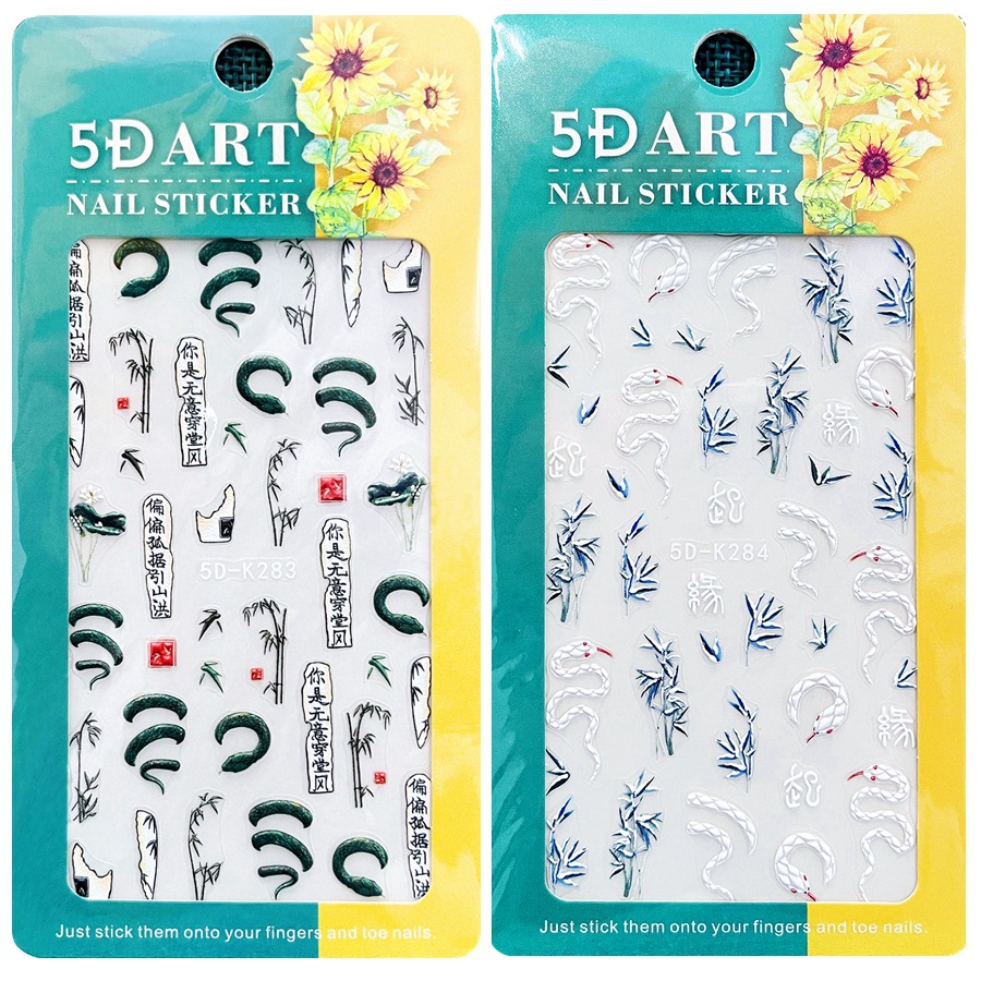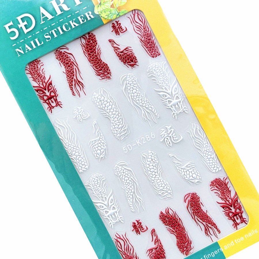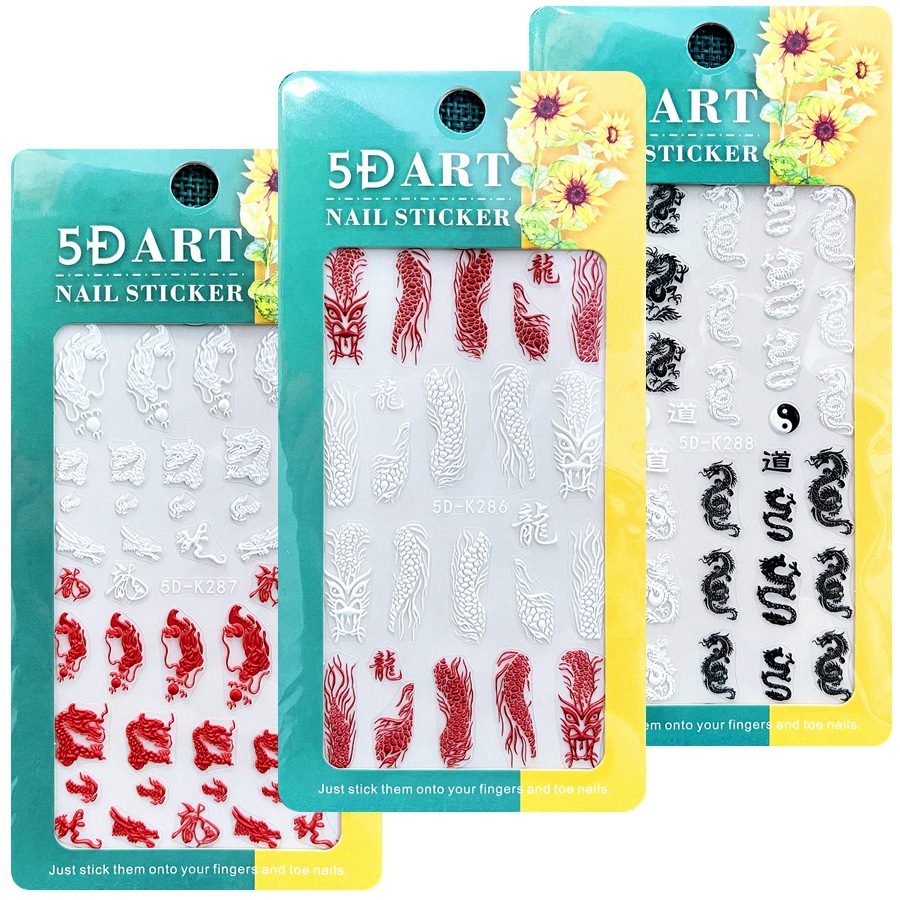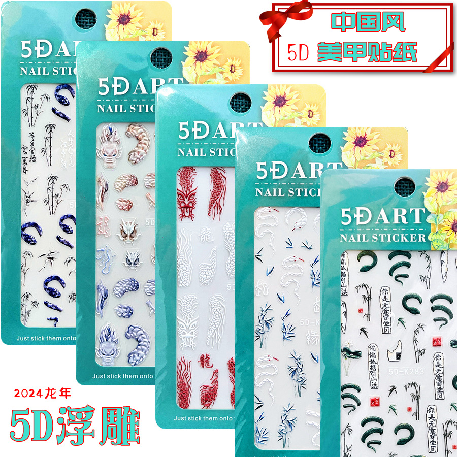 Наклейки для ногтей 5D с объемным тиснением в китайском стиле «Год Дракона 2024», новогодние, с бамбуком и символикой удачи