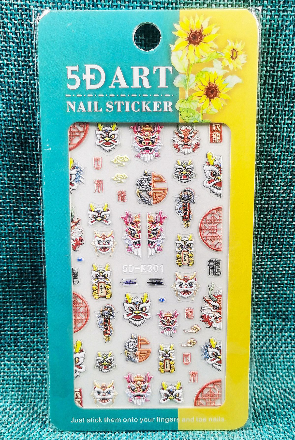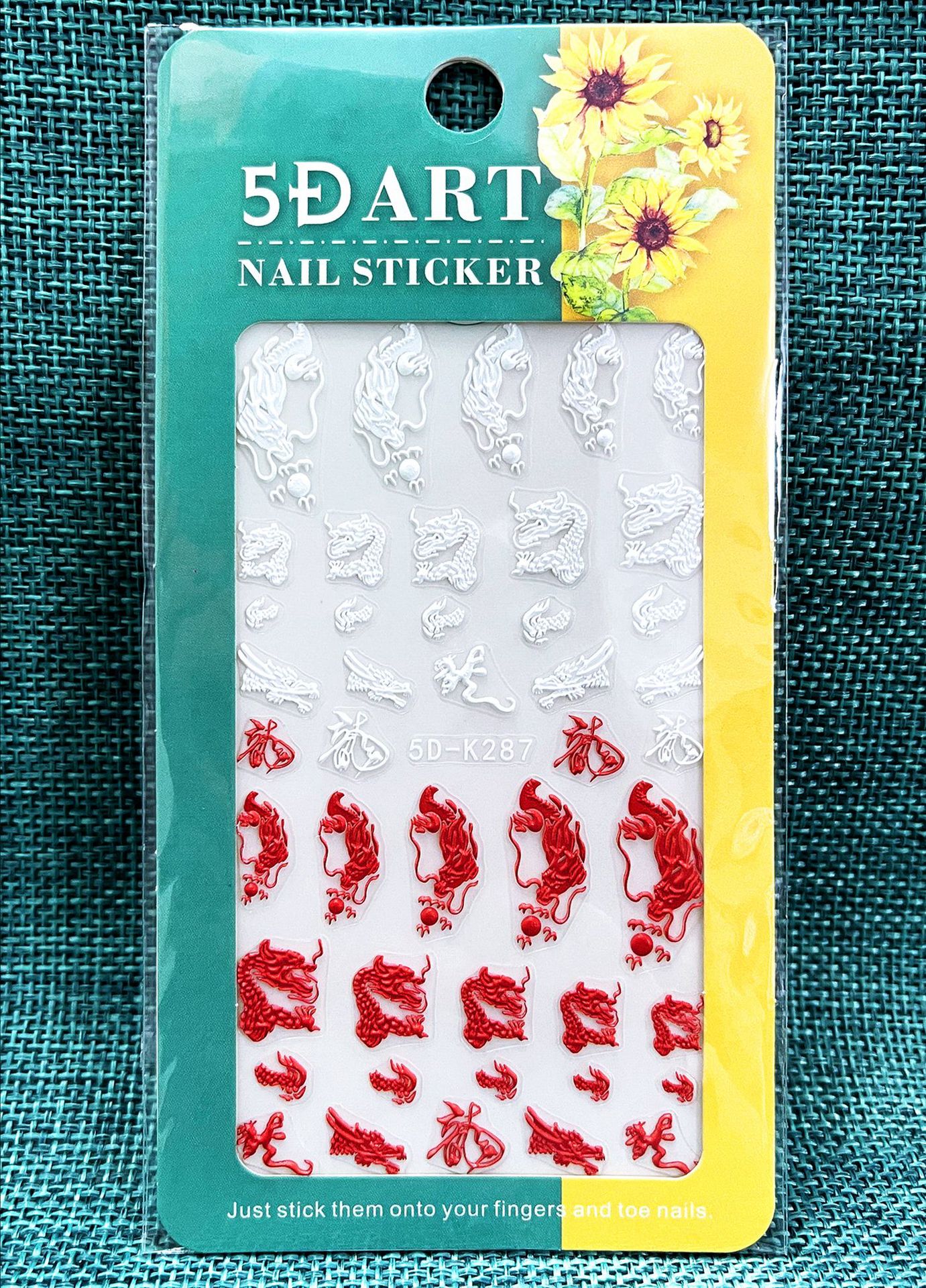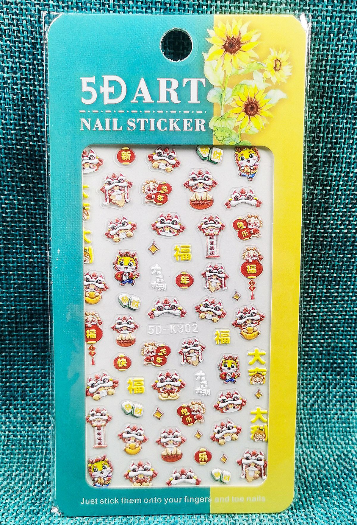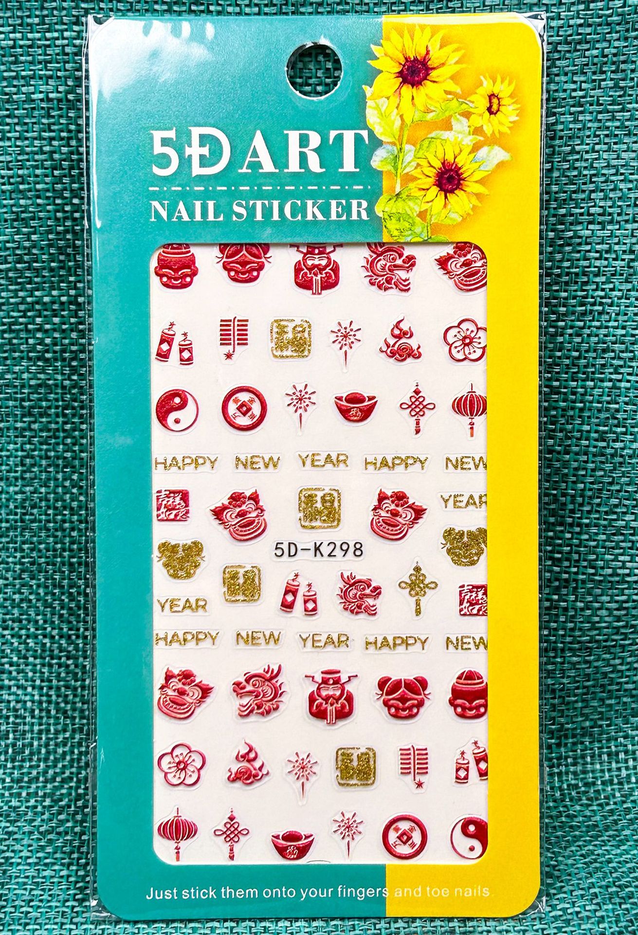 Наклейки для ногтей 5D с объемным тиснением в китайском стиле «Год Дракона 2024», новогодние, с бамбуком и символикой удачи