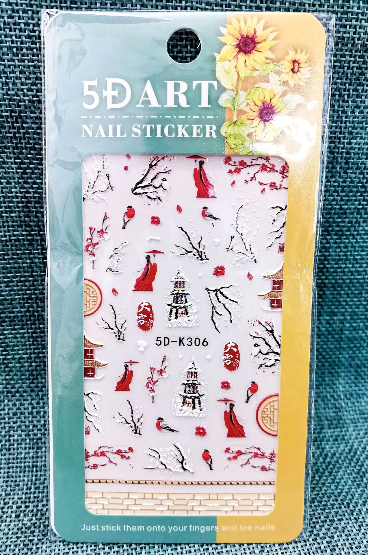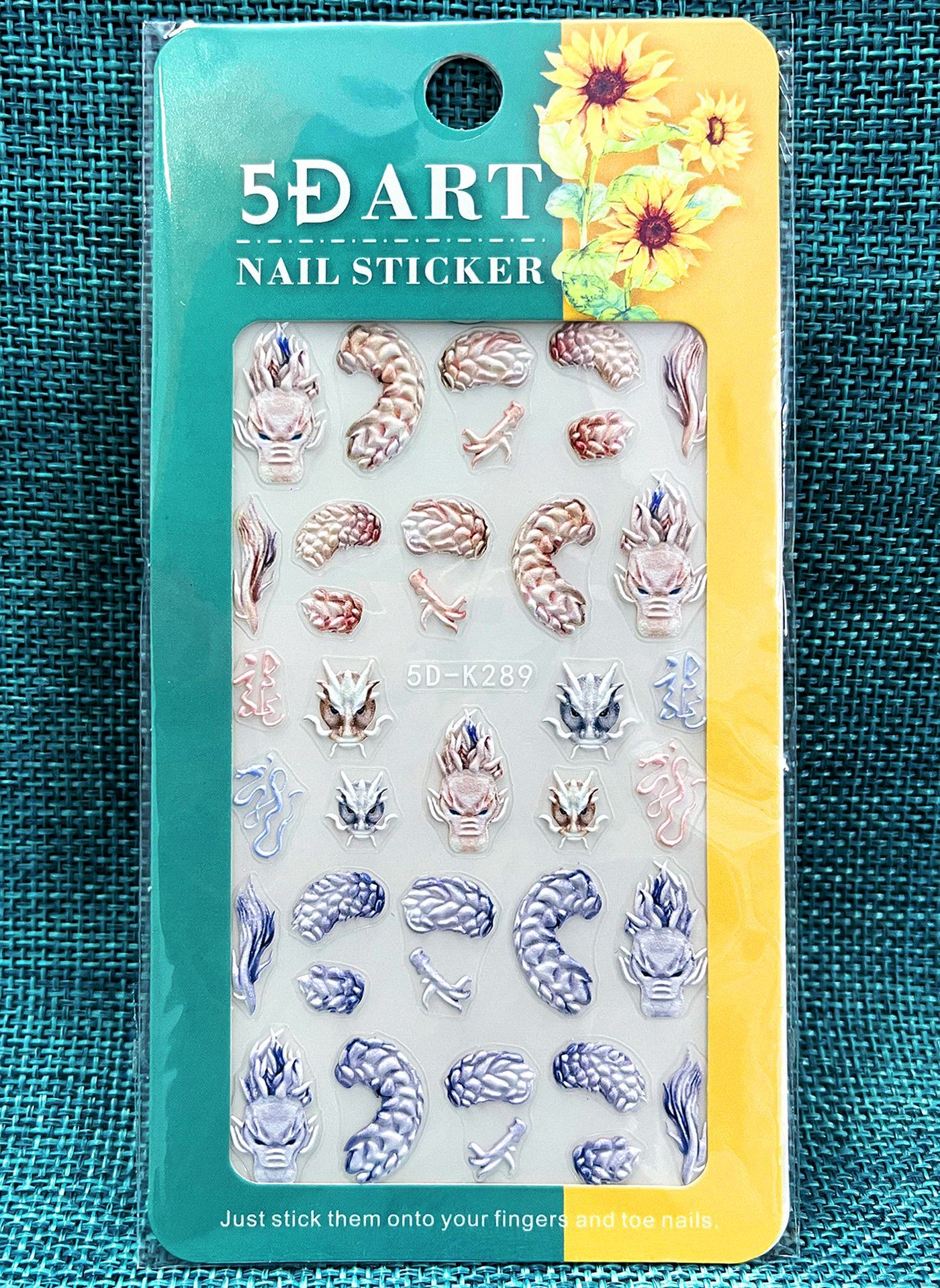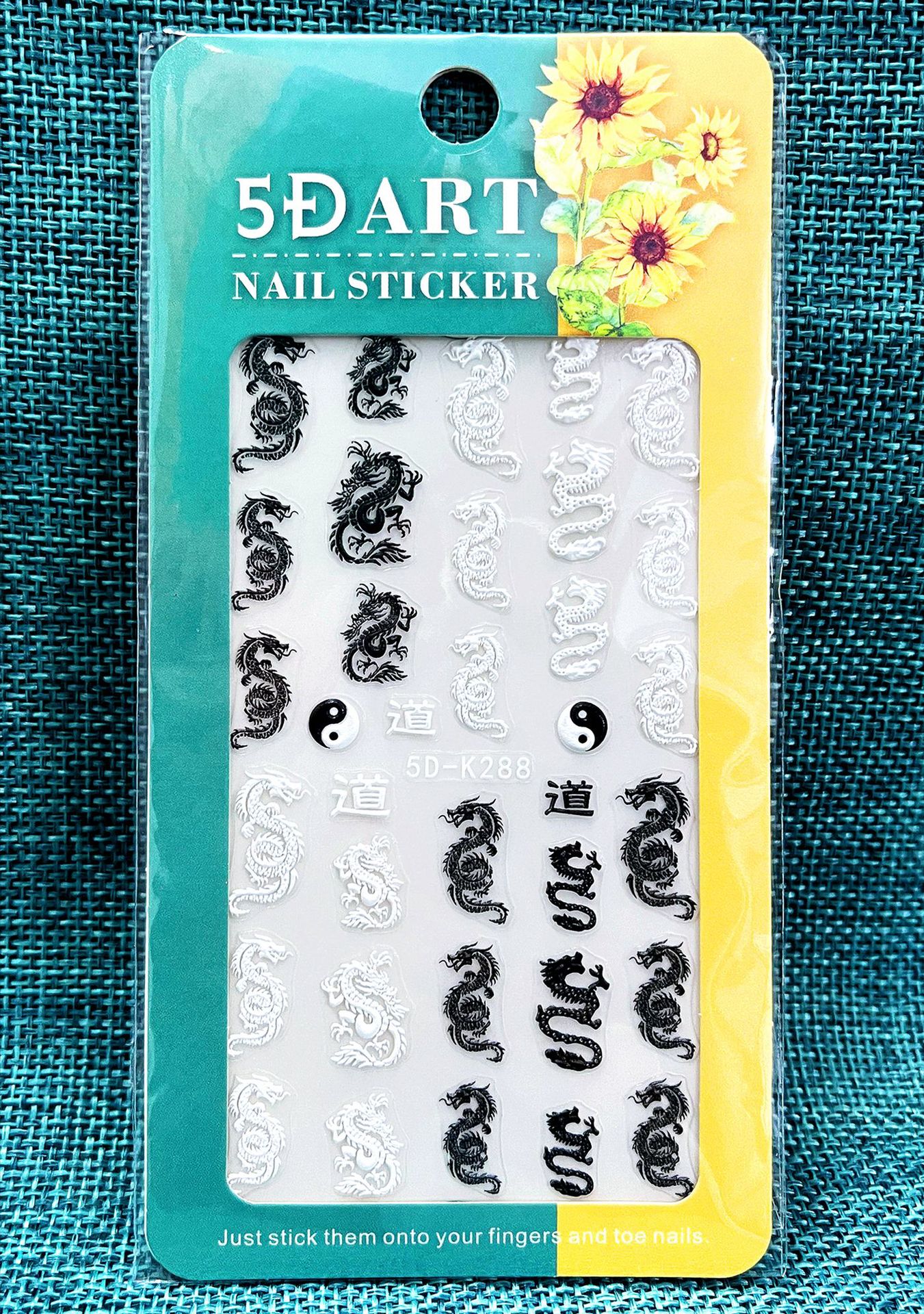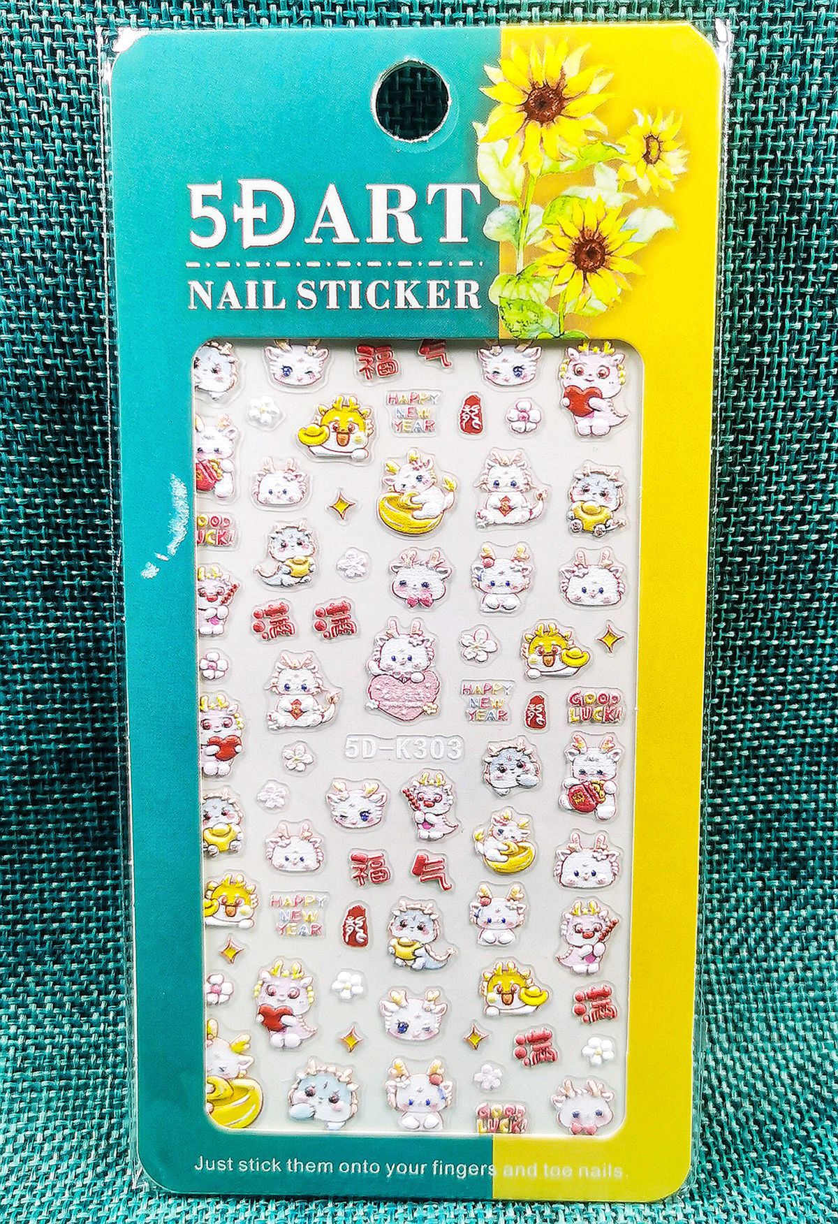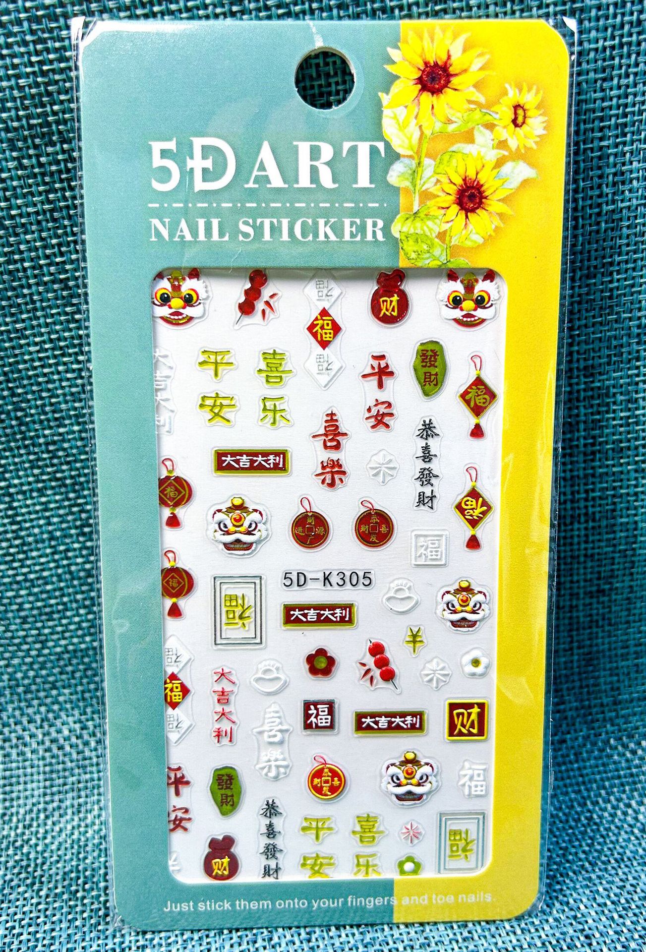 Наклейки для ногтей 5D с объемным тиснением в китайском стиле «Год Дракона 2024», новогодние, с бамбуком и символикой удачи
