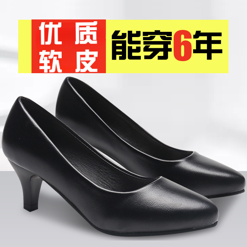Профессиональная рабочая обувь, женская черная кожаная обувь, женская обувь на шпильке, обувь из мягкой кожи, Весенняя рабочая одежда, обувь для стюардессы