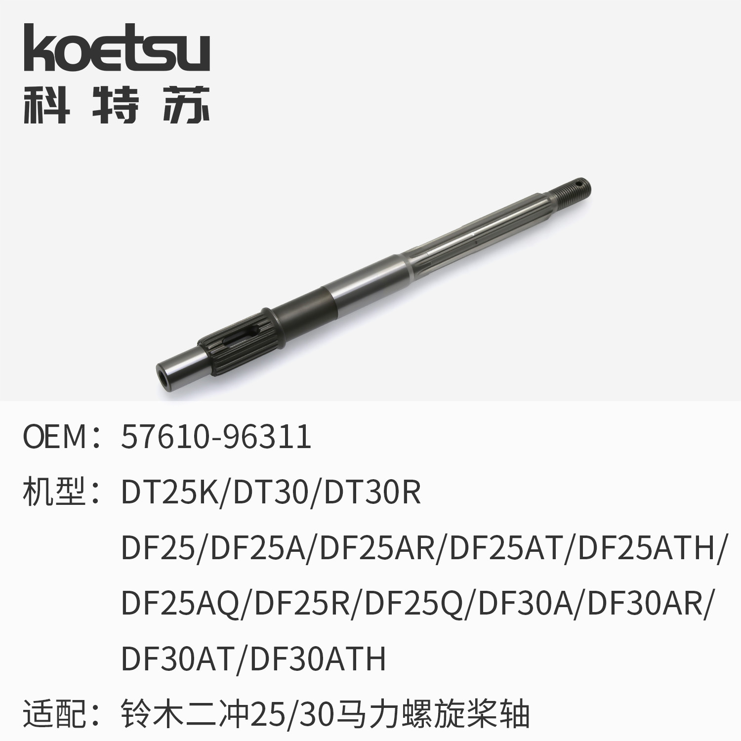Двухтактный вал винта Yamaha мощностью 15 л.с.; Yamaha 2-тактный 30 л.с. карданный вал; Yamaha 2-тактный 40 л.с. карданный вал; Двухтактный вал винта Yamaha мощностью 60 л.с.; Двухтактный шлицевой вал Dongfa мощностью 30 л.с. (346-64211-6)); Приводной вал Yamaha двухтактного двигателя мощностью 15 л.с. (короткий вал 63 В); Приводной вал Yamaha двухтактного двигателя мощностью 15 л.с. (длинный вал 63 В); Приводной вал Yamaha двухтактный 15 л.с. (короткий вал 6B4); Приводной вал Yamaha двухтактный 15 л.с. (длинный вал 6B4); Приводной вал Yamaha двухтактный 30 л.с. (короткий вал); Приводной вал Yamaha двухтактный 30 л.с. (длинный вал); Приводной вал Yamaha 2-тактный 40 л.с. (E40X); Приводной вал Yamaha 2-тактный 40 л.с. (E40J); Приводной вал четырехтактного двигателя Yamaha мощностью 2,5 л.с.; Приводной вал Suzuki двухтактный 9,9/15 л.с. (57100-90L40); Двухтактный приводной вал Suzuki 9,9/15 л.с. (57100-90L30) длинный вал; Приводной вал Suzuki двухтактный 25/30 л.с. (57110-91L10); Двухтактный приводной вал Suzuki мощностью 25/30 л.с. (57110-91L00), длинный вал; Вал гребного винта Suzuki двухтактный 9,9/15 л.с. (57610-99JL0); Спиндельный вал Suzuki двухтактный 25-30 л.с. (57610-96311); Спиндельный вал Suzuki двухтактный 40 л.с. (57610-92L10); Suzuki двухтактный приводной вал 40 л.с. L (57110-92L70); Двойной шатун машины из нержавеющей стали; Короткий вал приводного вала MT4-6 л.с.; Длинный вал приводного вала мощности MT4-6; MT6-9,9 л.с. приводной вал короткий вал; Длинный вал приводного вала MT6-9,9 л.с.; MT9.9-18 л.с. приводной вал короткий вал; Длинный вал приводного вала MT9.9-18 л.с.; Короткий вал приводного вала MT25/30 HP; Приводной вал MT25/30 HP, длинный вал; Приводной вал MT40/50 HP, длинный вал; Карданный вал MT4-5 HP; Карданный вал MT6-9,9 HP; MT9.9-18 Пропеллерный вал HP; Карданный вал MT25/30 HP; Коленвал MT40/50 HP; Двухтактный сцепление Yamaha мощностью 15 л.с.; Двухтактный сцепление Yamaha мощностью 30 л.с.; Двухтактный сцепление Yamaha мощностью 40 Дж; Двухтактная муфта Yamaha мощностью 40 л.с.; Двухтактная муфта Yamaha мощностью 75/85 л.с.; Двухтактный Yamaha мощностью 115 л.с. с когтевым сцеплением.; Двухтактный Yamaha мощностью 150 л.с. с когтевым сцеплением.; Коготь Yamaha мощностью 60–90 л.с.; Четырехтактный сцепление Yamaha мощностью 115–130 лошадиных сил.; Двухтактный когтевой сцепление Dongfa мощностью 18 л.с.; Двухтактный когтевой сцепление Dongfa мощностью 30 л.с.; Сцепление с когтем Suzuki Two-Stroke 15HP; Сцепление с когтем Suzuki Two-Stroke 30HP; Сцепление Suzuki Two-Stroke 40HP Claw