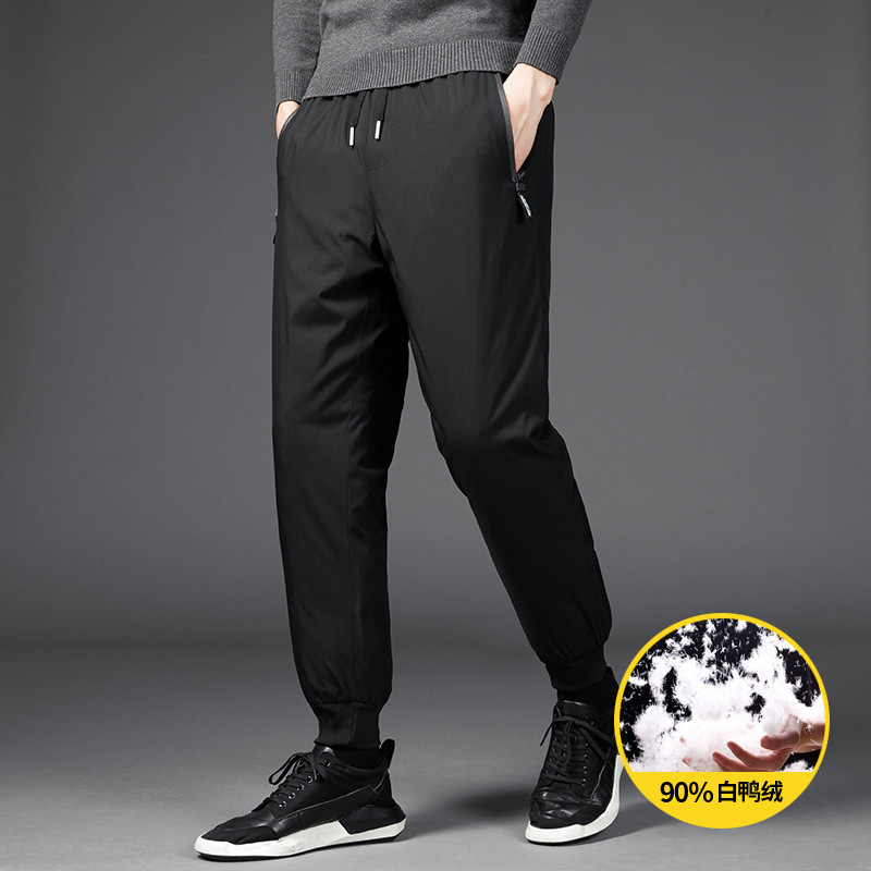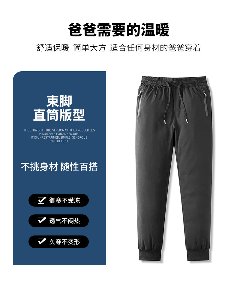 2024 новые зимние утепленные брюки для папы среднего и пожилого возраста, верхняя одежда на белом утином пуху, брюки для бега