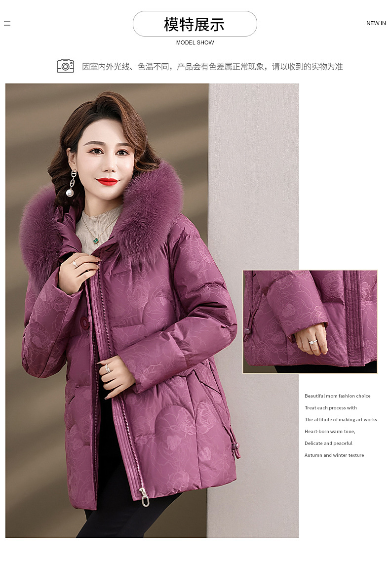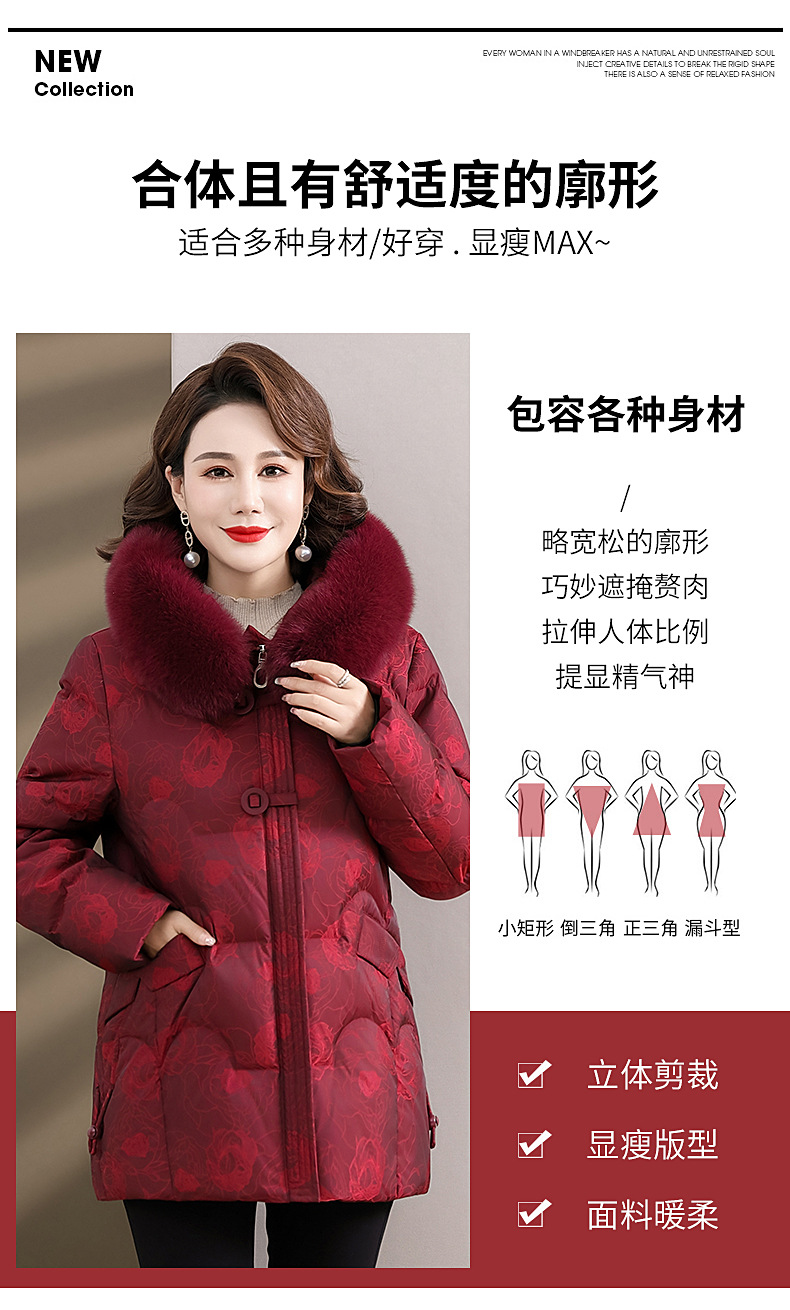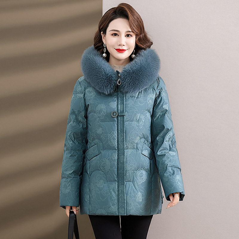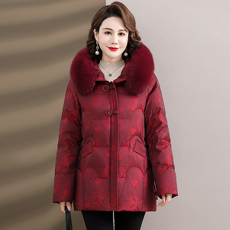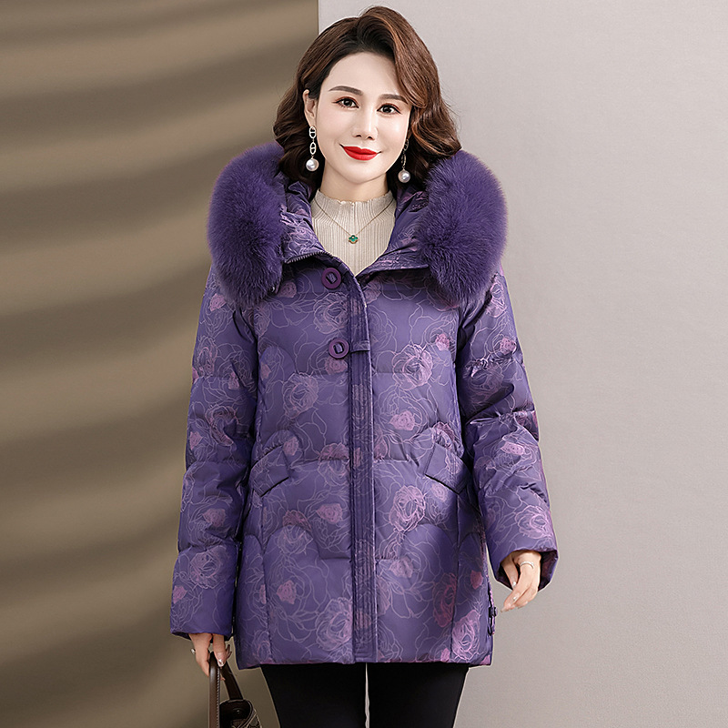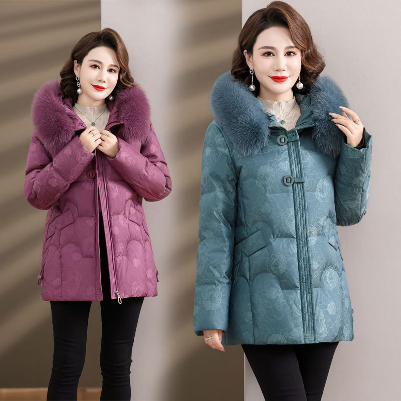 Женская зимняя одежда среднего возраста, материнский белый пуховик на утином пуху 2023, новое зимнее пальто для женщин среднего и пожилого возраста