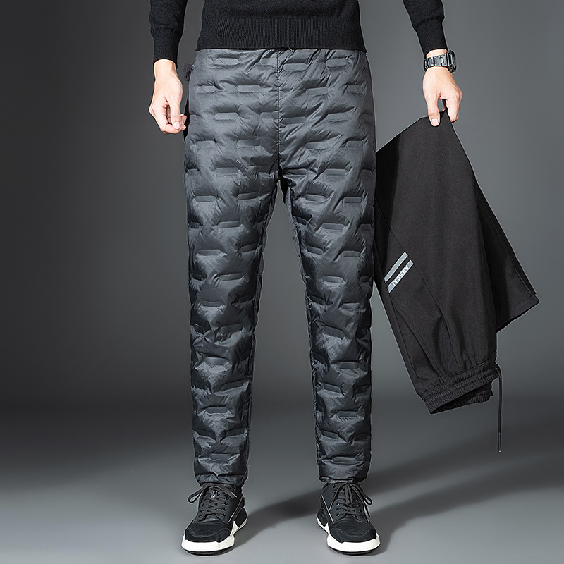 Зимние Холодостойкие белые модные пуховые брюки высокого класса с защитой от холода, мужская верхняя одежда, модные мужские облегающие повседневные теплые брюки для маленьких ног