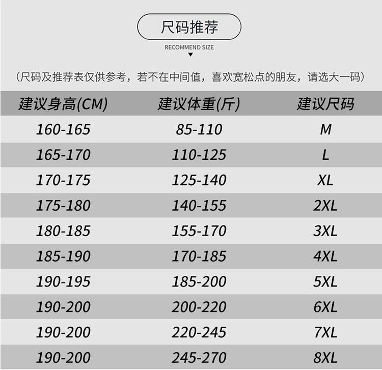М-[ 42.5-52.5kg ]; Л-【 52.5-57.5kg 】; ХЛ-【 57.5-67.5kg 】; 2XL-【 67.5-72.5kg 】; 3XL-【 72.5-82.5kg 】; 4XL-【 82.5-92.5kg 】; 5XL-【 92.5-102.5kg 】