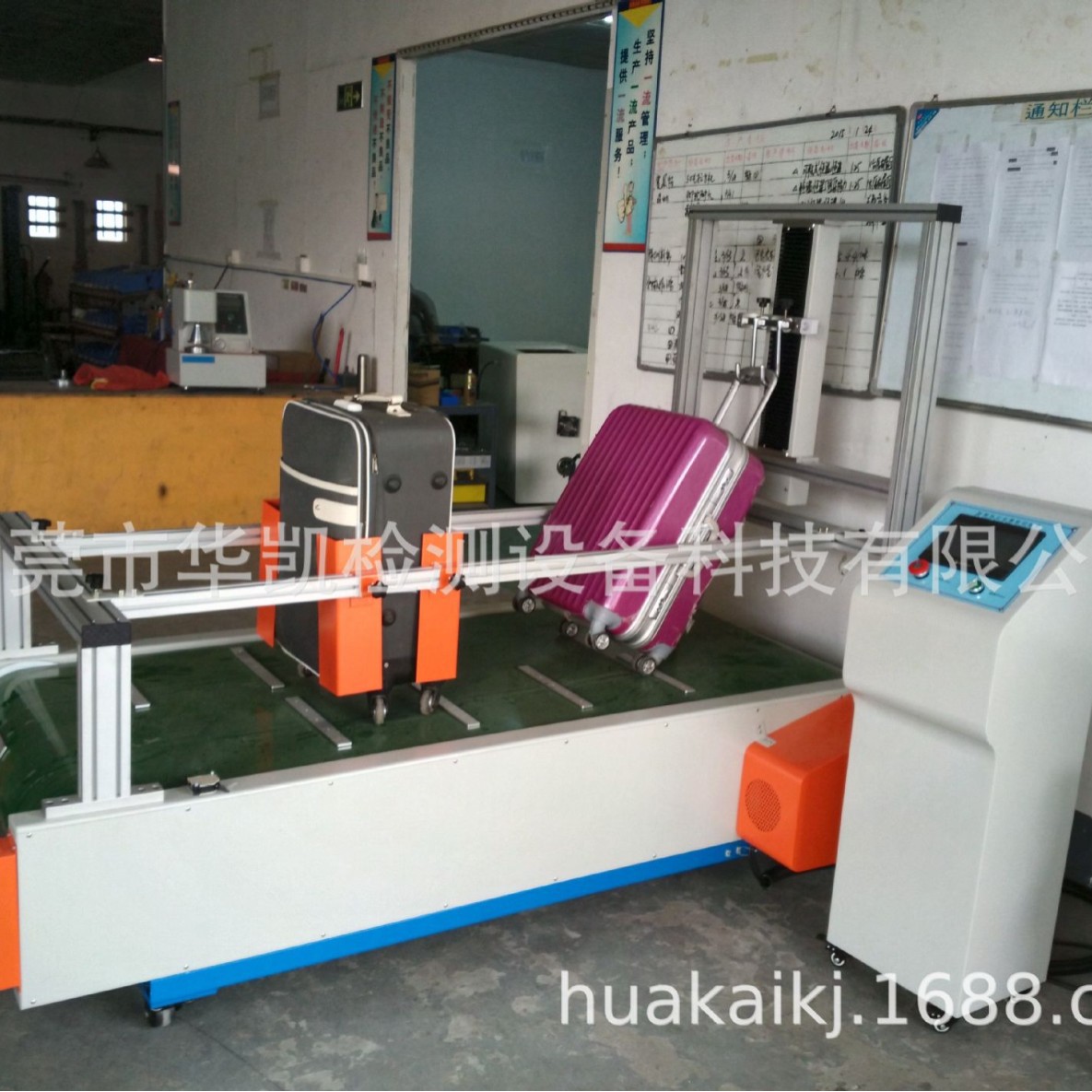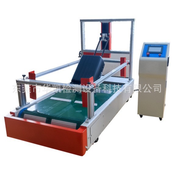 本试验机用于试验附有轮子的旅行箱、旅行包中加载一定的负荷,利用传送带式试验机测试颠簸板与试样走轮产生摩擦和撞击,模拟箱包行走时的使用状况作连续行走测试,来检验试样走轮.轮架.拉杆.箱体质量等。来对产品生产质量控制最有效的途径。