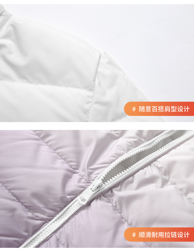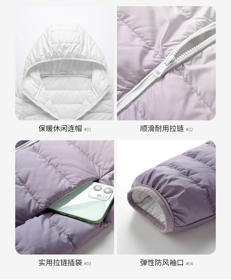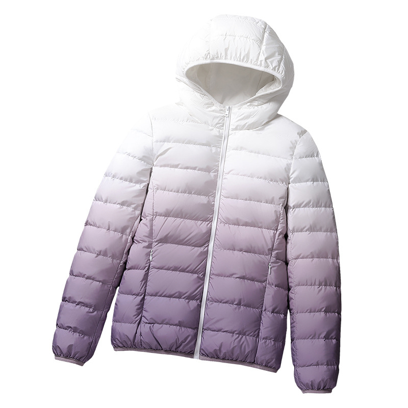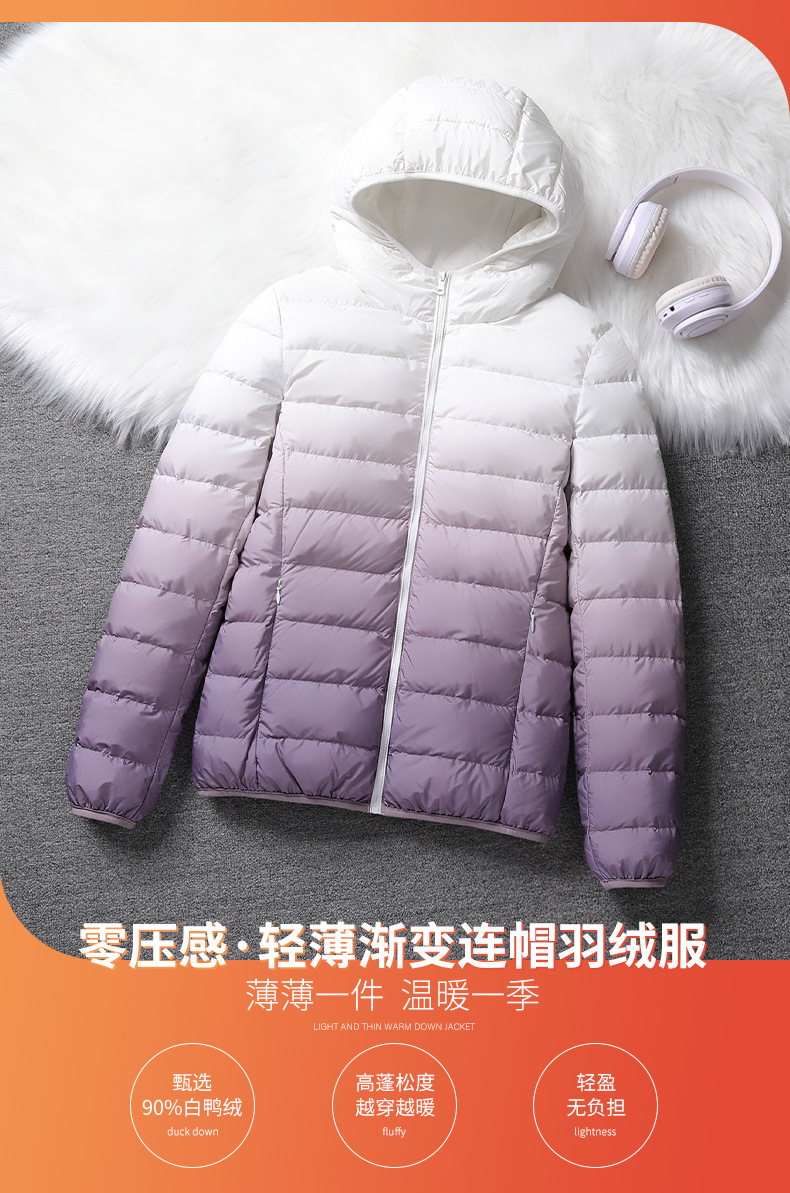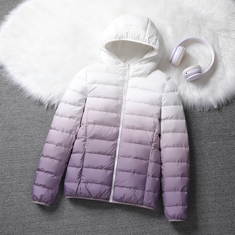 Новый легкий пуховик с коротким градиентным цветом, Модное теплое белое пальто с капюшоном на утином пуху для женщин