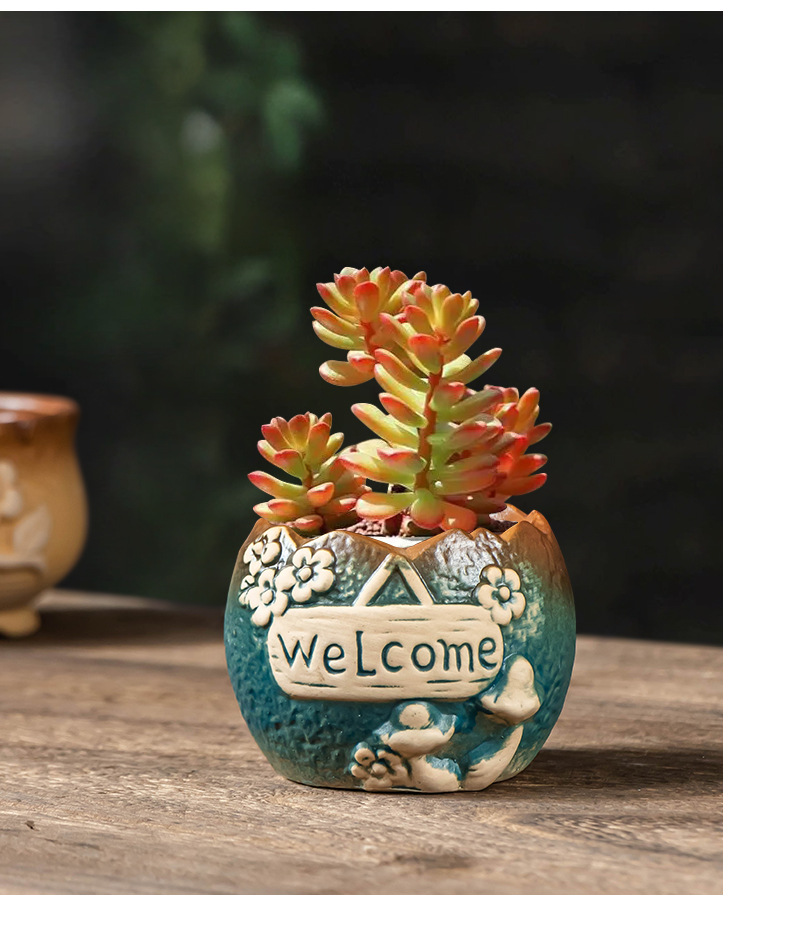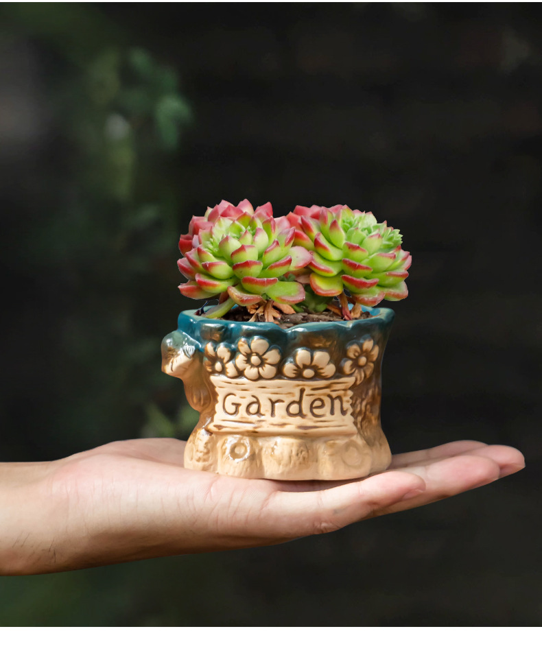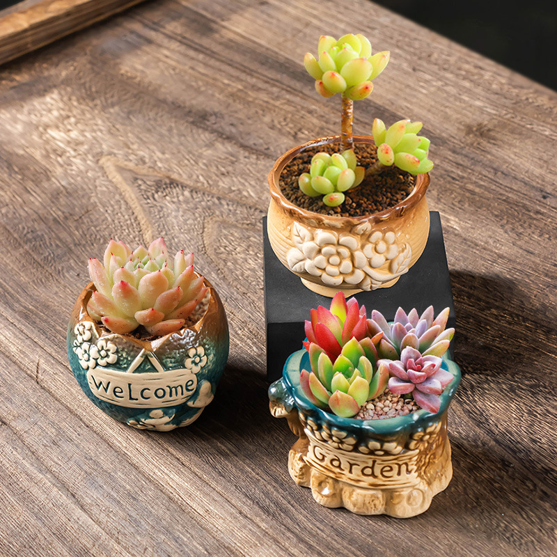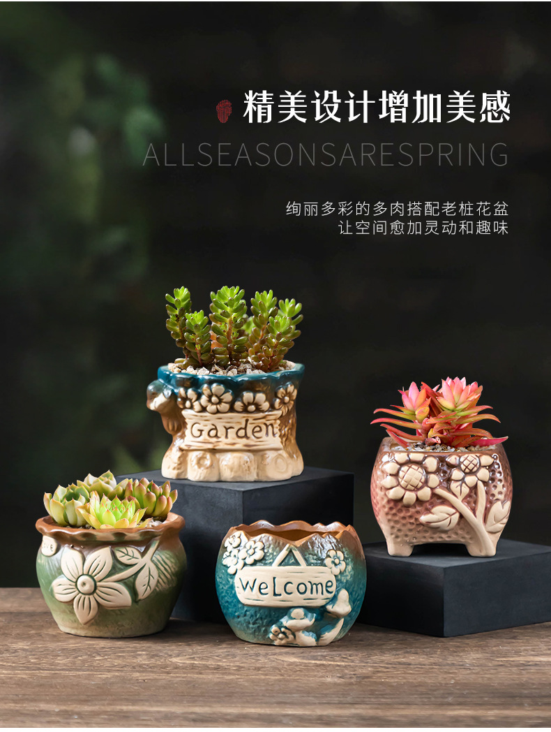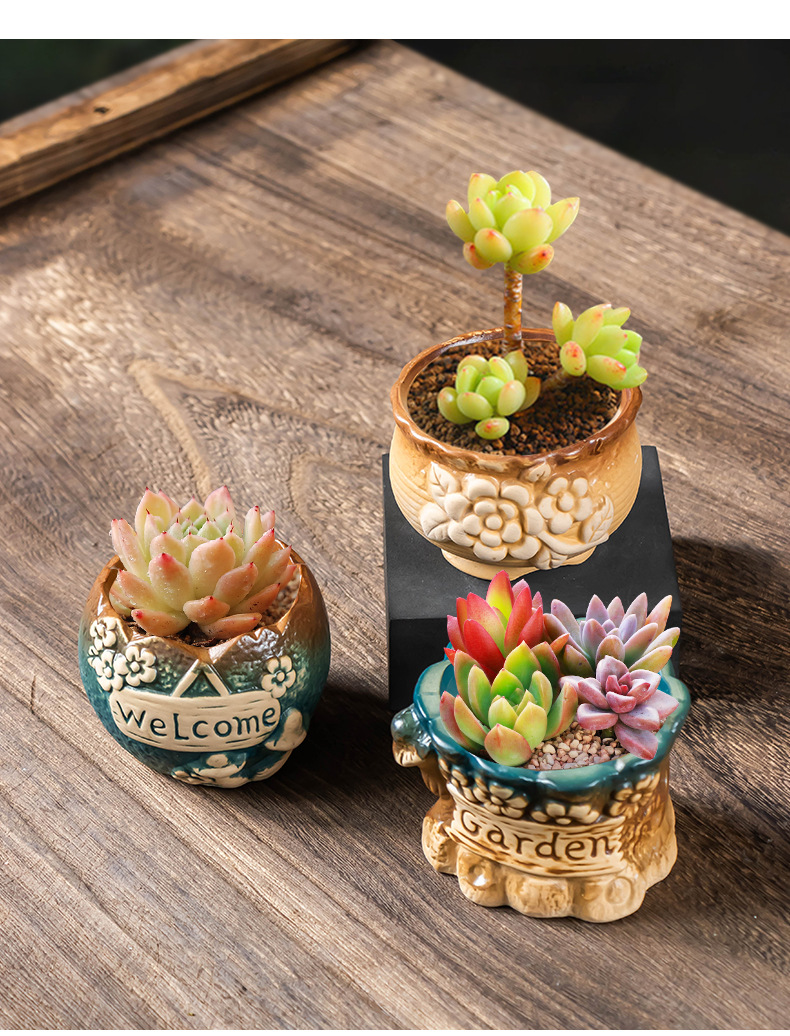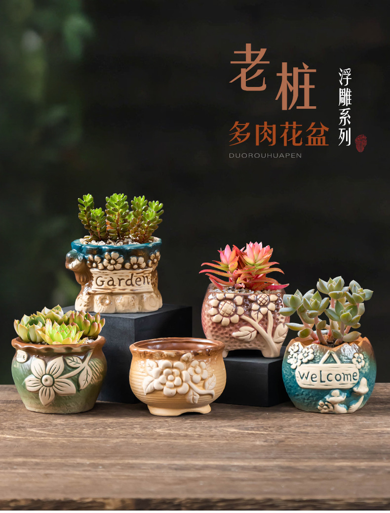 Мясистый цветочный горшок дышащий керамогранит комнатное растение в горшке небольшого размера зеленое растение винтажный рельефный цветочек керамические украшения на столе