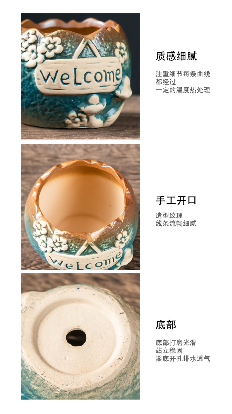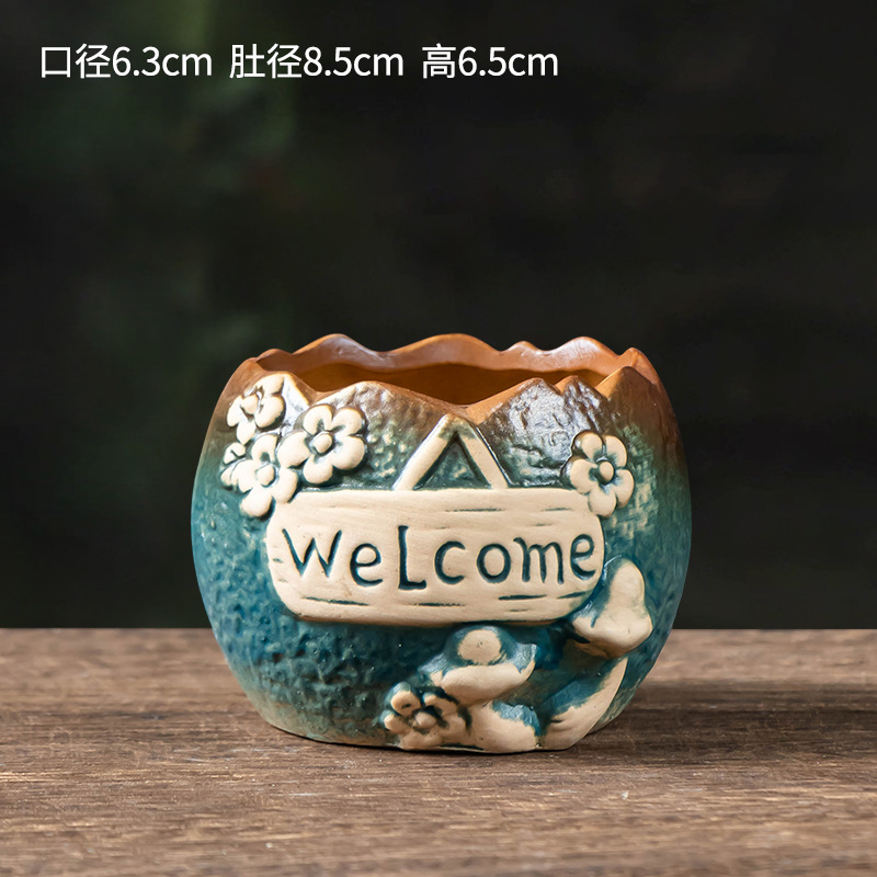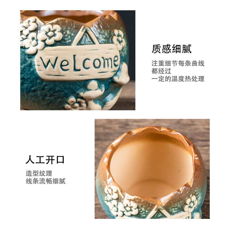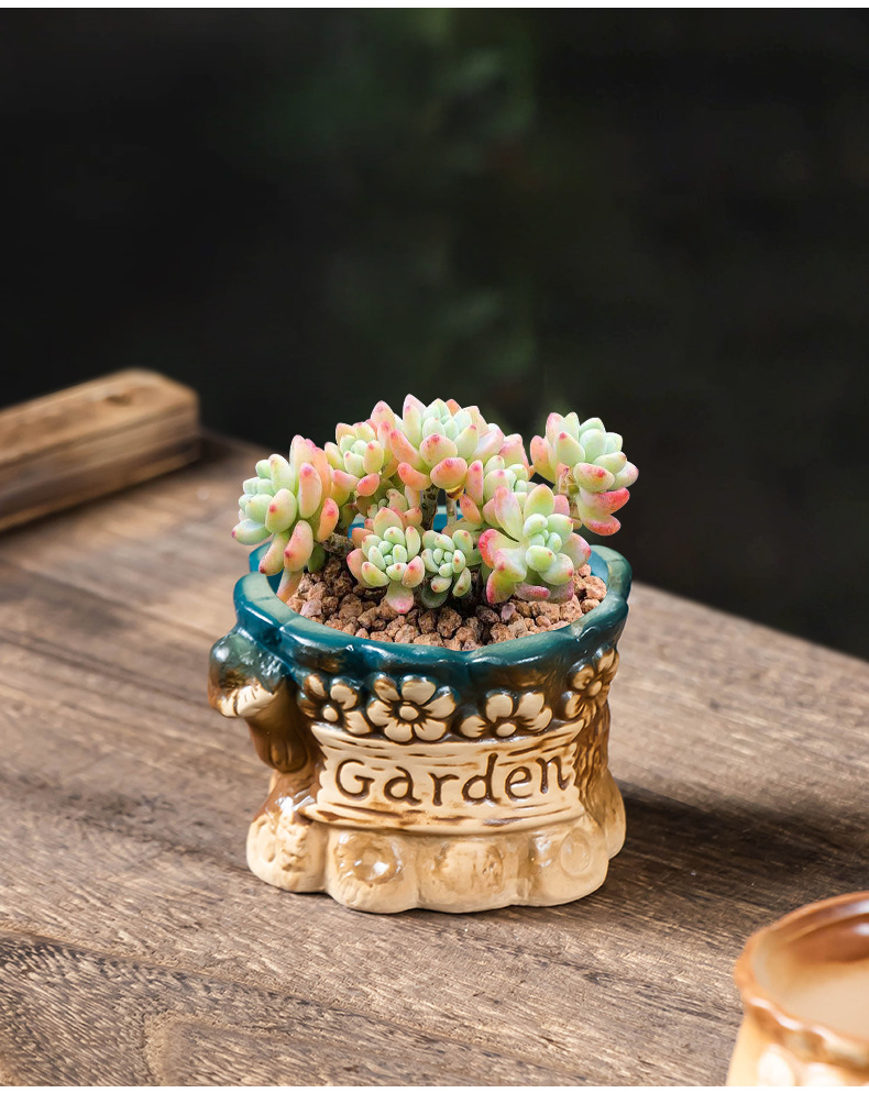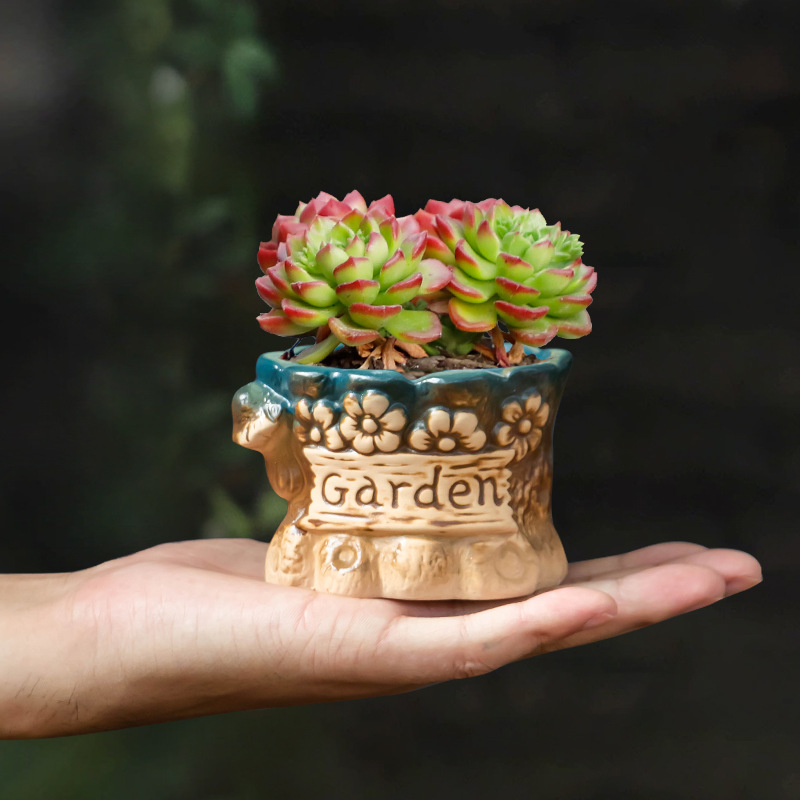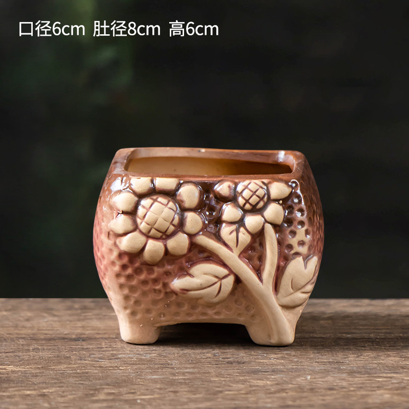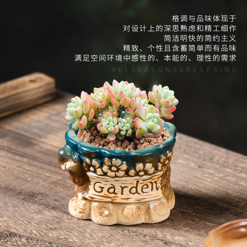 Мясистый цветочный горшок дышащий керамогранит комнатное растение в горшке небольшого размера зеленое растение винтажный рельефный цветочек керамические украшения на столе