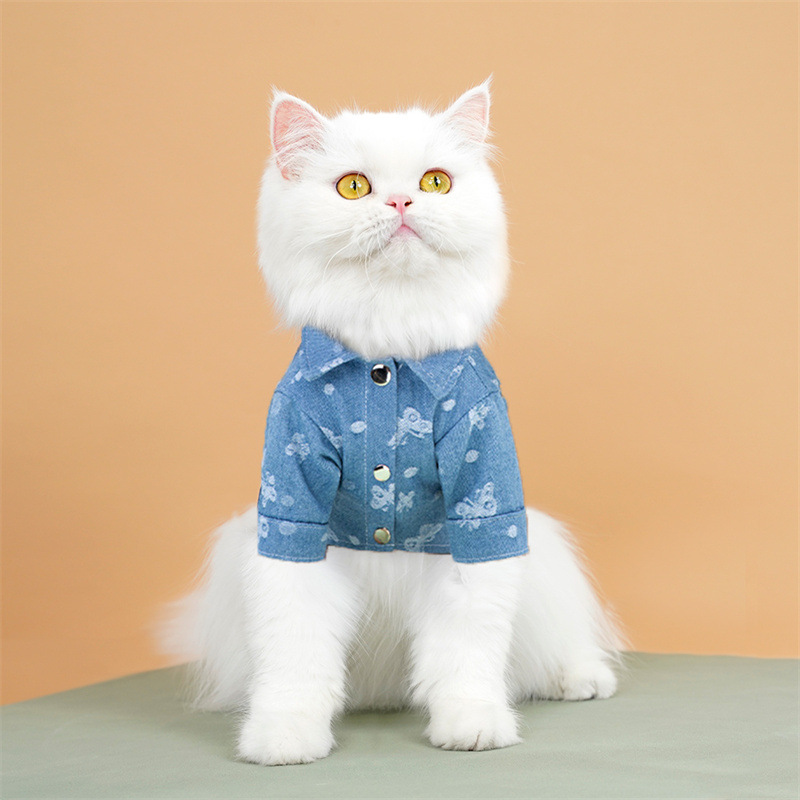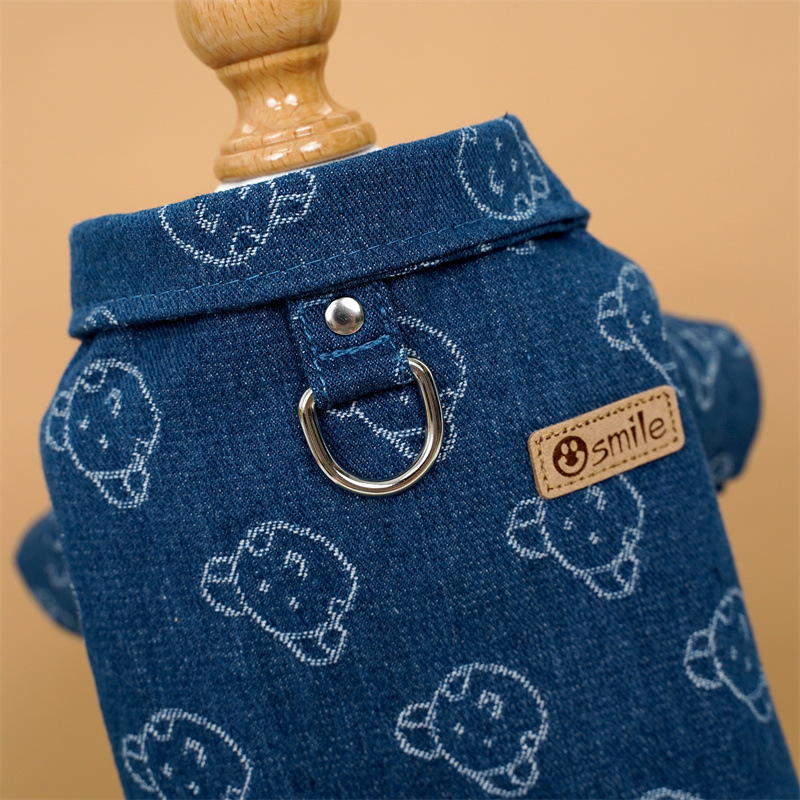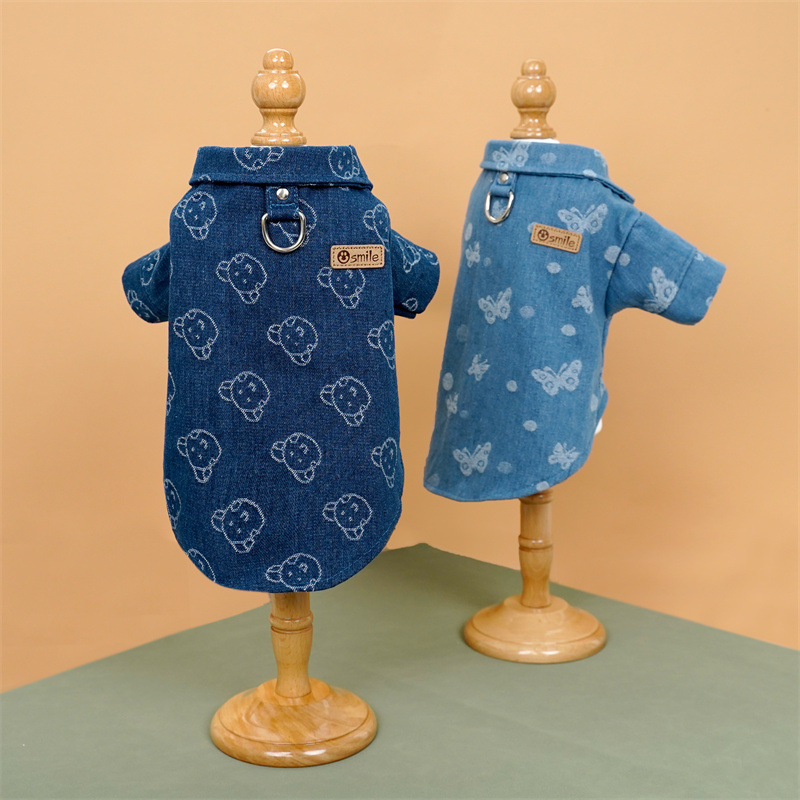 Оптовая продажа, джинсовая рубашка для кошек, тяговая веревка, Тедди, французский бульдог, одежда для собак, кошек, товары для маленьких и средних собак