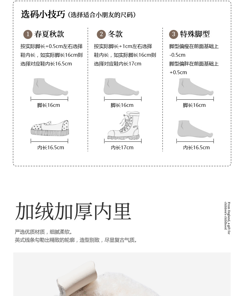 Размер 15, длина стельки 12см.; Размер 16 имеет длину стельки 12,5 см.; Размер 17, длина стельки 13см.; Размер 18 имеет длину стельки 13,5 см.; 19 ярдов в длину 14 см; Размер 22 имеет длину стельки 14 см.; Размер 23 имеет длину стельки 14,5 см.; 24 ярда при длине 15 см; Размер 25 имеет длину стельки 15,5 см.