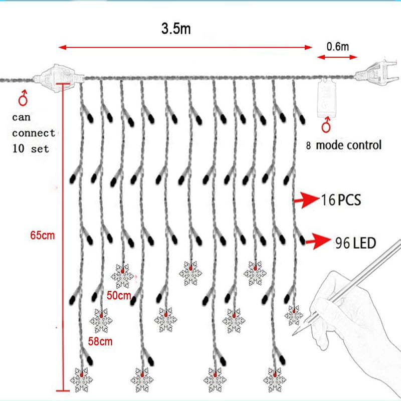 Светодиодная Снежинка занавес свет ледяная полоса света Рождественский декоративный световой Фестиваль Декоративная Снежинка Цветной свет фестиваль Цветной световой струны