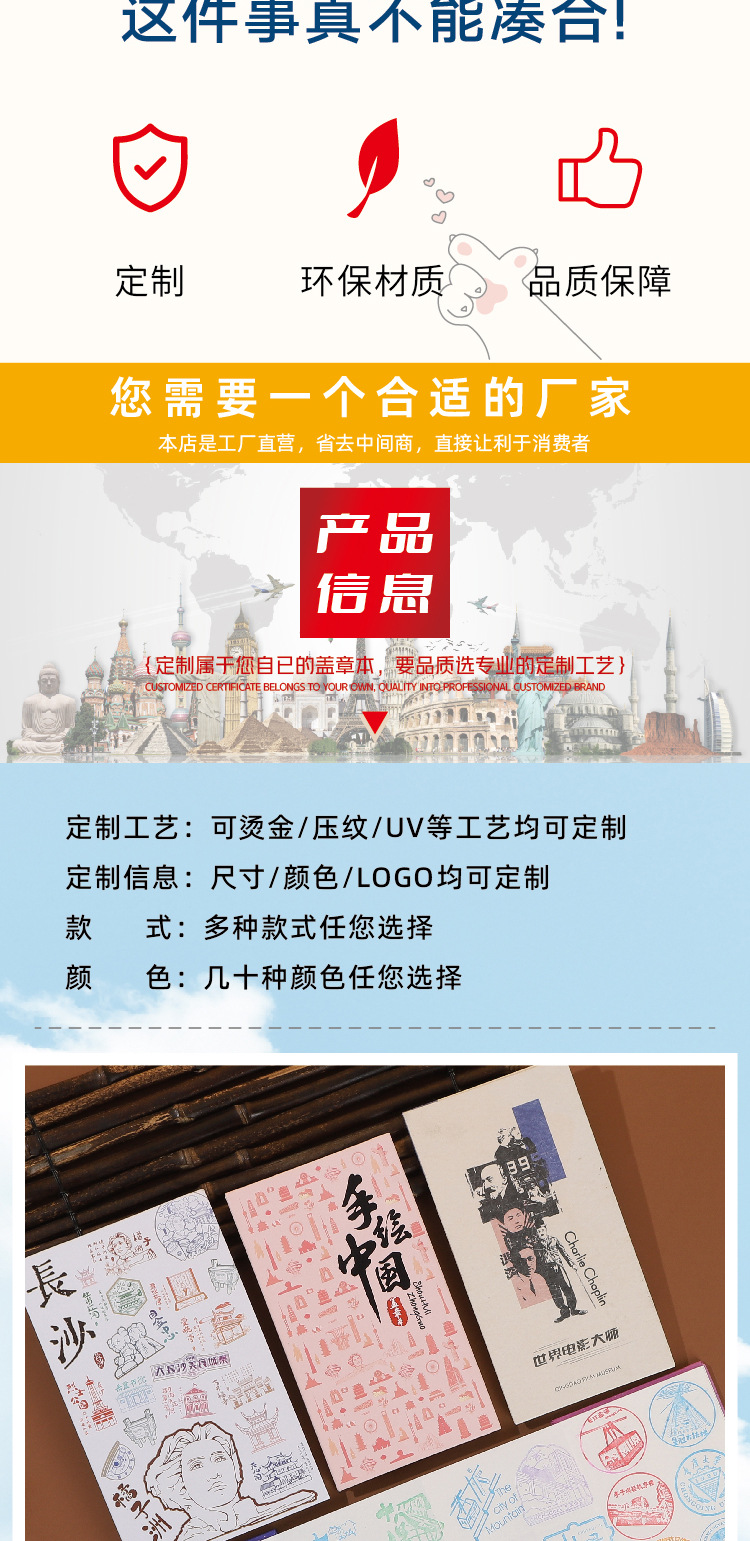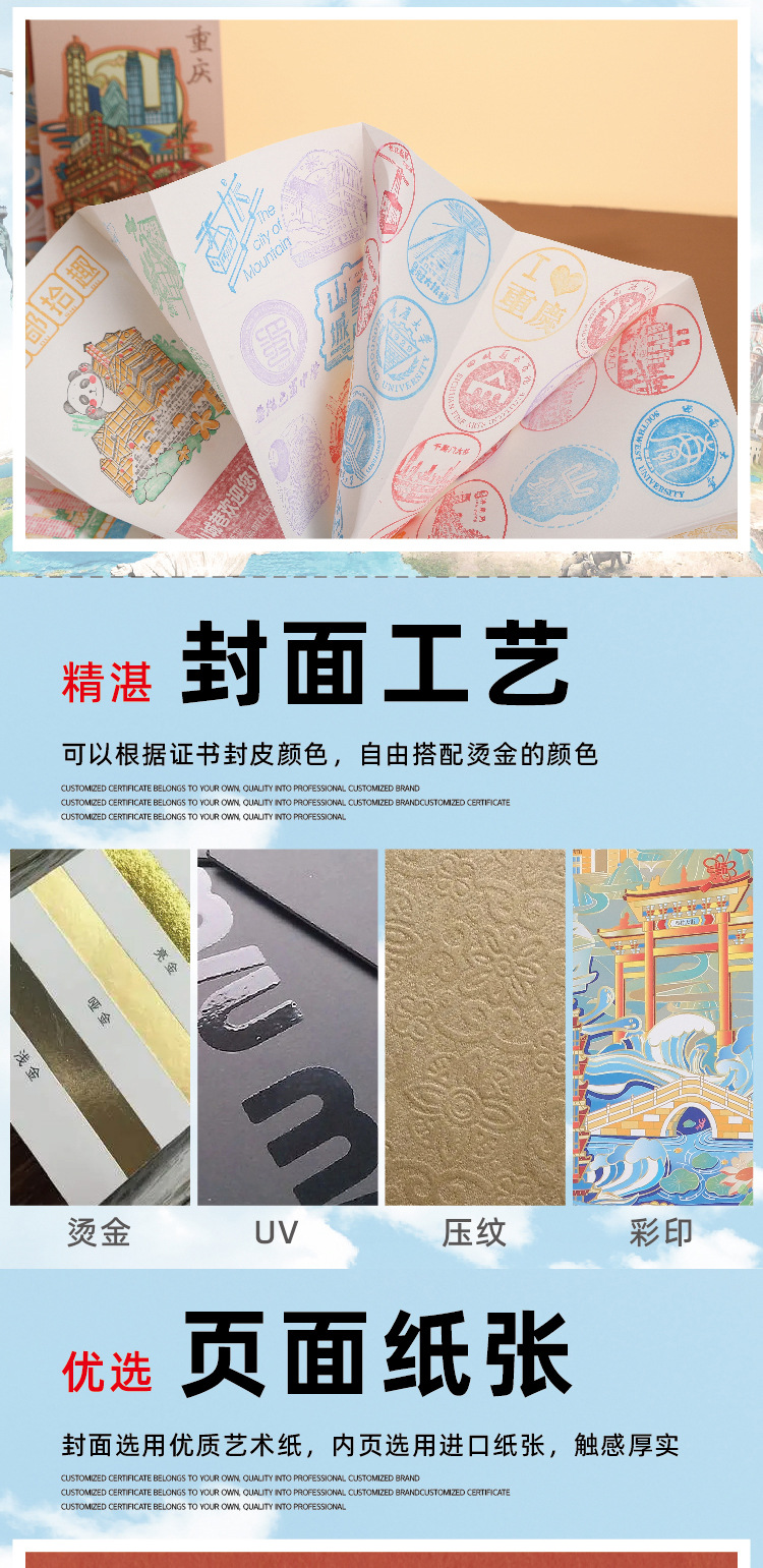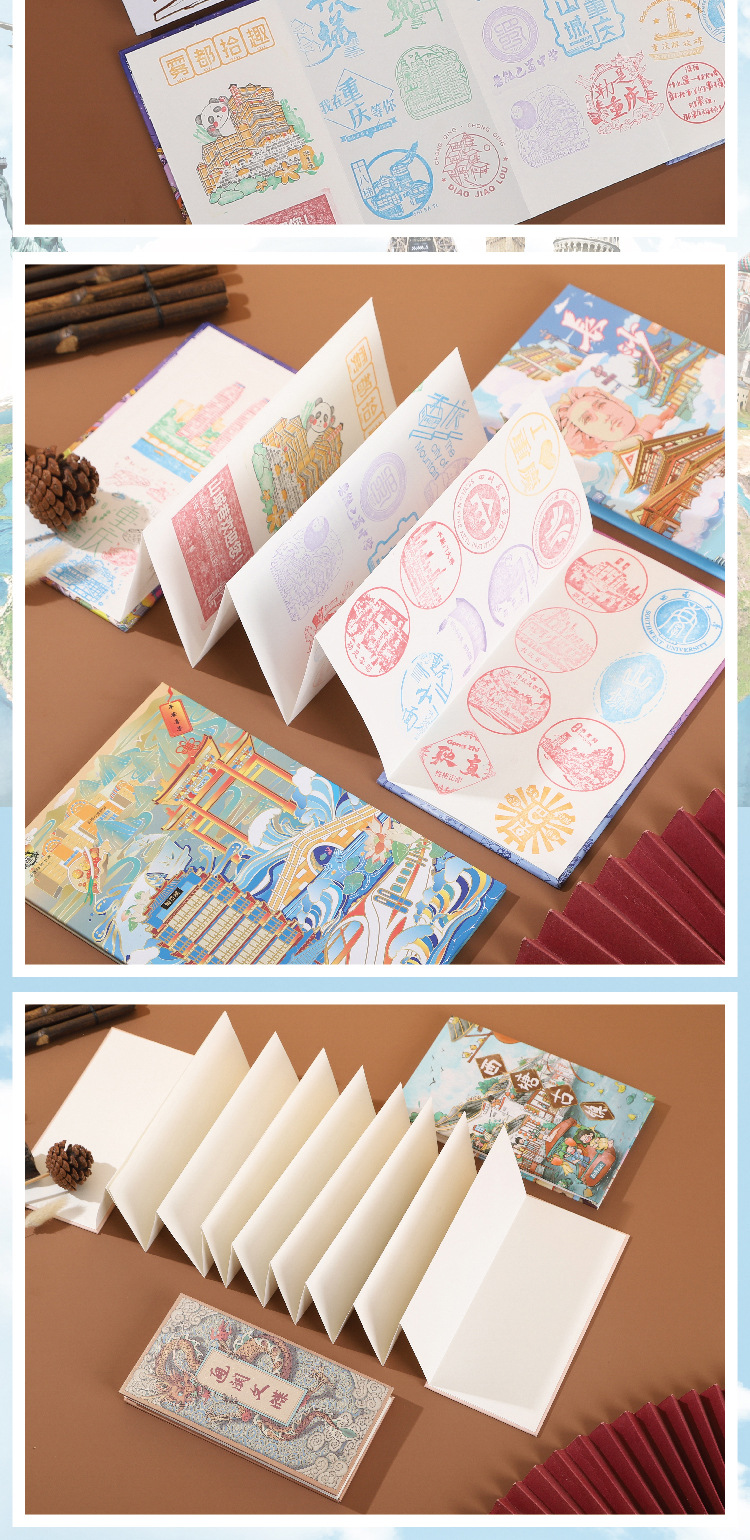 Персонализированный альбом для марок с золотым тиснением, маленький буклет с тиснением в стиле официальных документов, страницы в стиле аккордеона, марка для записи, культурные и креативные марки.