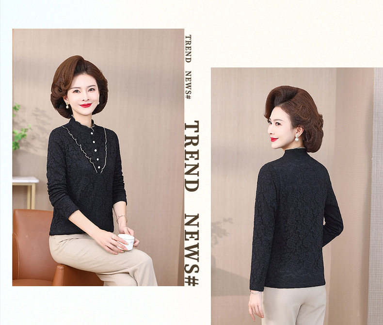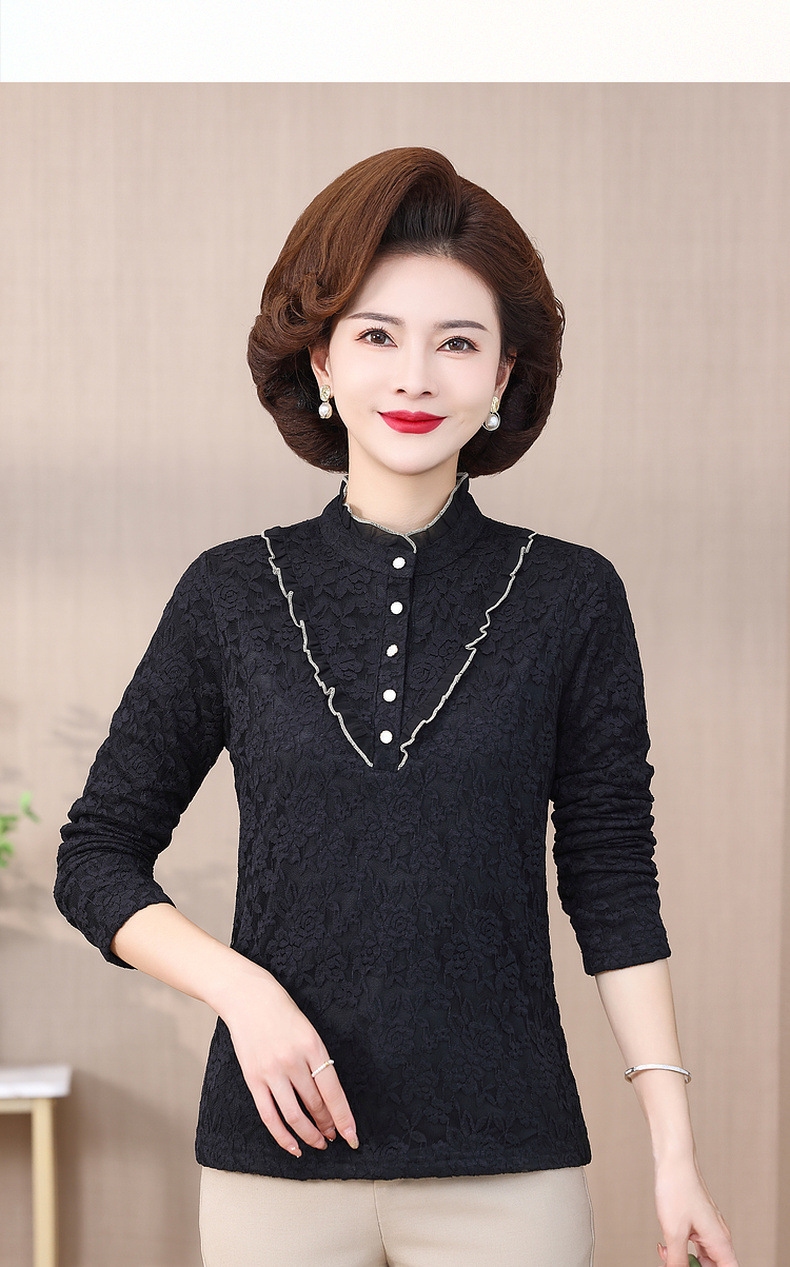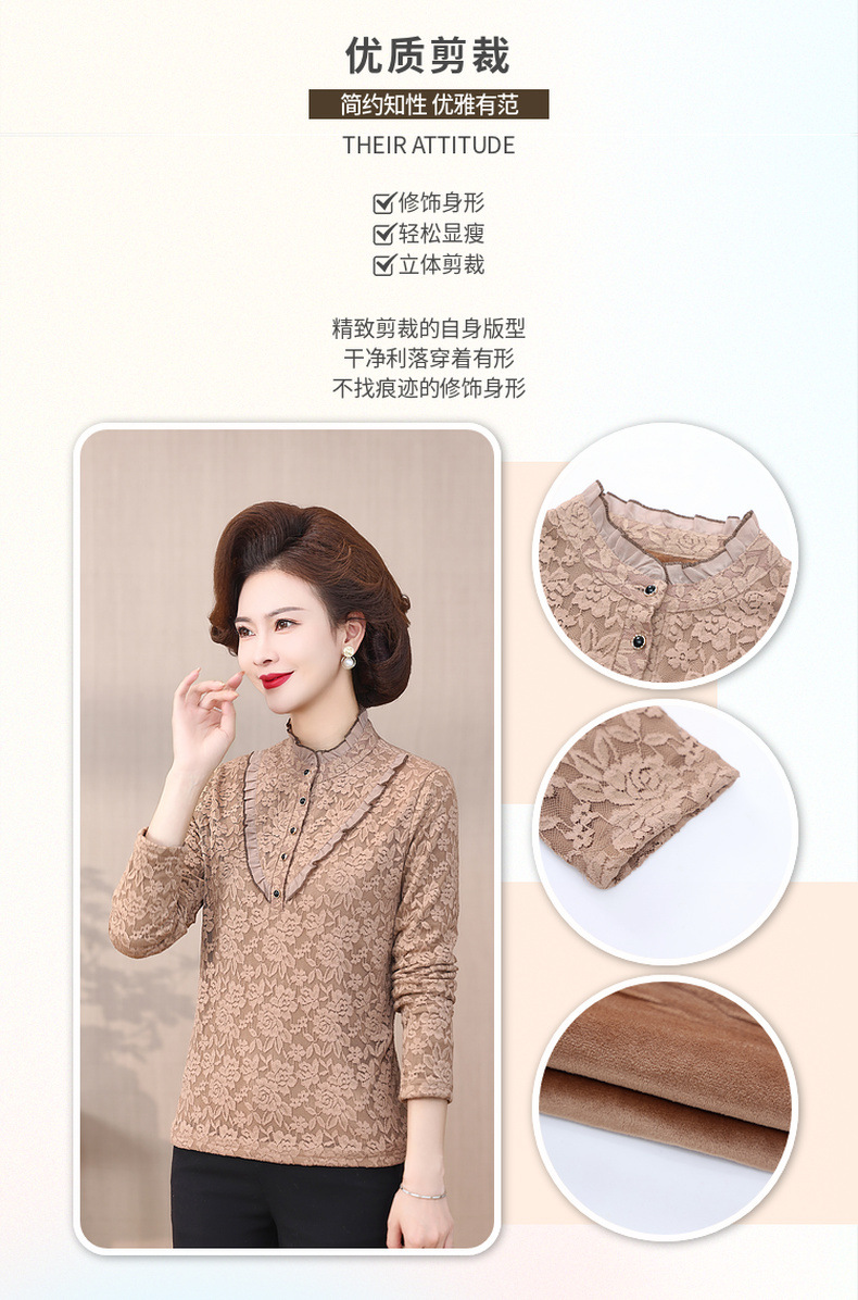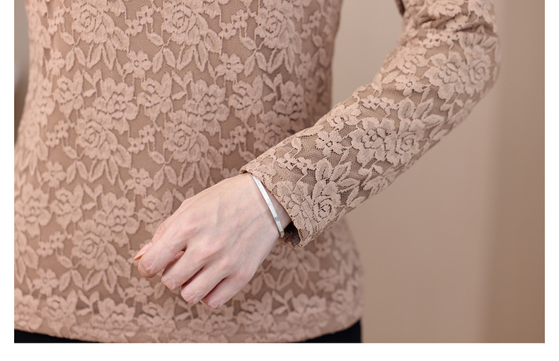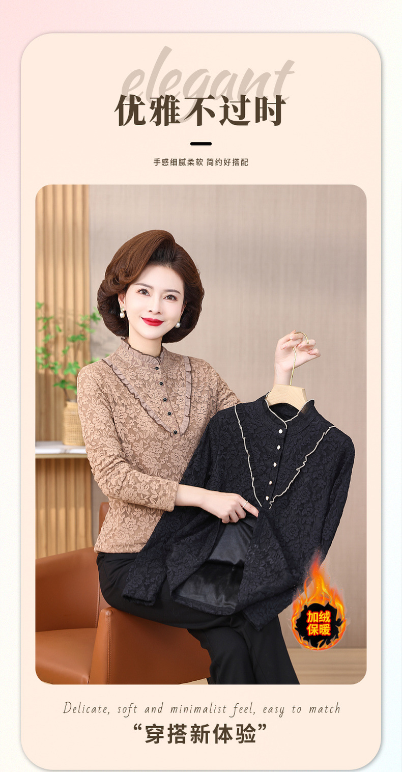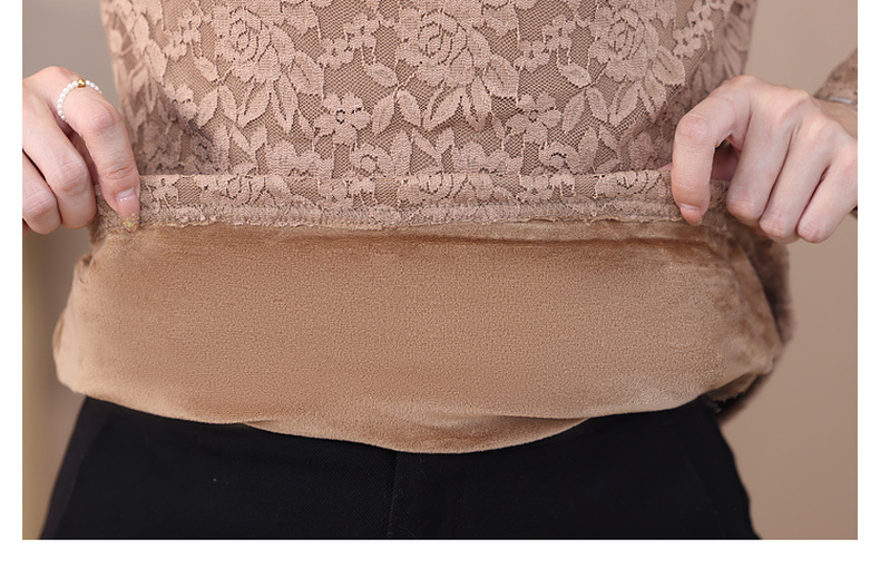 Зимние женские трикотажные майки с полувысоким воротником на флисовой подкладке, одежда для мам, модная футболка с длинным рукавом из иностранного кружева