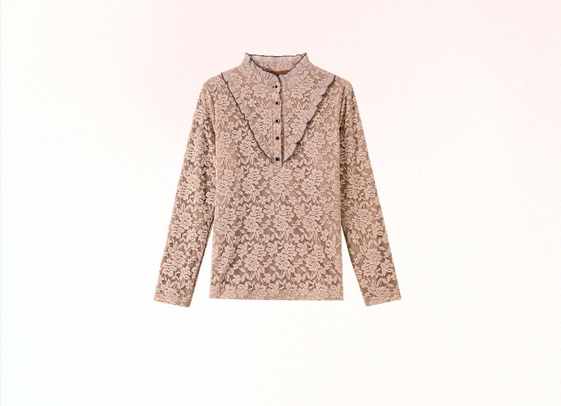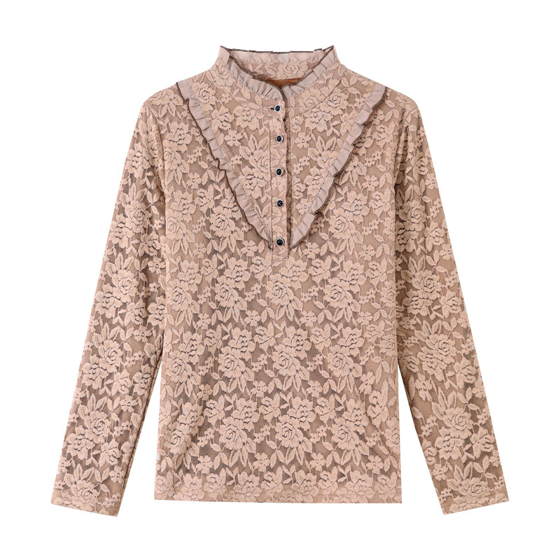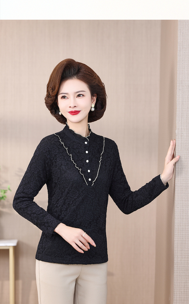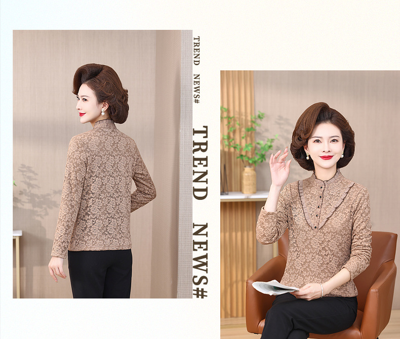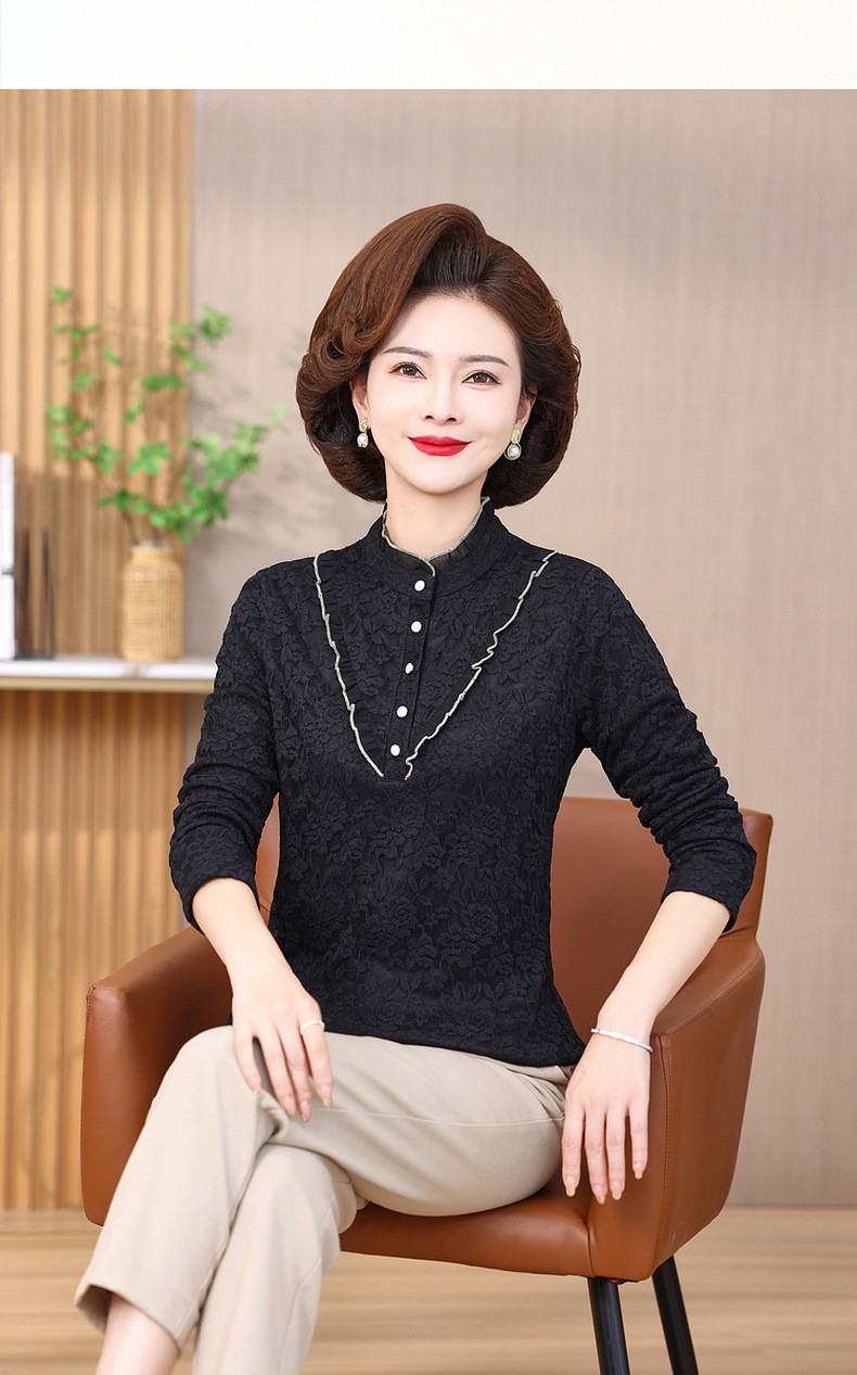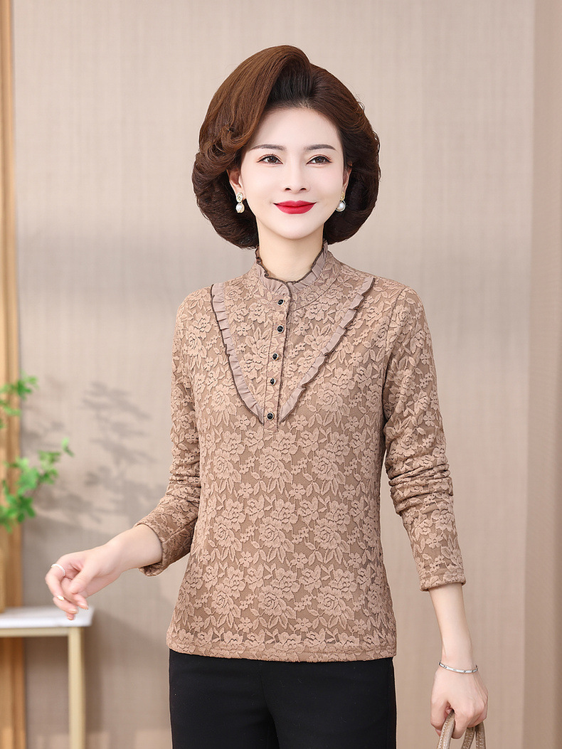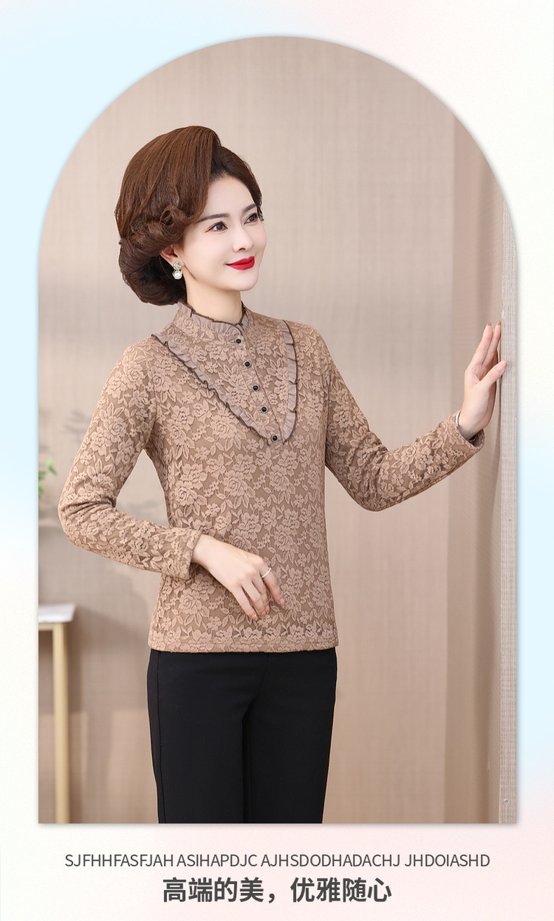 Зимние женские трикотажные майки с полувысоким воротником на флисовой подкладке, одежда для мам, модная футболка с длинным рукавом из иностранного кружева
