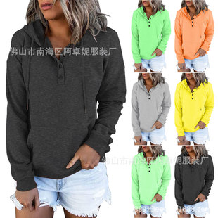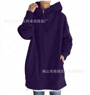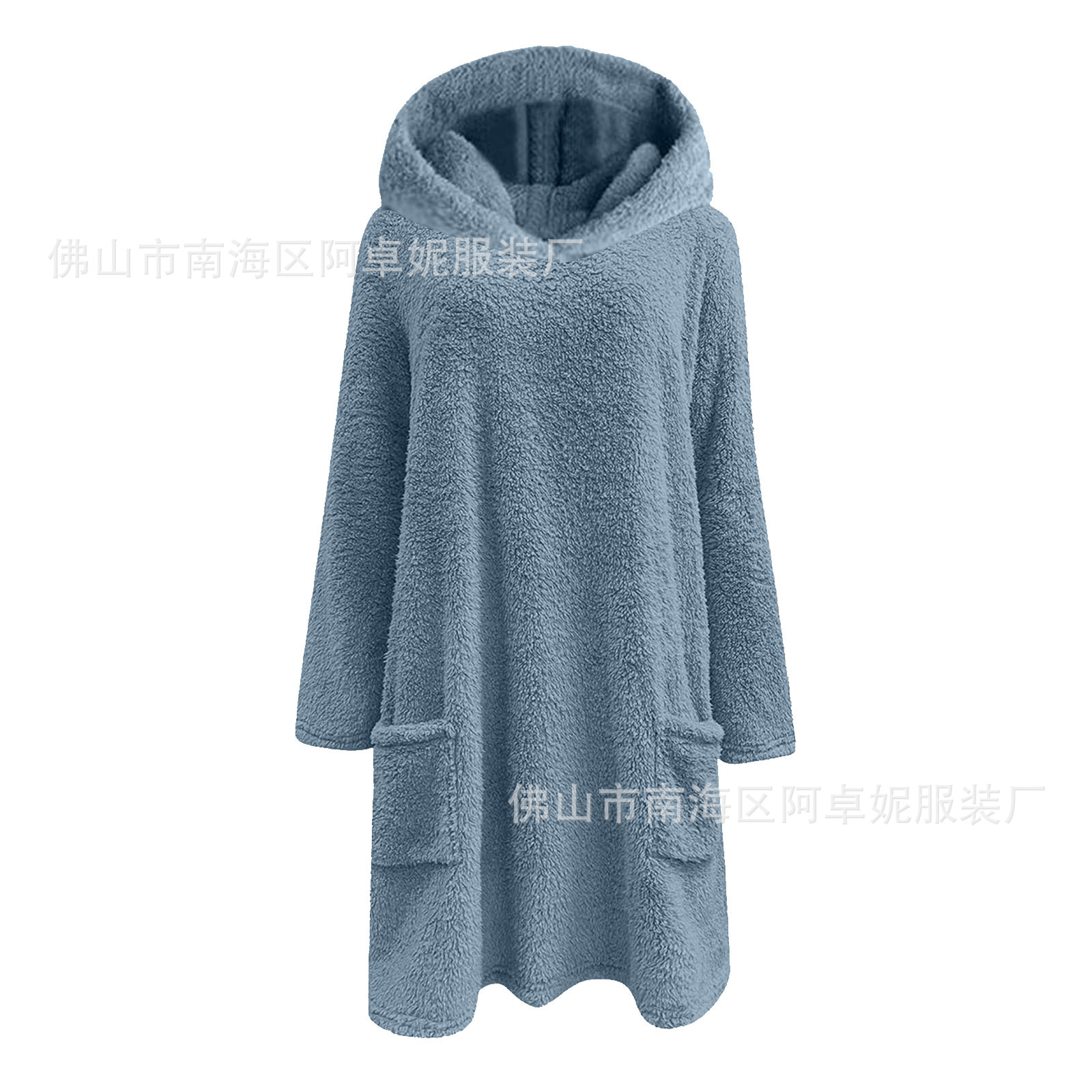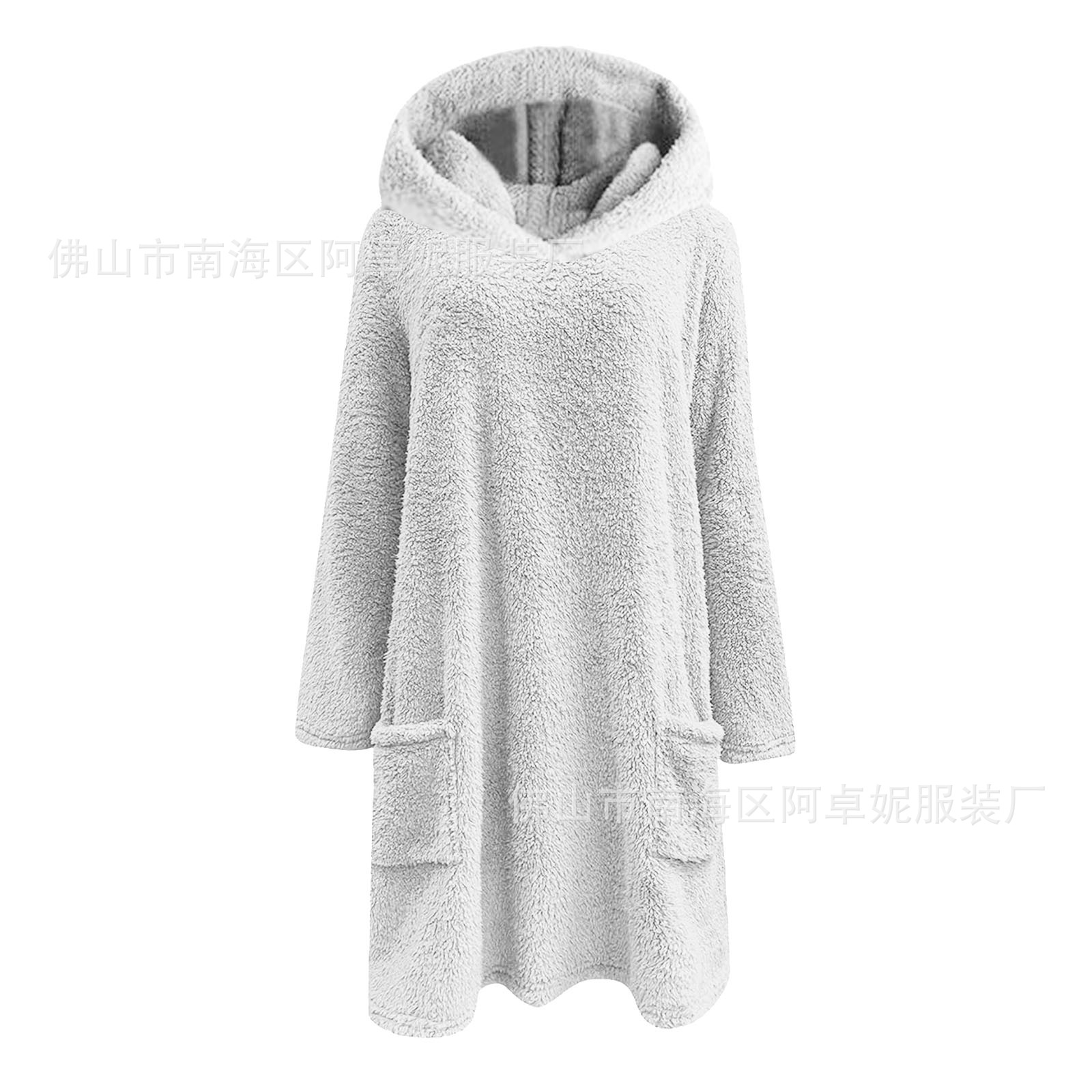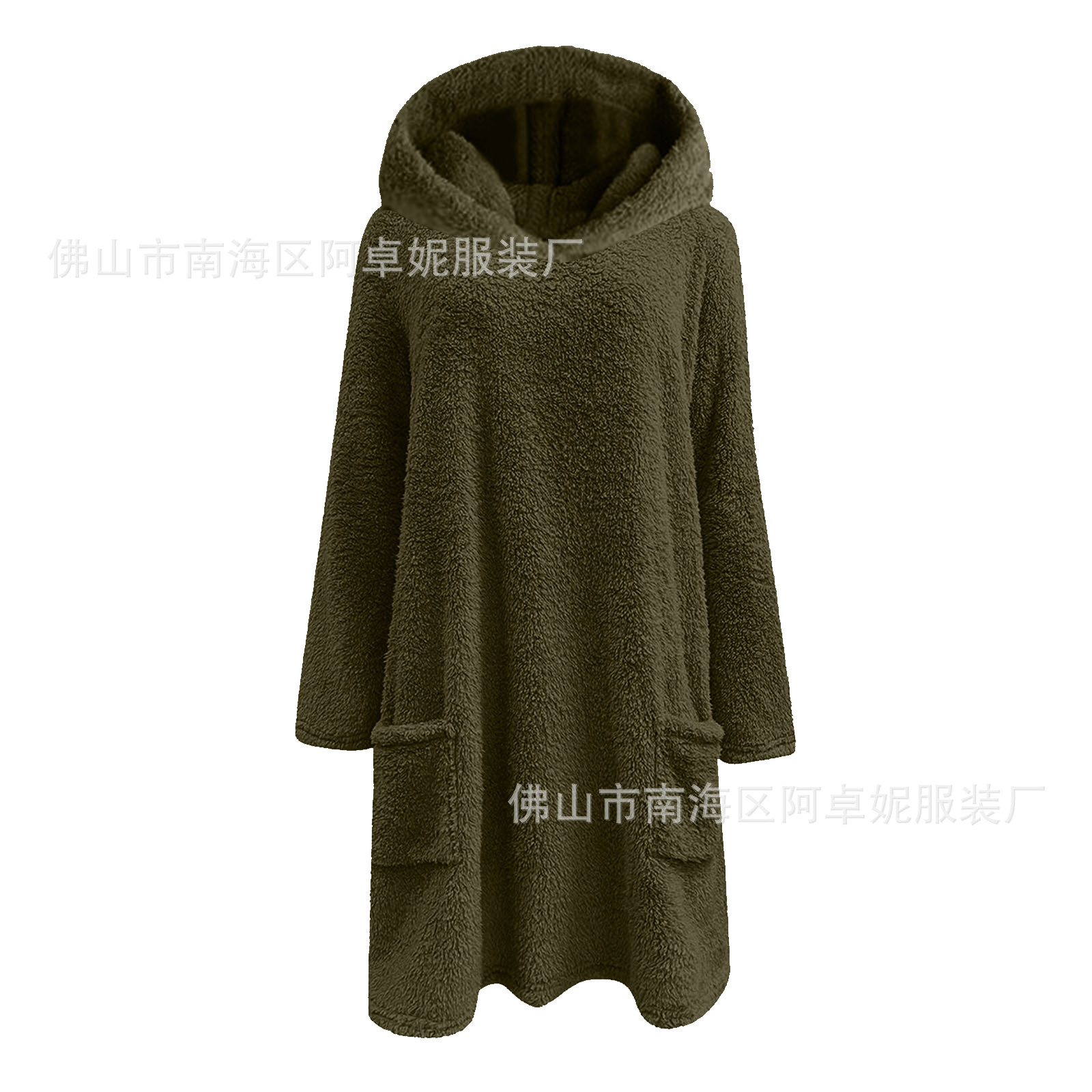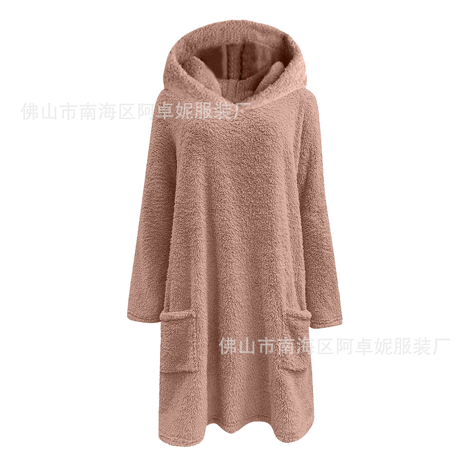 2023 Осень-зима трансграничная женская новая свободная двухсторонняя бархатная толстовка с капюшоном с длинными рукавами и карманами на Amazon