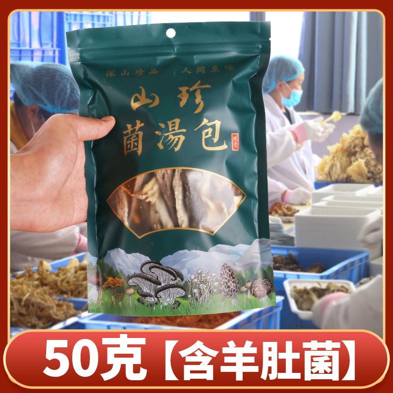 Суп из семицветных грибов из Юньнани, ингредиенты для грибного супа, сухие продукты для приготовления супа, грибные пакетики для тушения супа, приправа для лапши быстрого приготовления