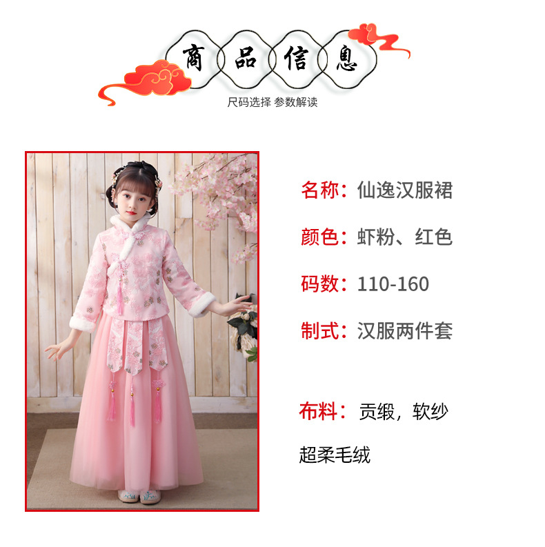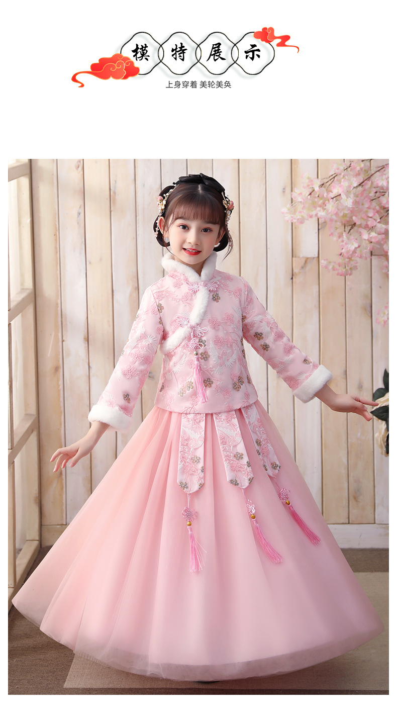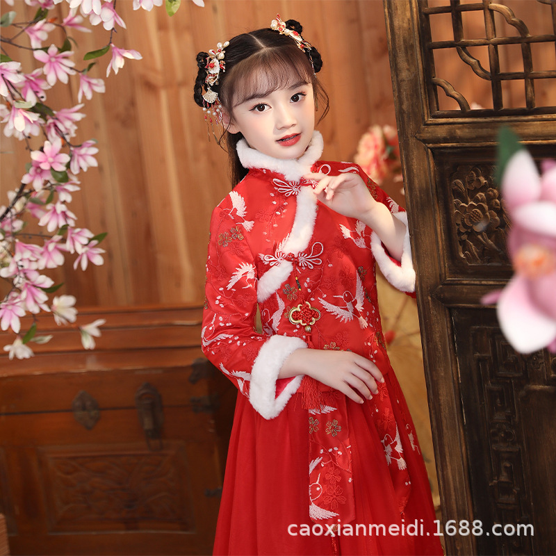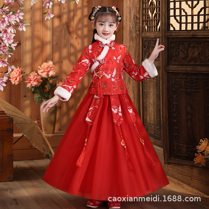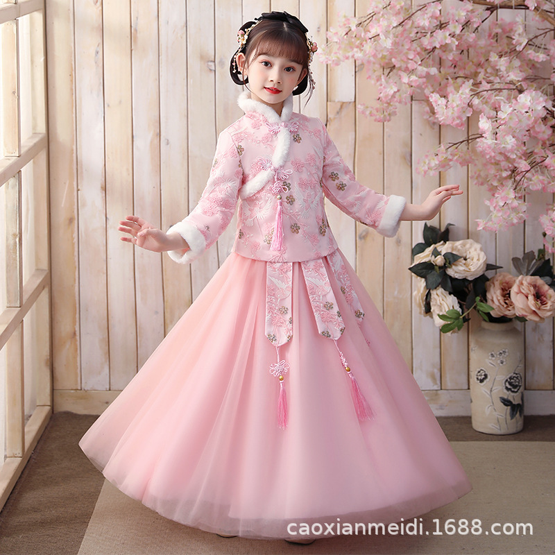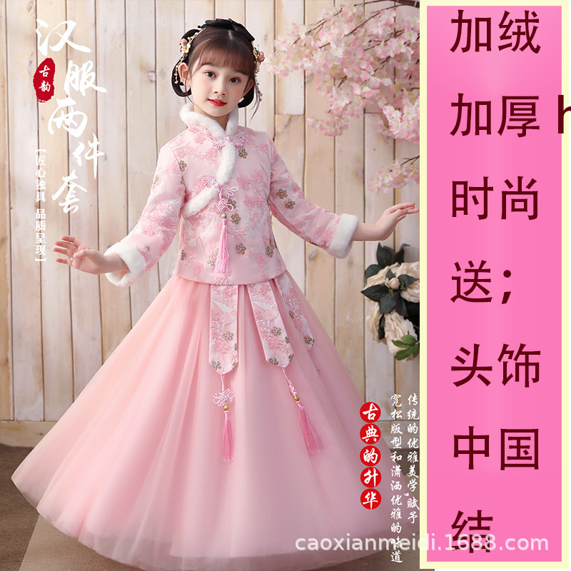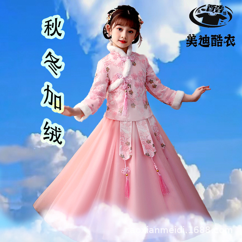 Детский новогодний костюм ханьфу на флисовой подкладке для девочек, старинный костюм, античный костюм Тан, осенне-зимнее Новое Старинное платье суперфеи для маленьких девочек