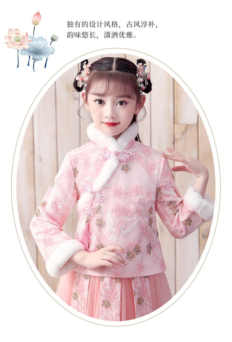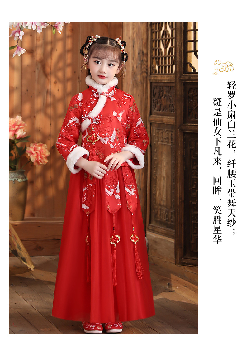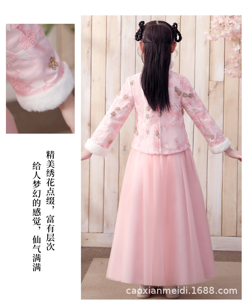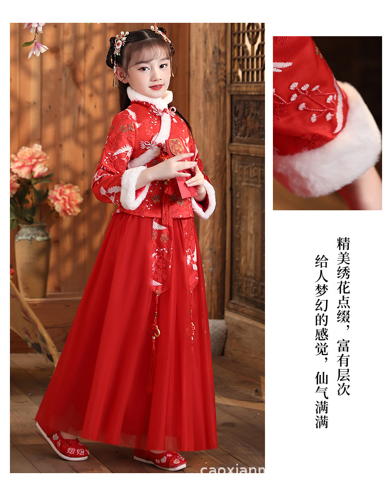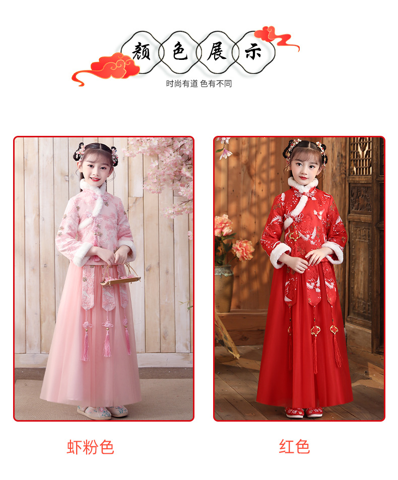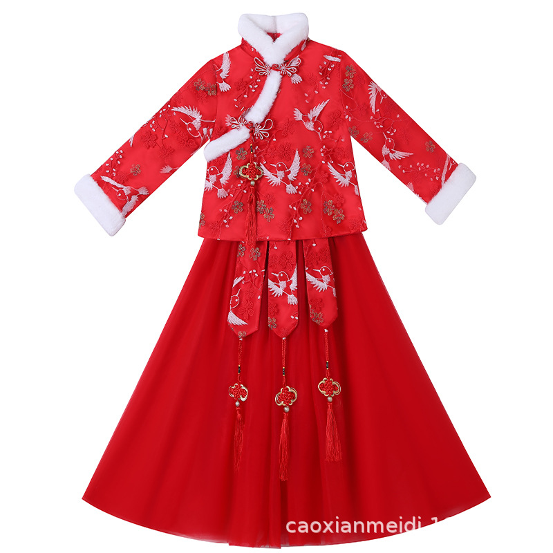 Детский новогодний костюм ханьфу на флисовой подкладке для девочек, старинный костюм, античный костюм Тан, осенне-зимнее Новое Старинное платье суперфеи для маленьких девочек