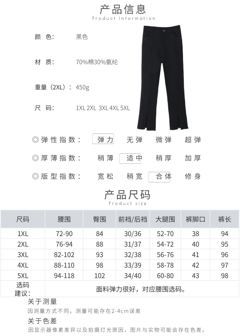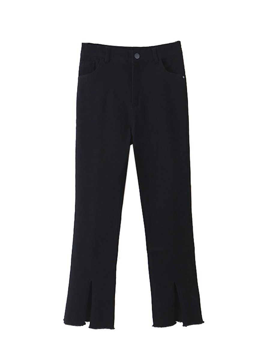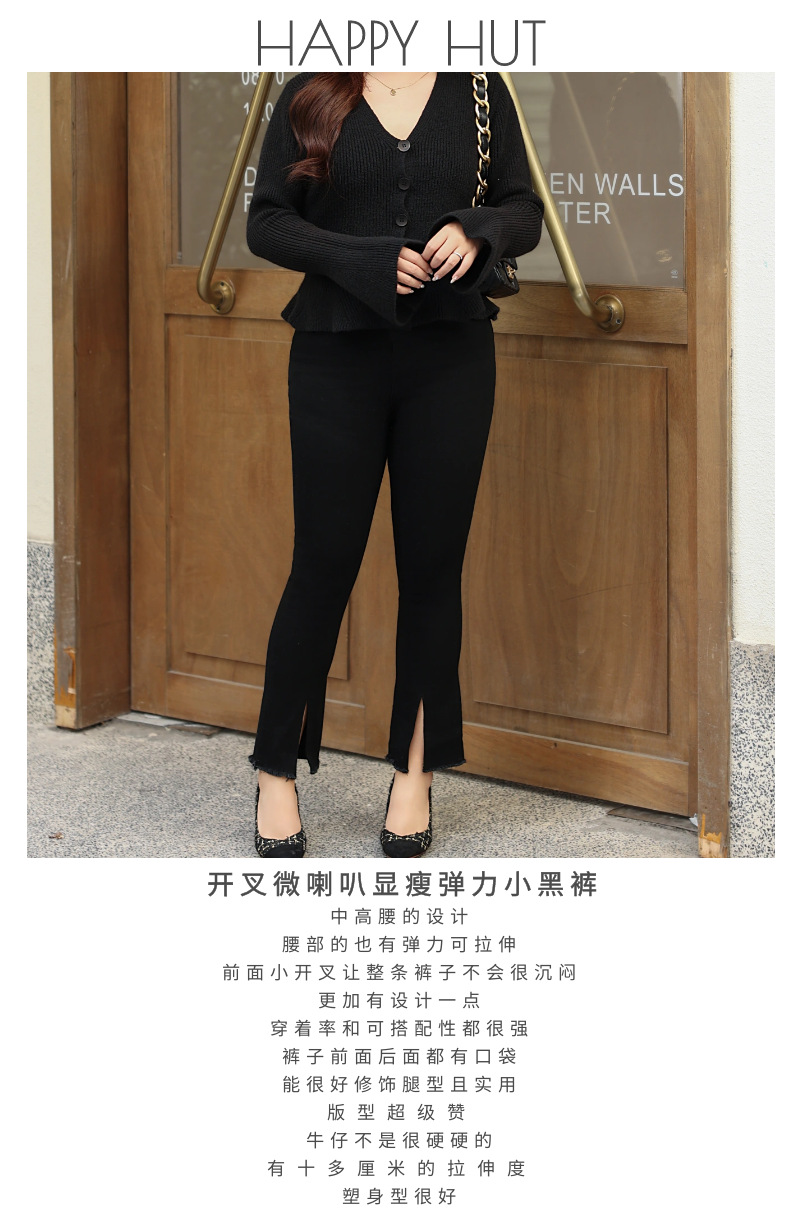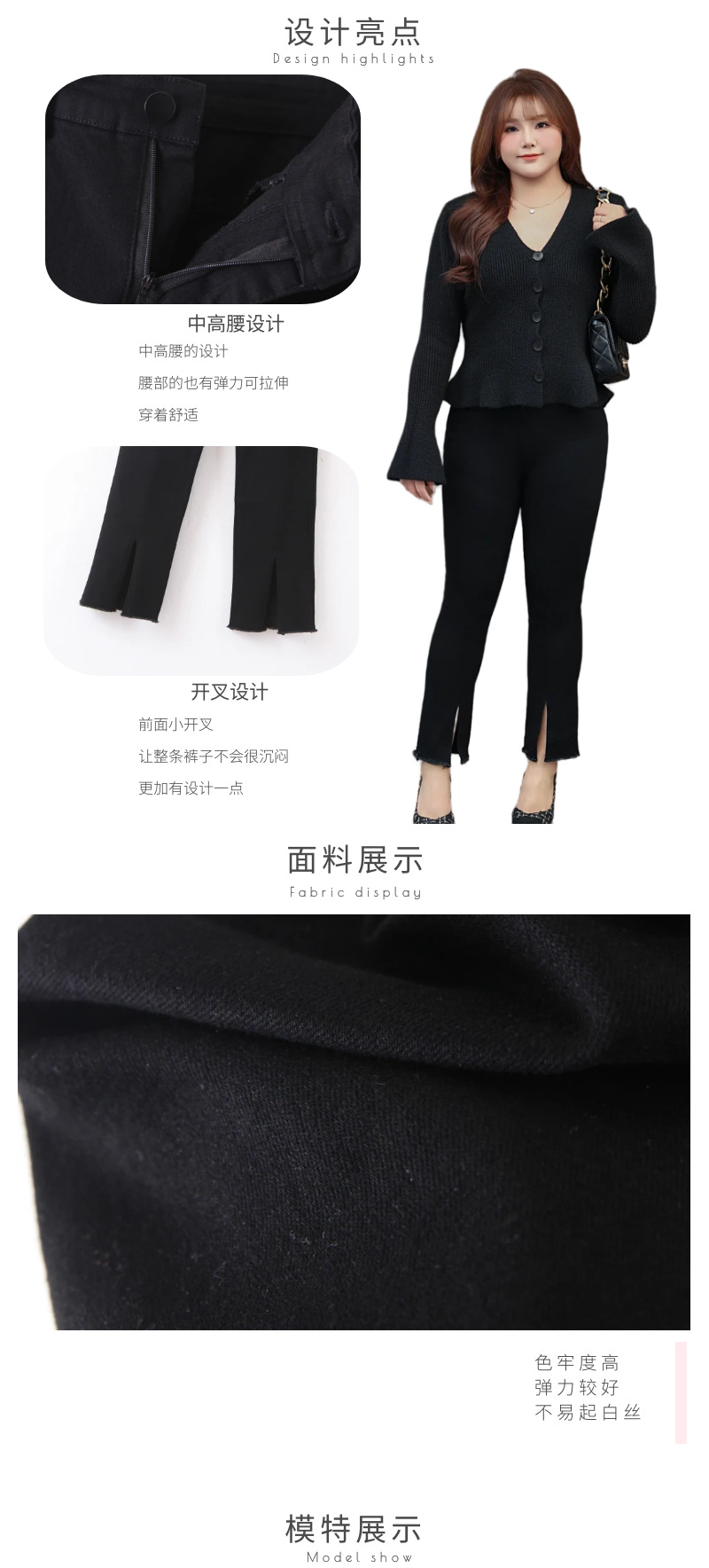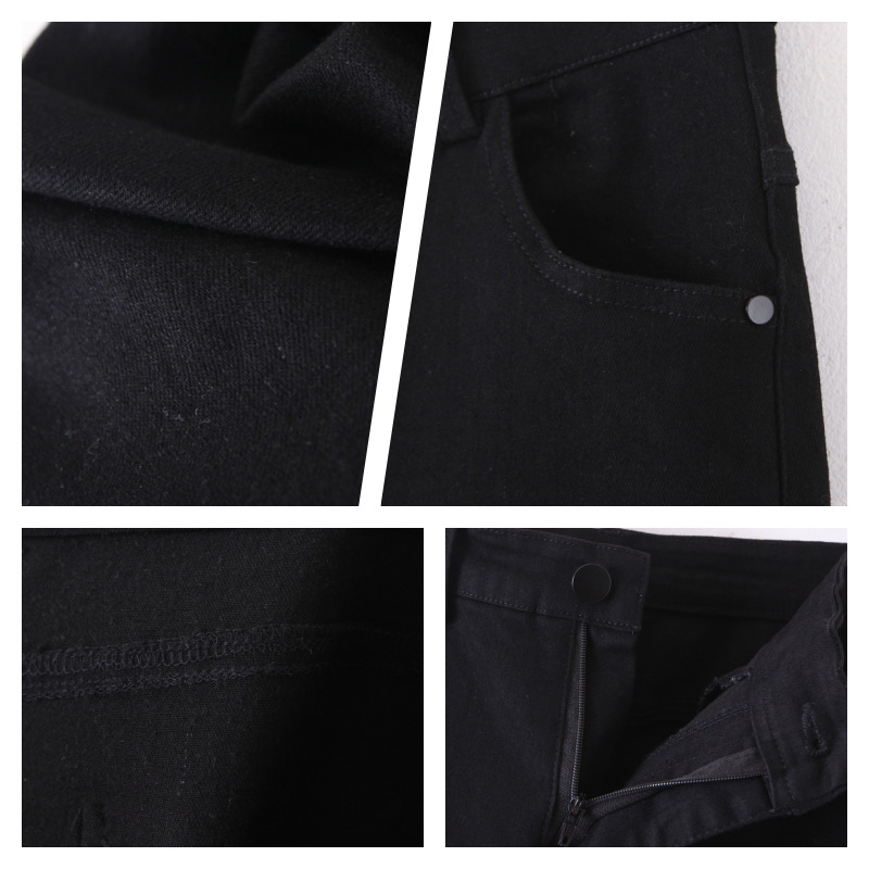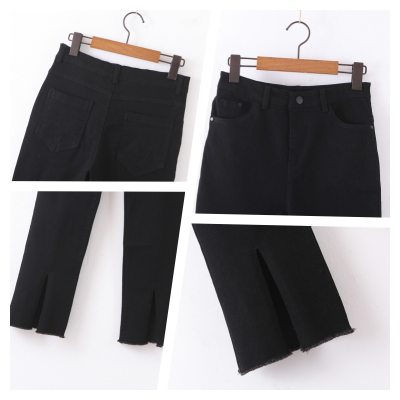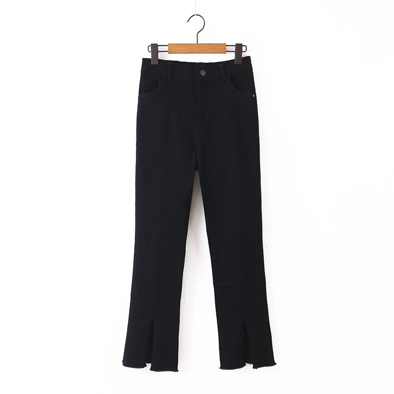 Тонкие эластичные маленькие черные брюки с разрезом, увлажняющие брюки N7502 больших размеров, приталенные микро-джинсы с разрезом