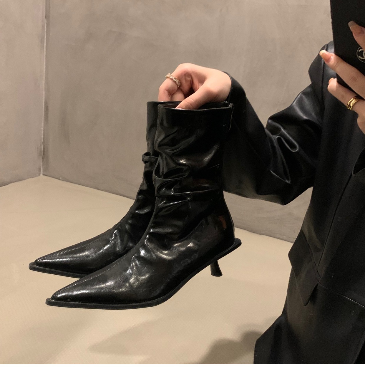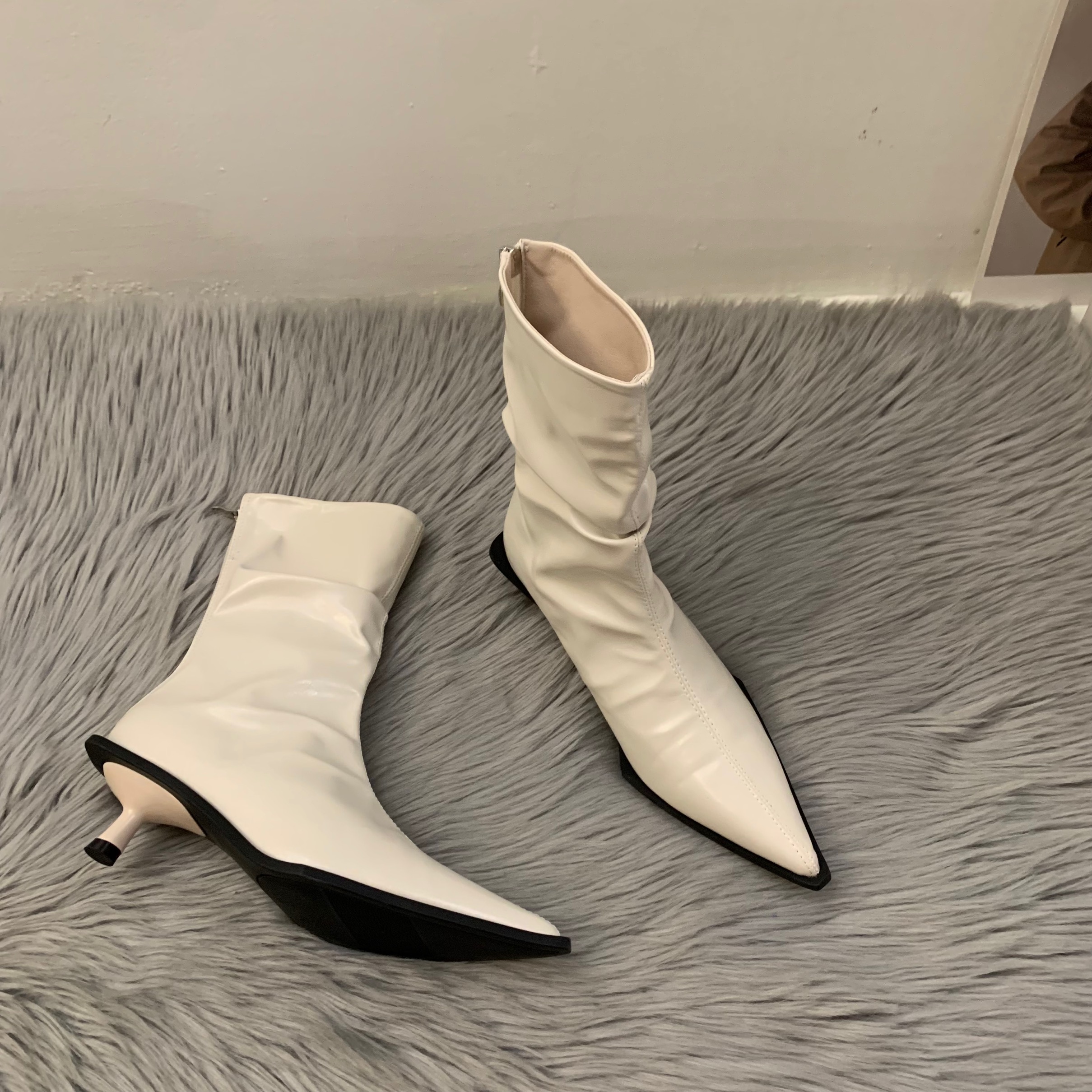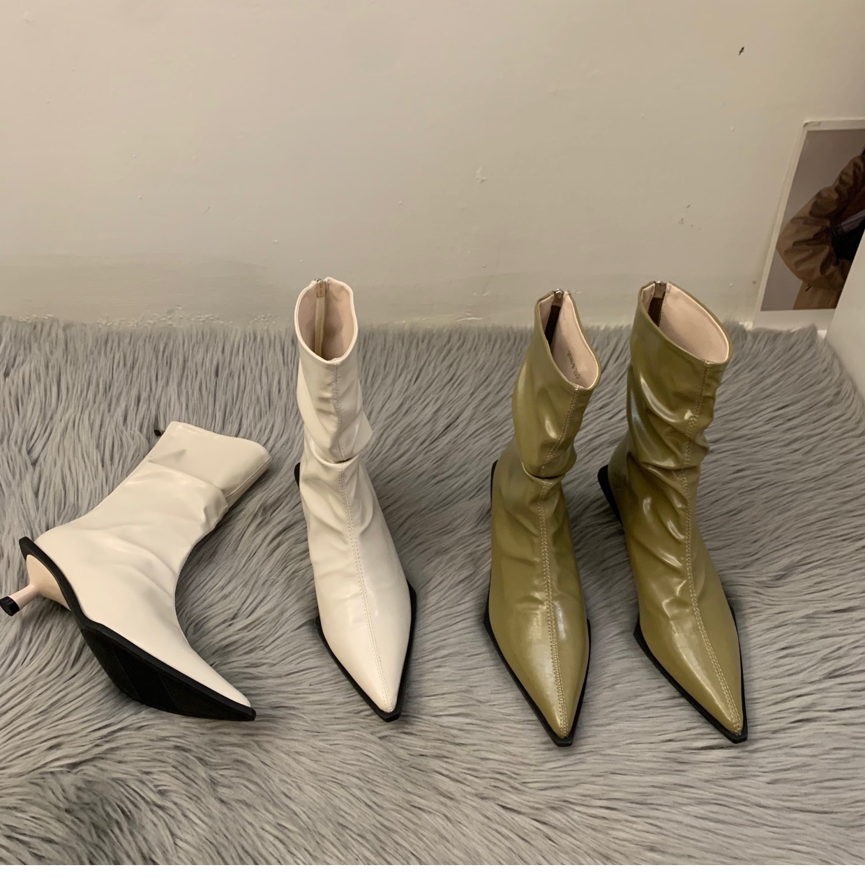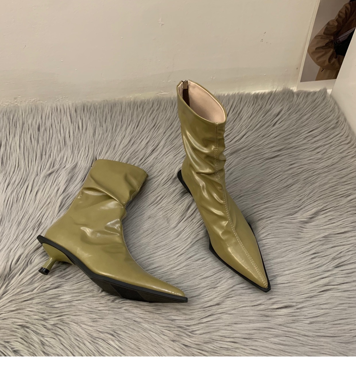 Элегантные женские ботильоны во французском стиле на высоком каблуке, новинка 2025 года, коричневые осенне-зимние ботинки с флисовой подкладкой, заостренный носок, укороченные.