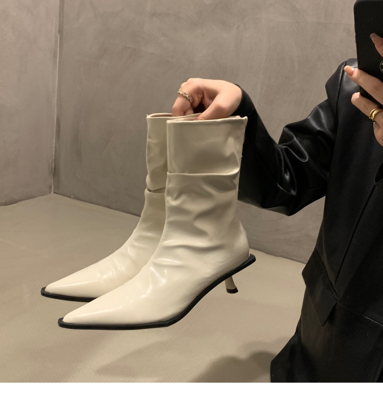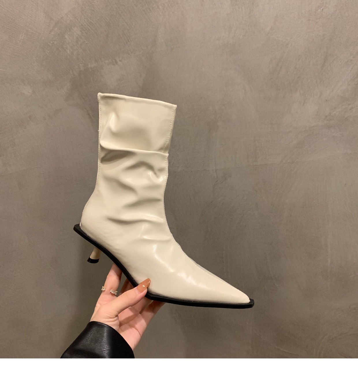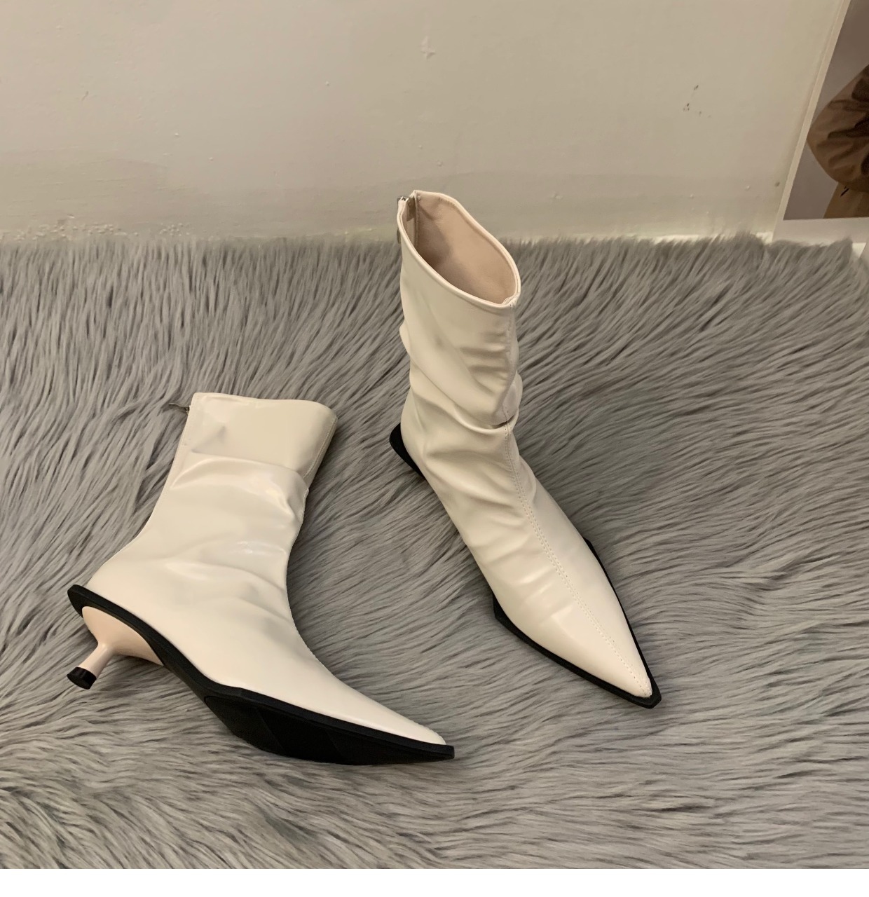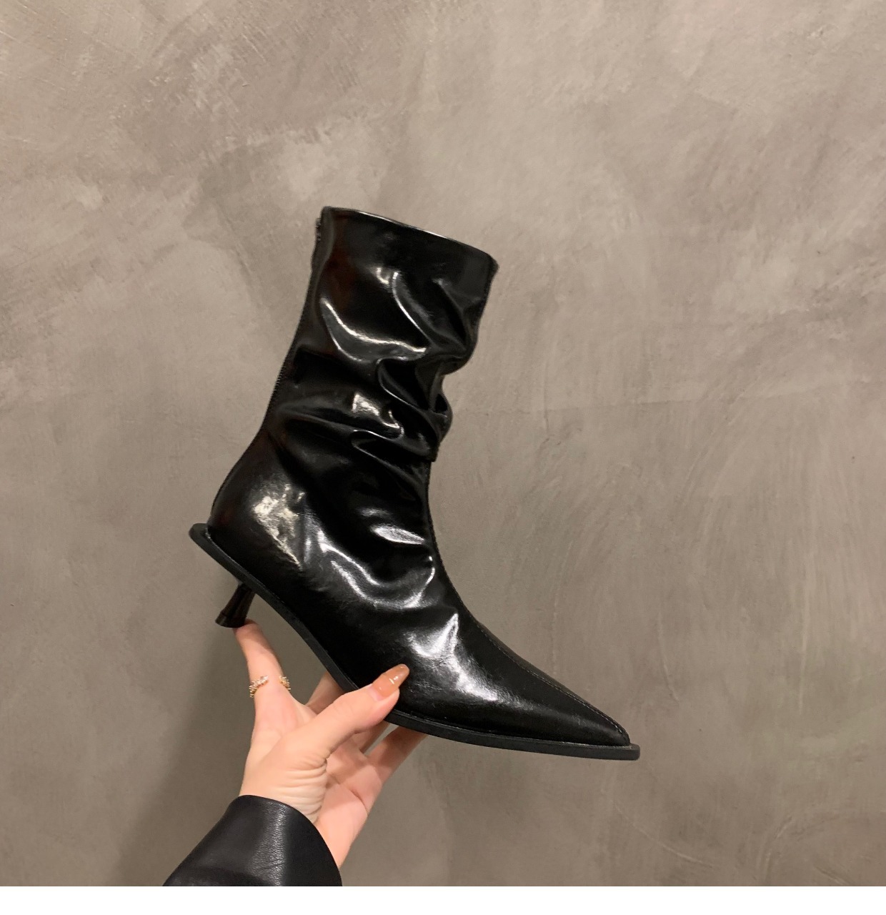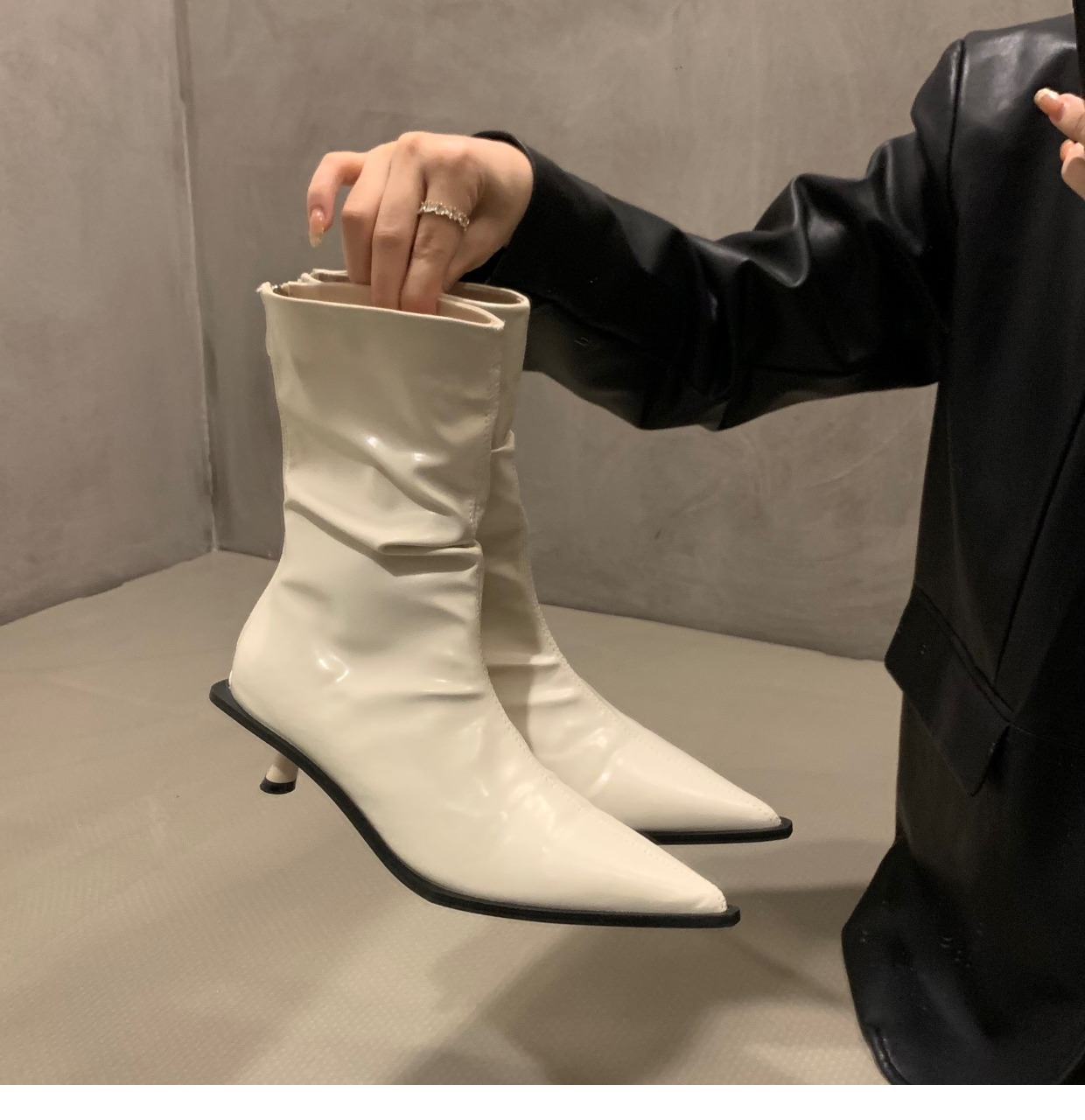 Элегантные женские ботильоны во французском стиле на высоком каблуке, новинка 2025 года, коричневые осенне-зимние ботинки с флисовой подкладкой, заостренный носок, укороченные.