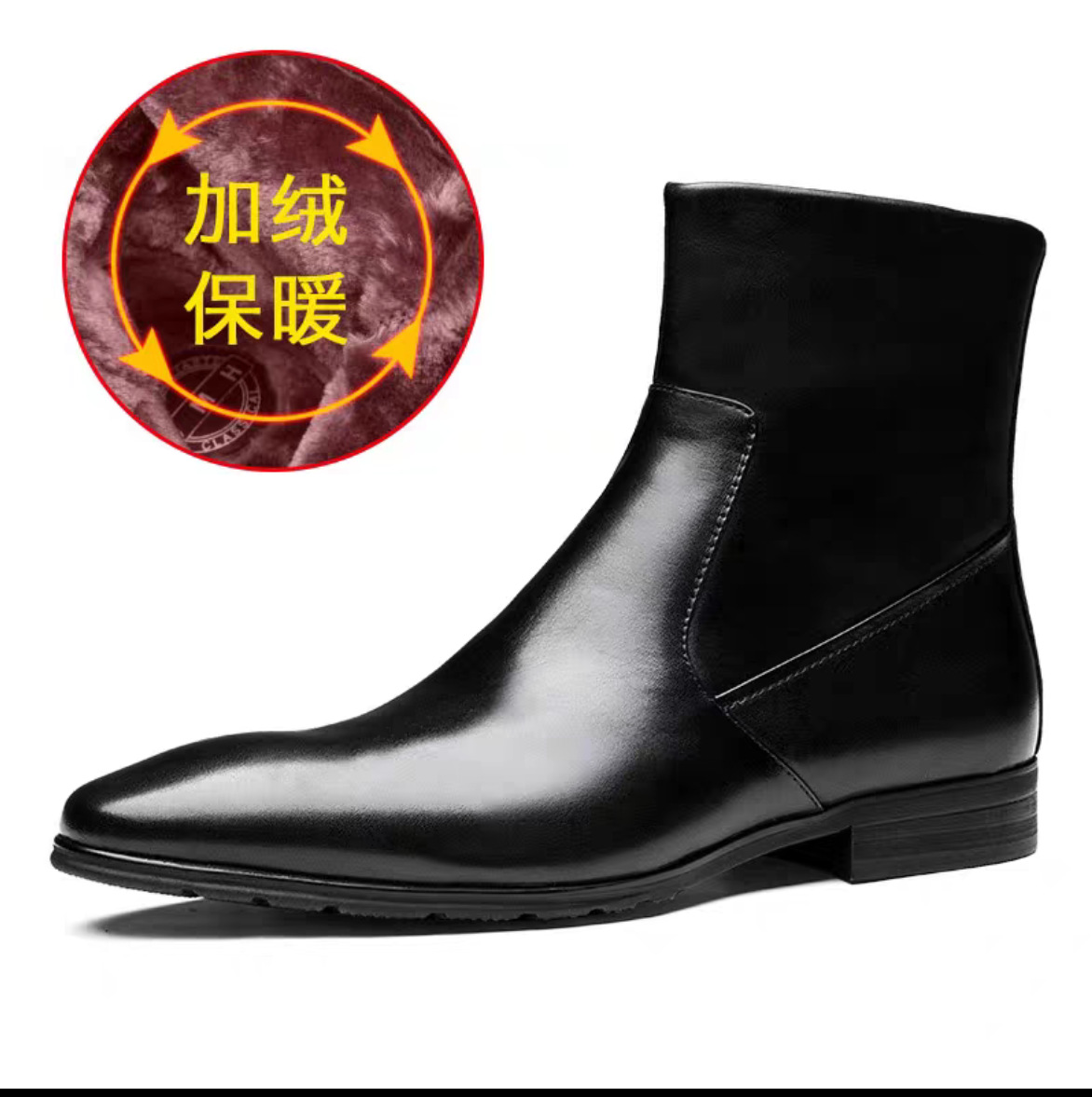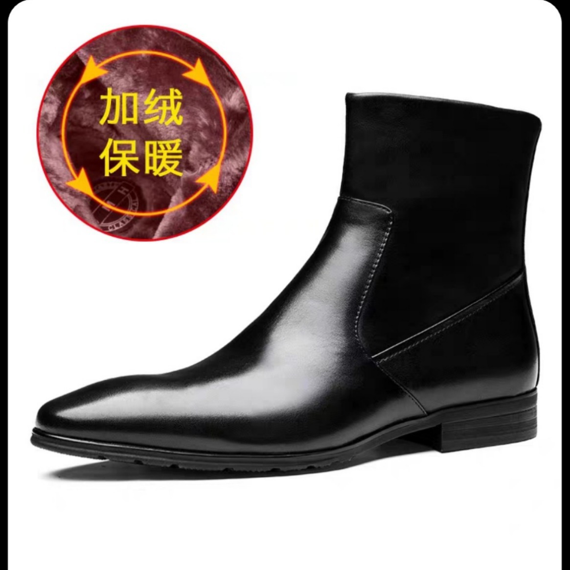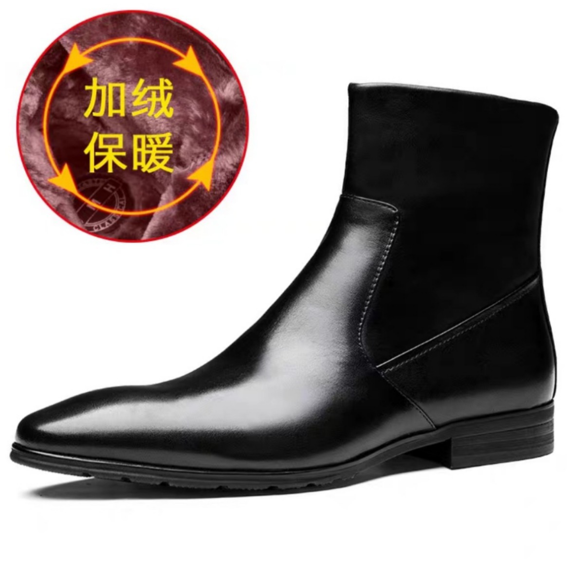 Ботинки Челси, мужские зимние ботинки со средним верхом на флисовой подкладке, мужские ботильоны с острым носком, кожаные ботинки на молнии, мягкая кожа