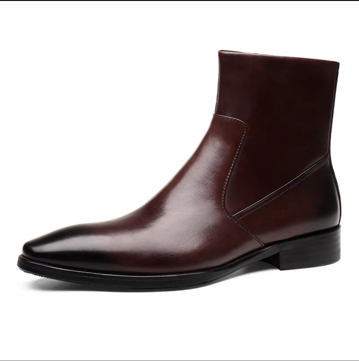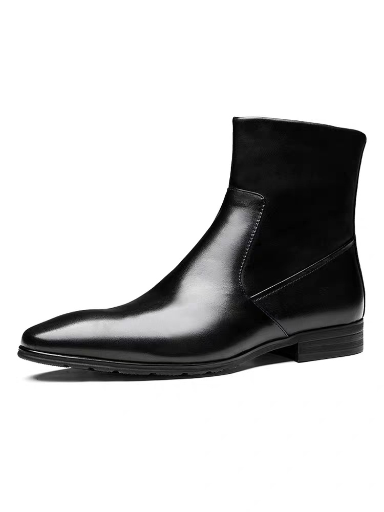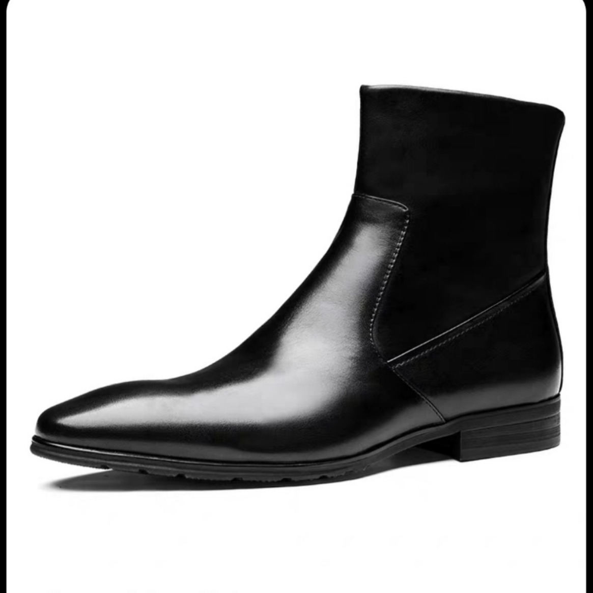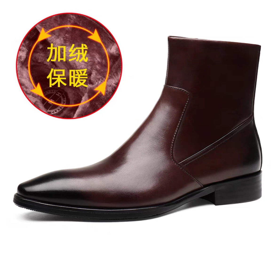Ботинки Челси, мужские зимние ботинки со средним верхом на флисовой подкладке, мужские ботильоны с острым носком, кожаные ботинки на молнии, мягкая кожа