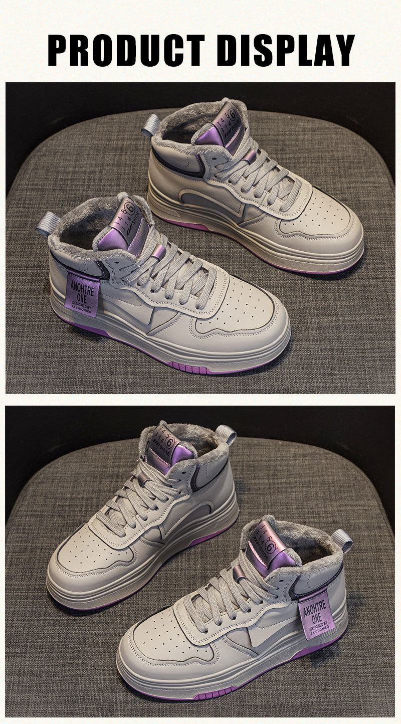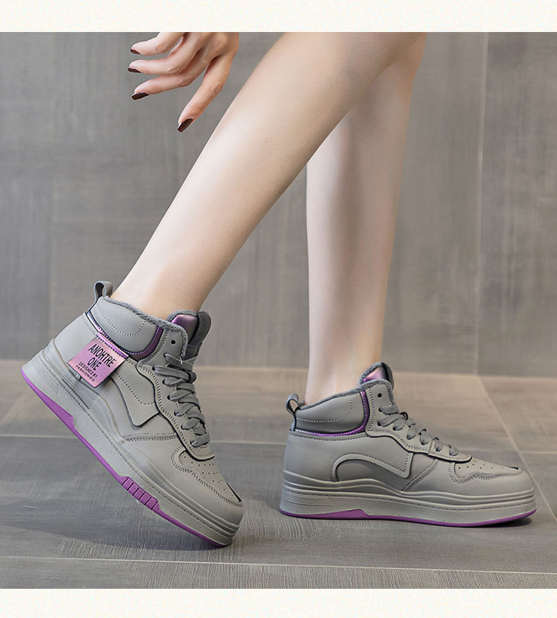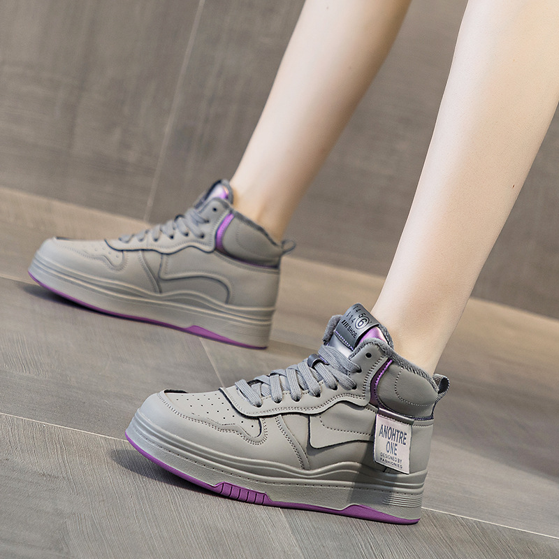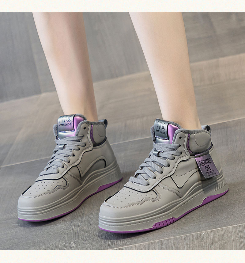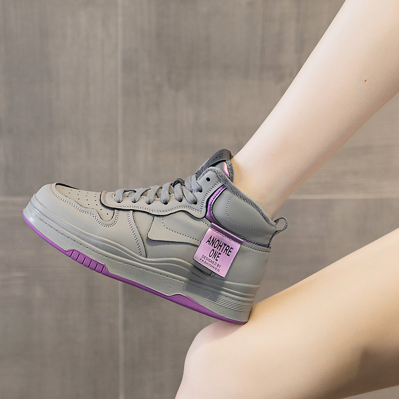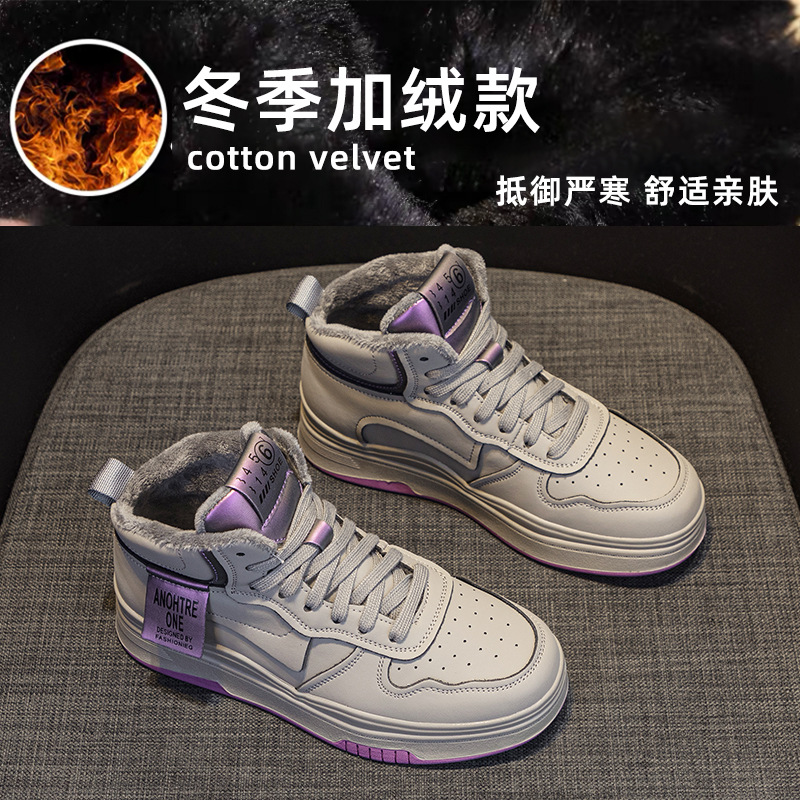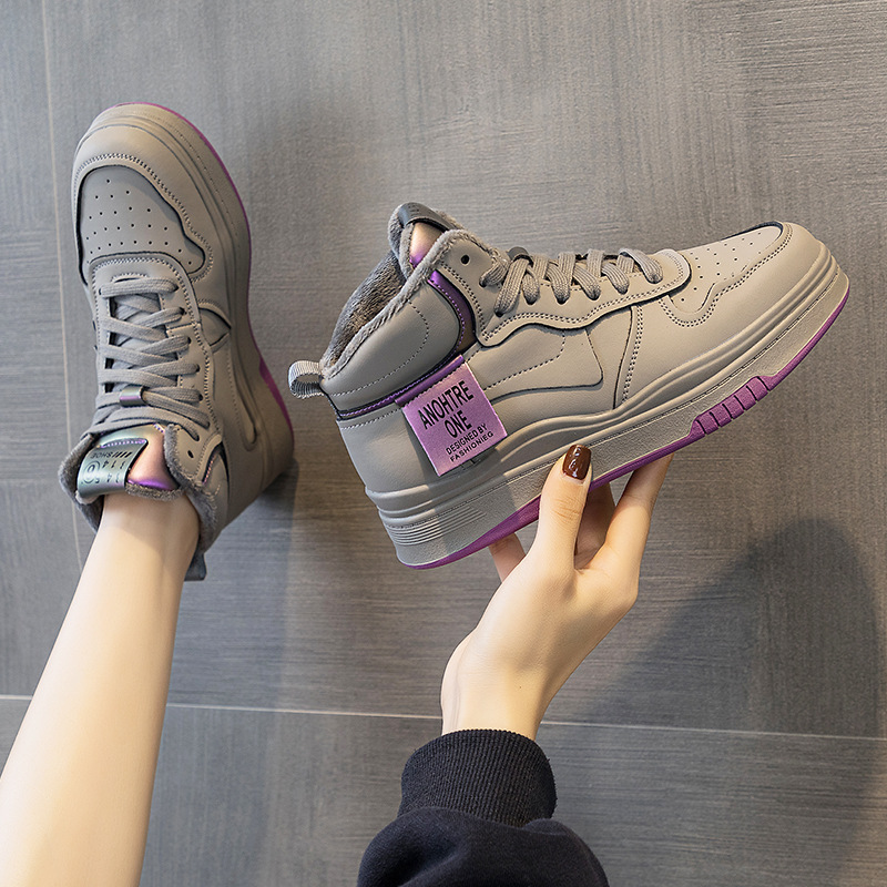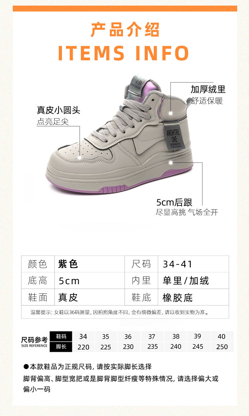 Высокие кожаные маленькие белые туфли женская осень и зима 2025 новая корейская версия дикая бархатная спортивная обувь с толстым дном