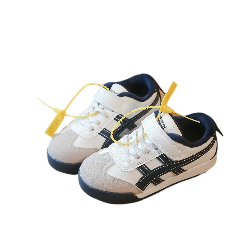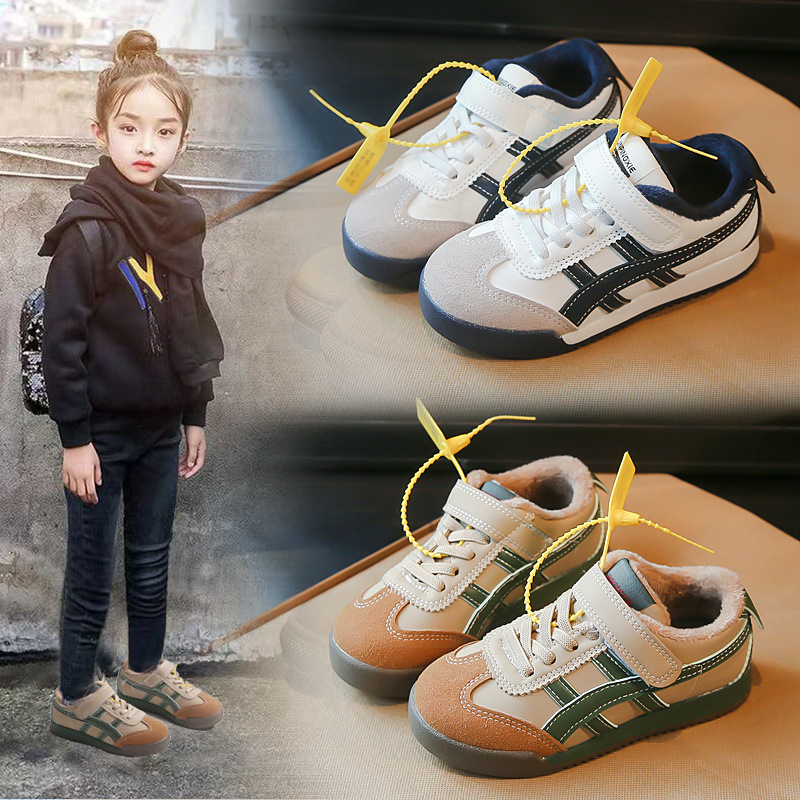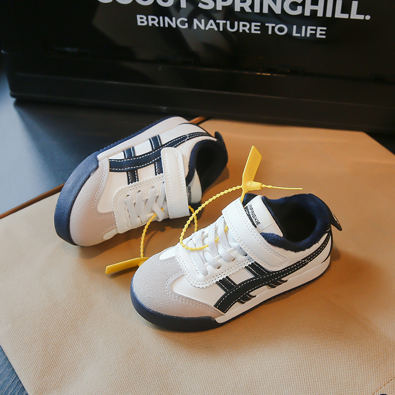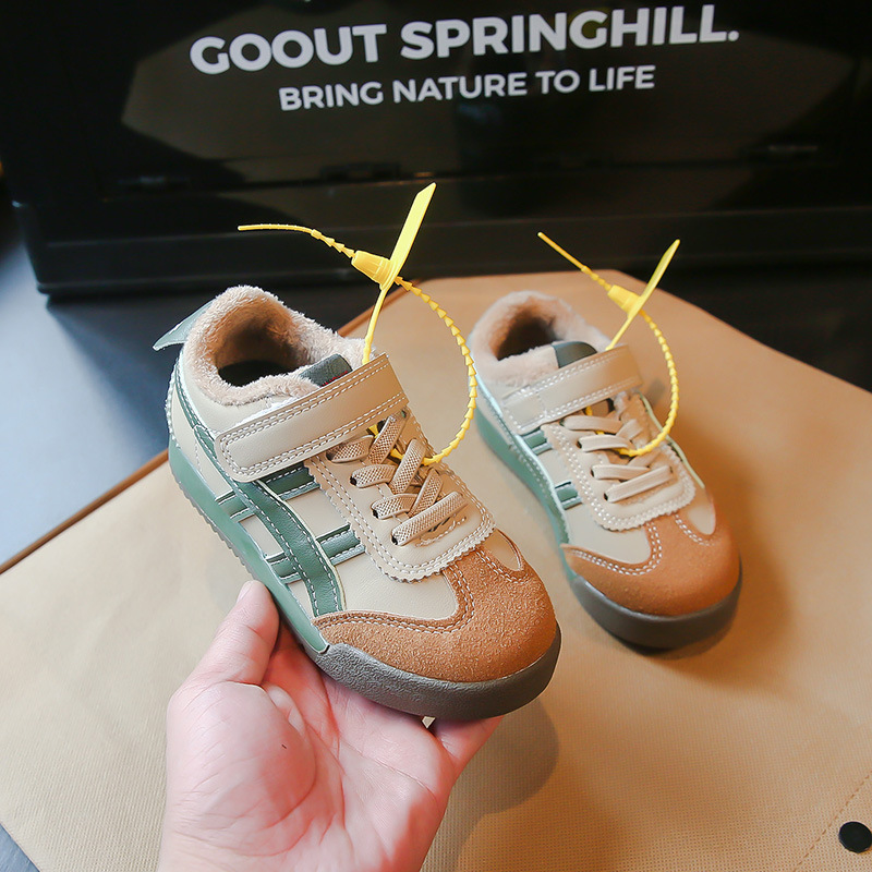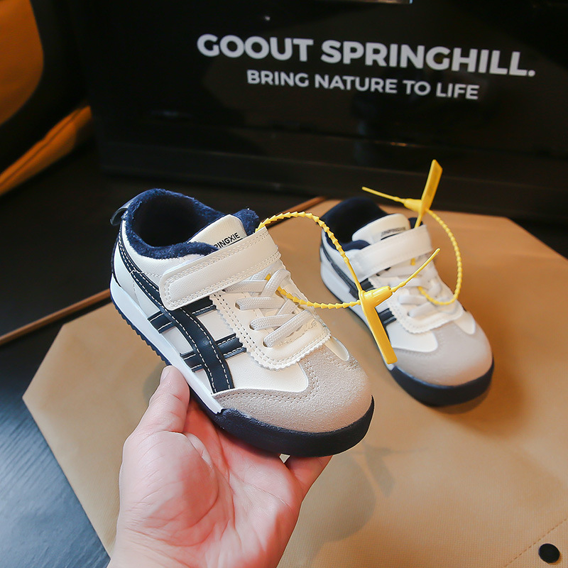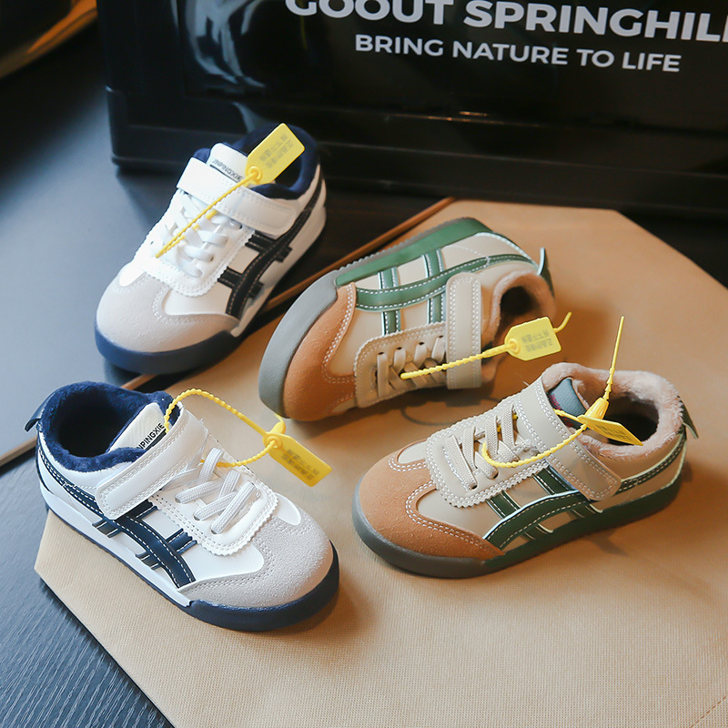 Детские кроссовки 2023 Осенне-зимние новые кроссовки для мальчиков Детские модные флисовые туфли для девочек из двух хлопка