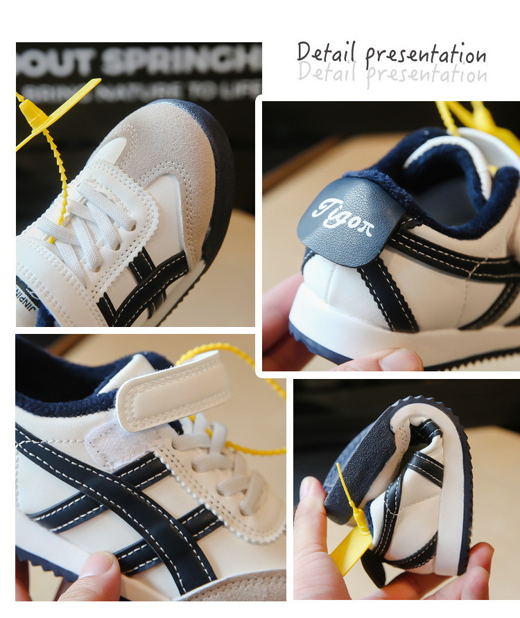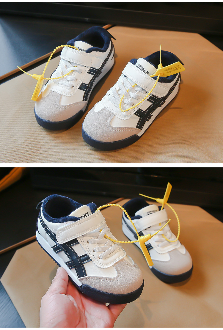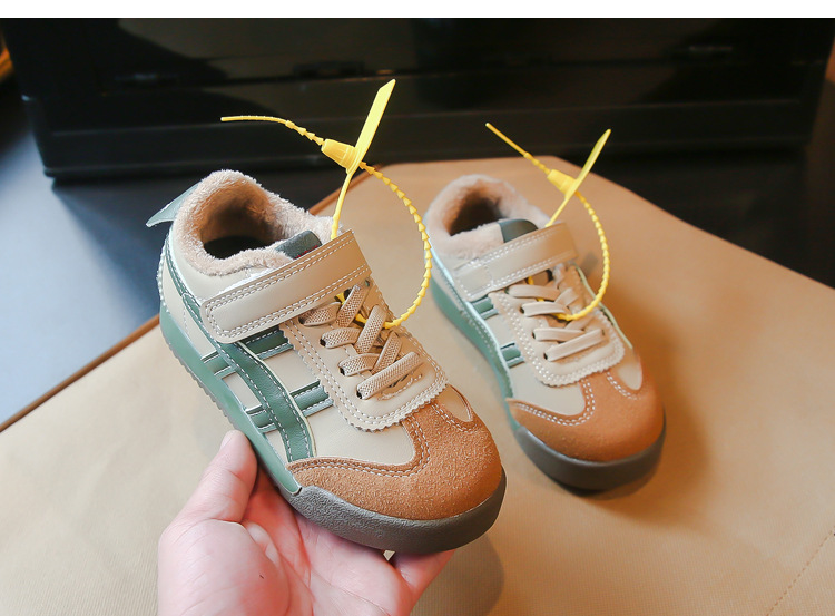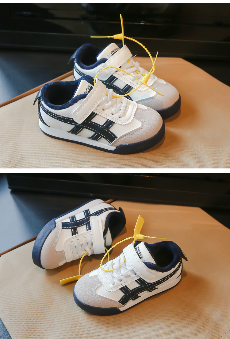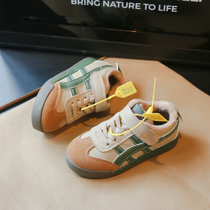 Детские кроссовки 2023 Осенне-зимние новые кроссовки для мальчиков Детские модные флисовые туфли для девочек из двух хлопка