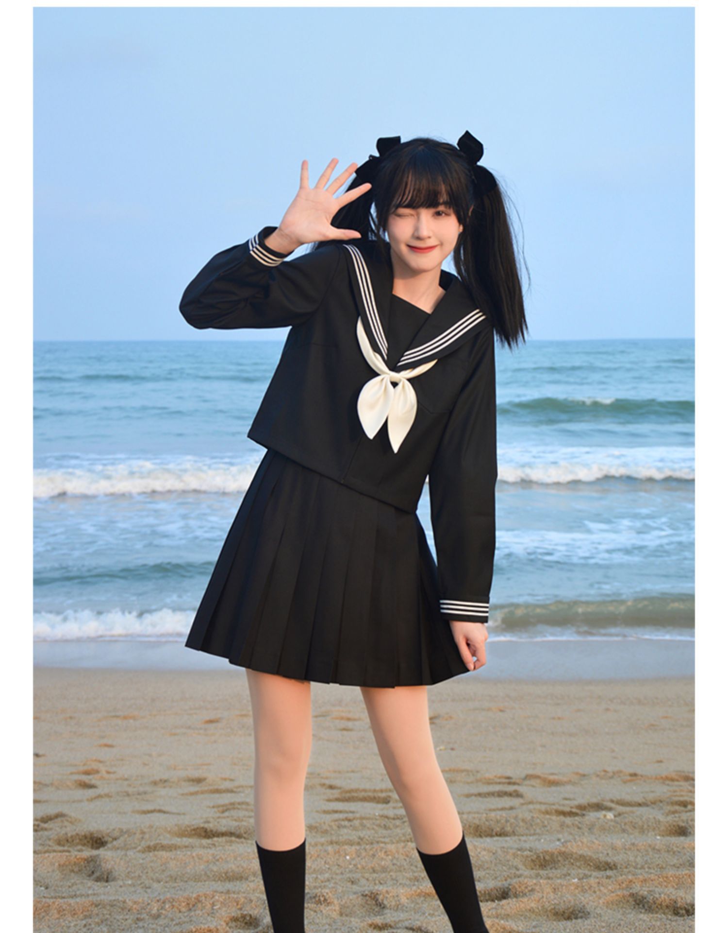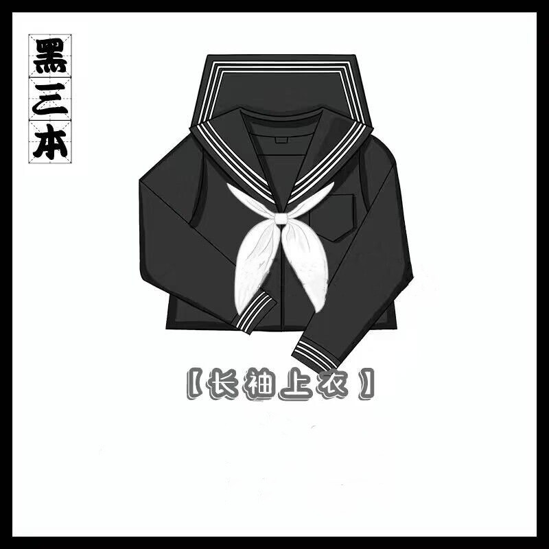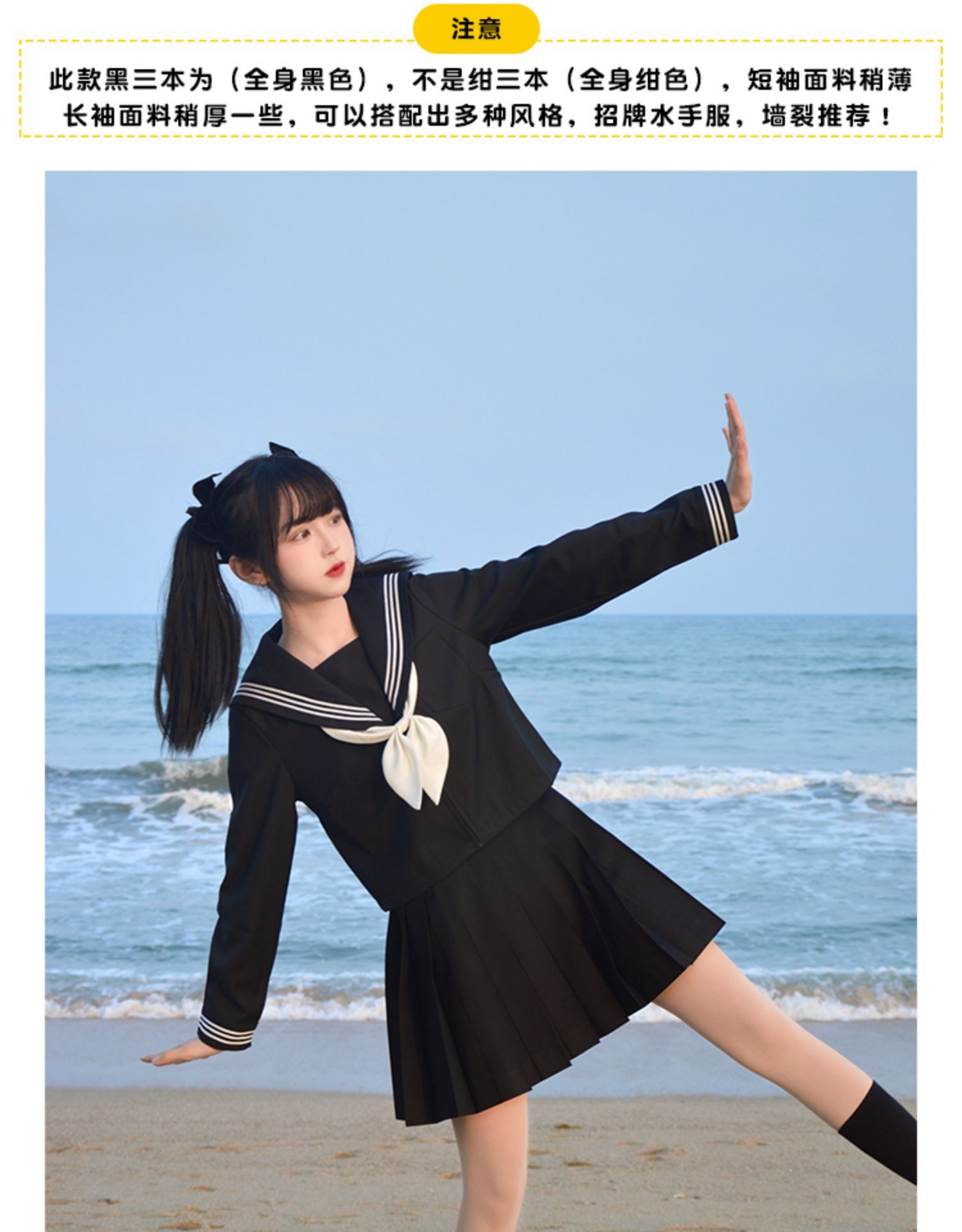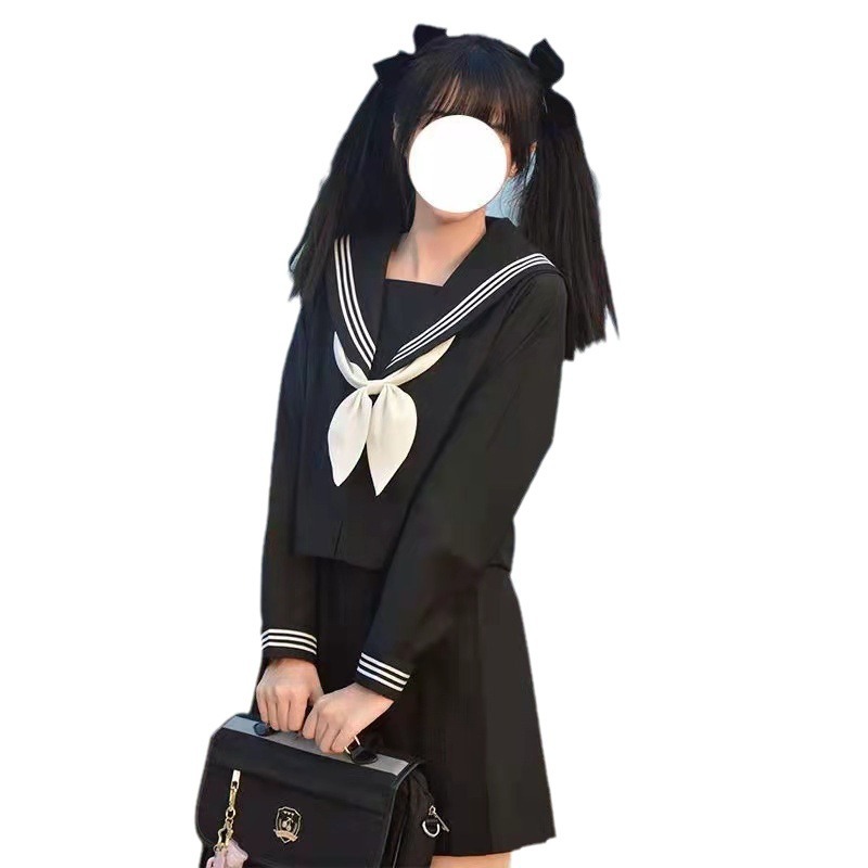 Черный костюм моряка с тремя длинными рукавами Японский Базовый костюм JK Униформа длинная юбка полный академический стиль подлинный Средний Костюм