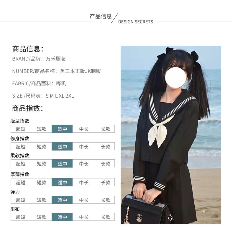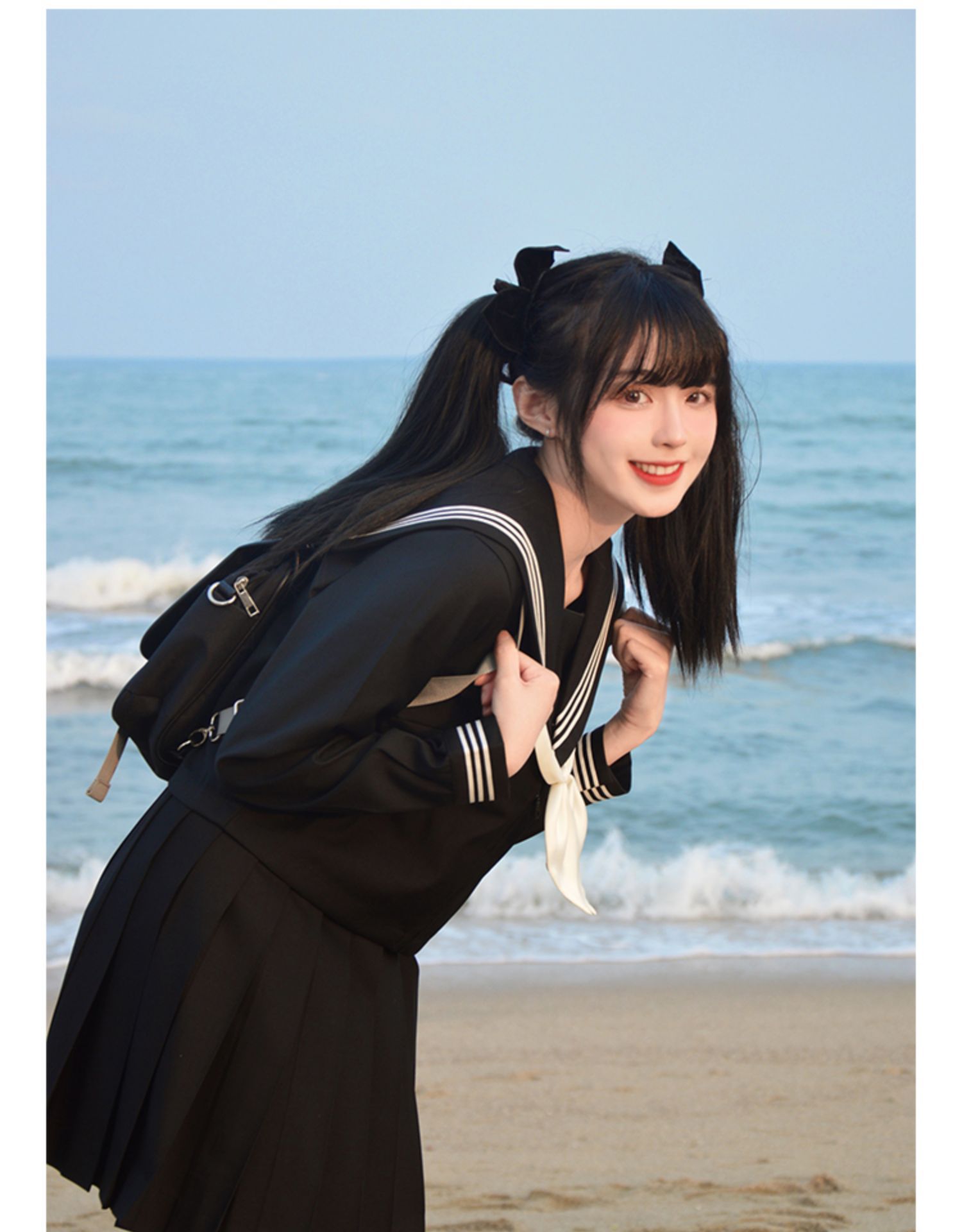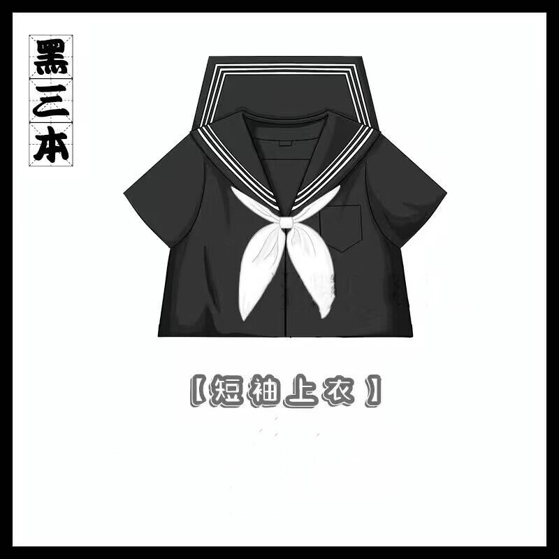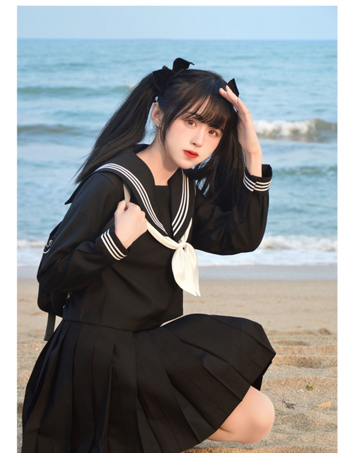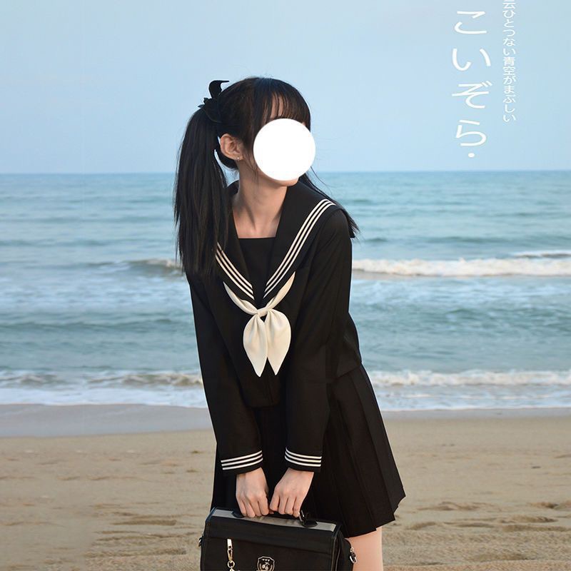 Черный костюм моряка с тремя длинными рукавами Японский Базовый костюм JK Униформа длинная юбка полный академический стиль подлинный Средний Костюм