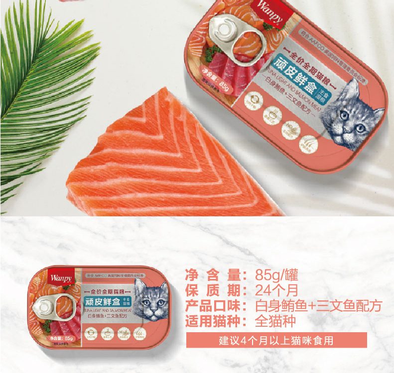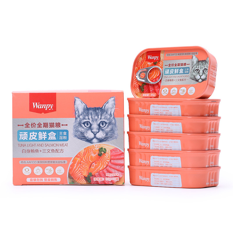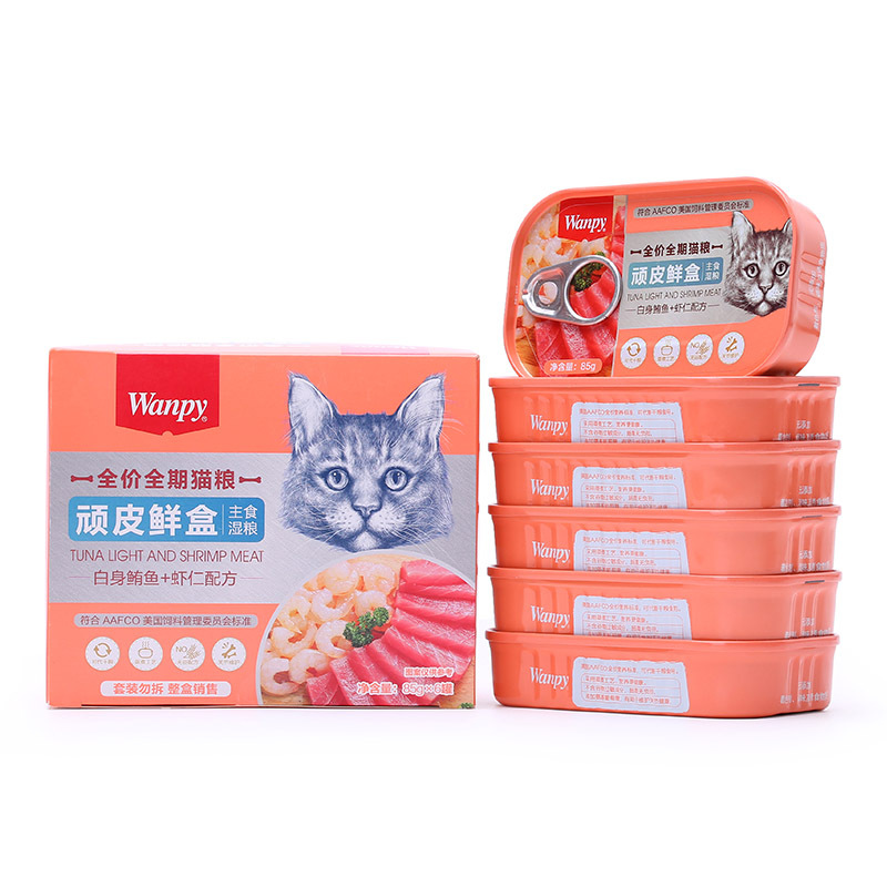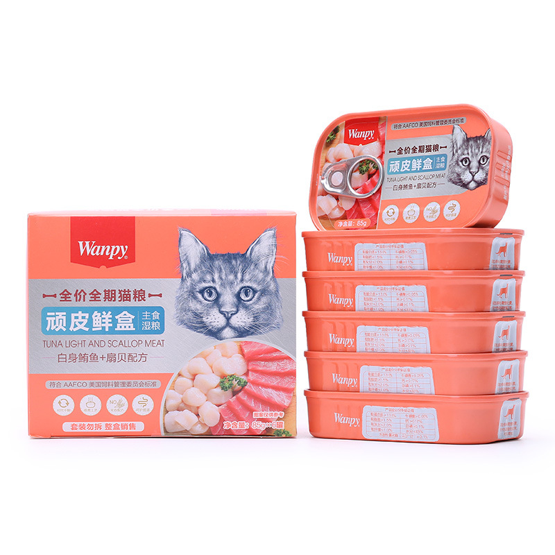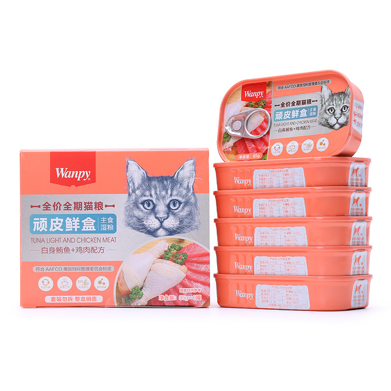 Влажный корм для кошек Naughty Cat, консервы в коробке, Wanpy, полнорационный корм для всех возрастов, 85 г.