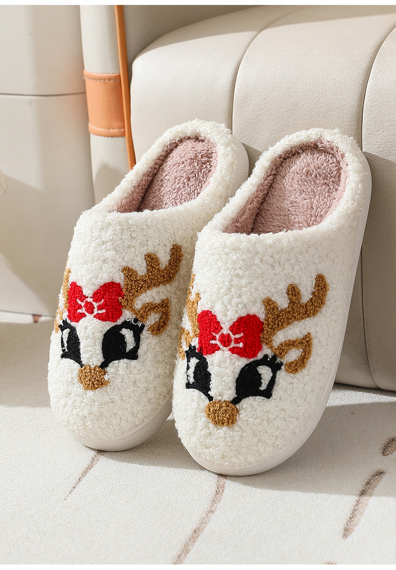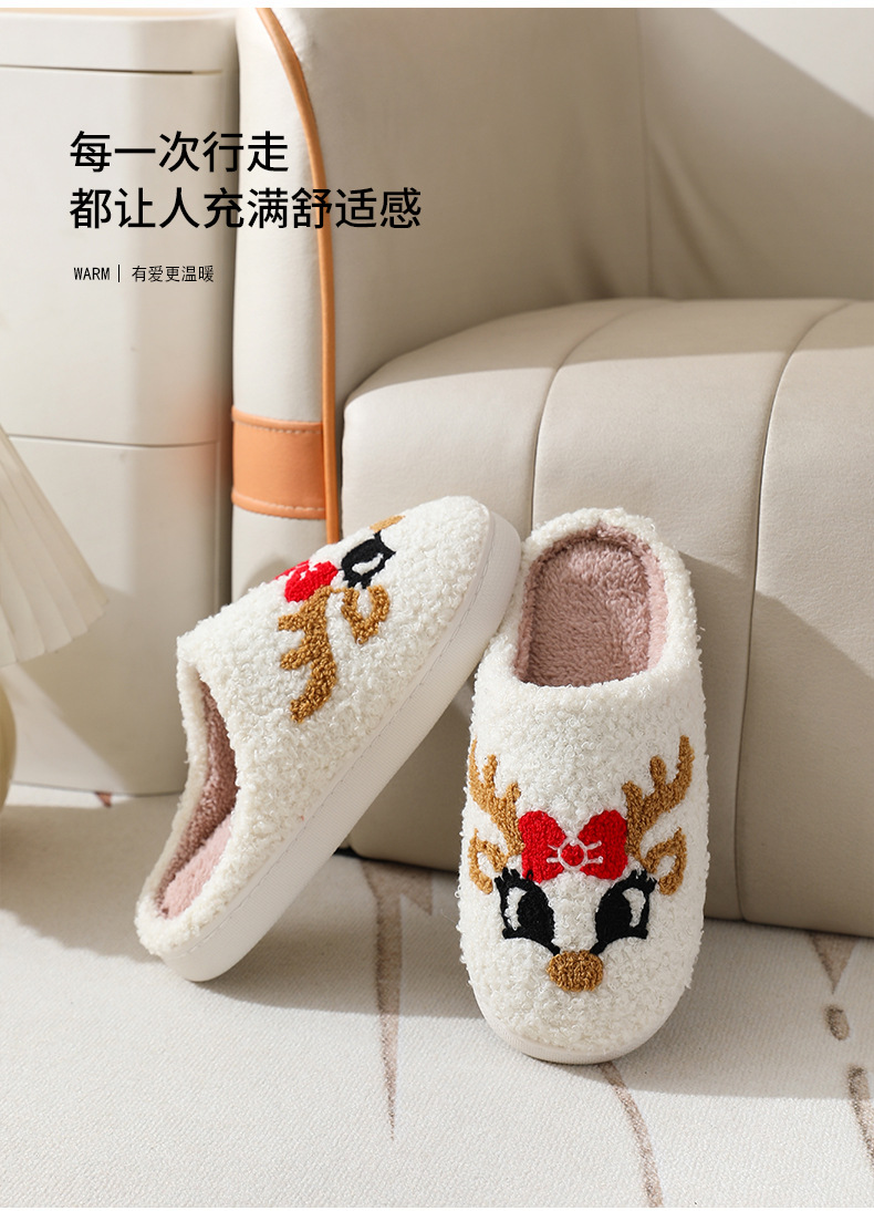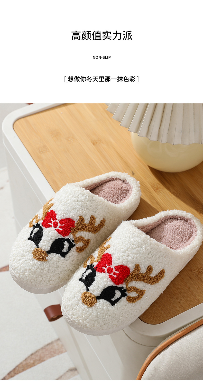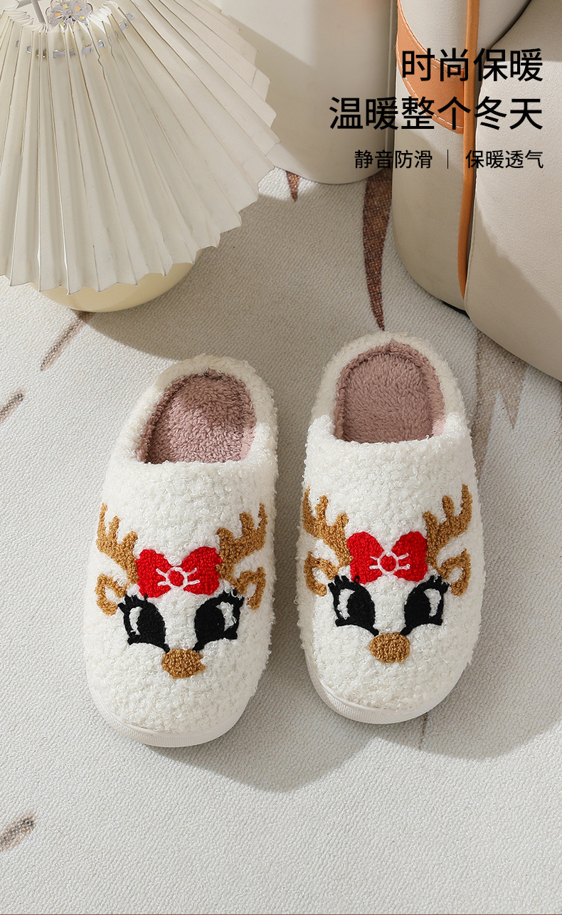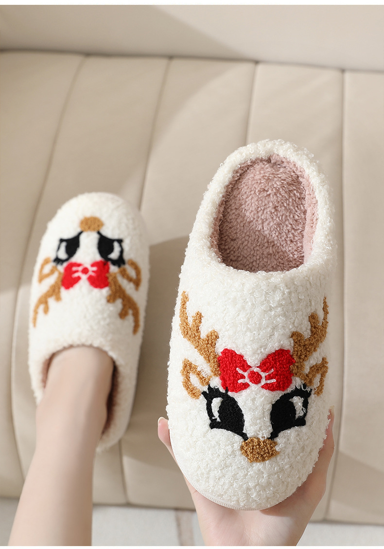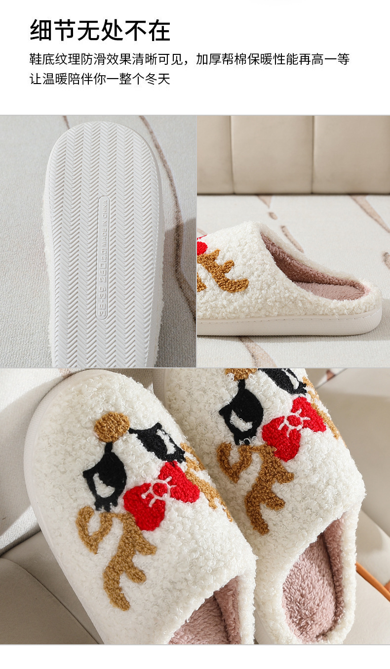 Новые рождественские тапочки из лисьего хлопка для мужчин и женщин, осенне-зимние милые Мультяшные домашние Нескользящие домашние плюшевые хлопковые туфли для пар