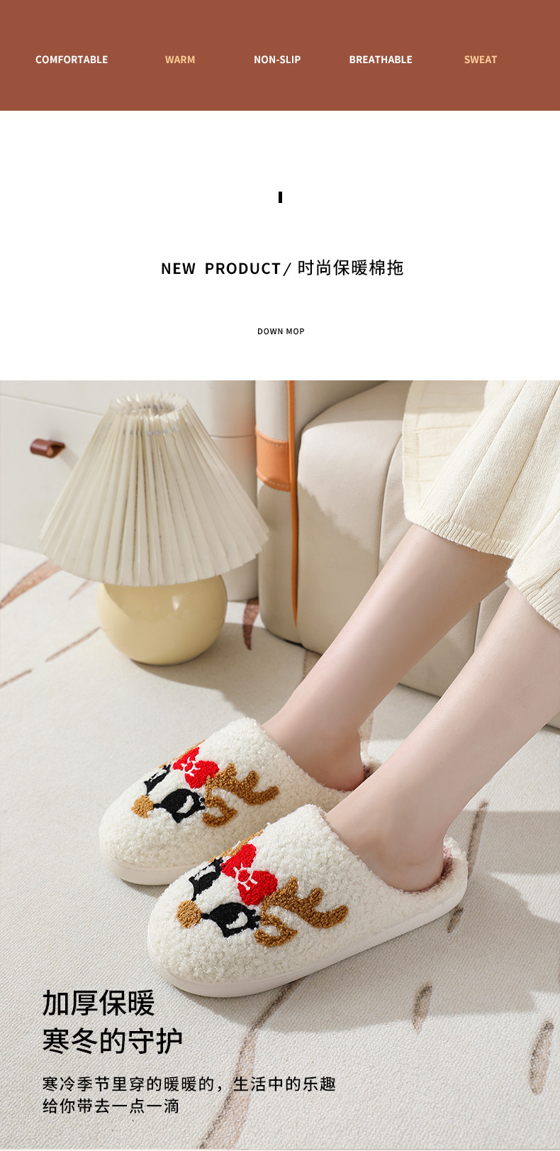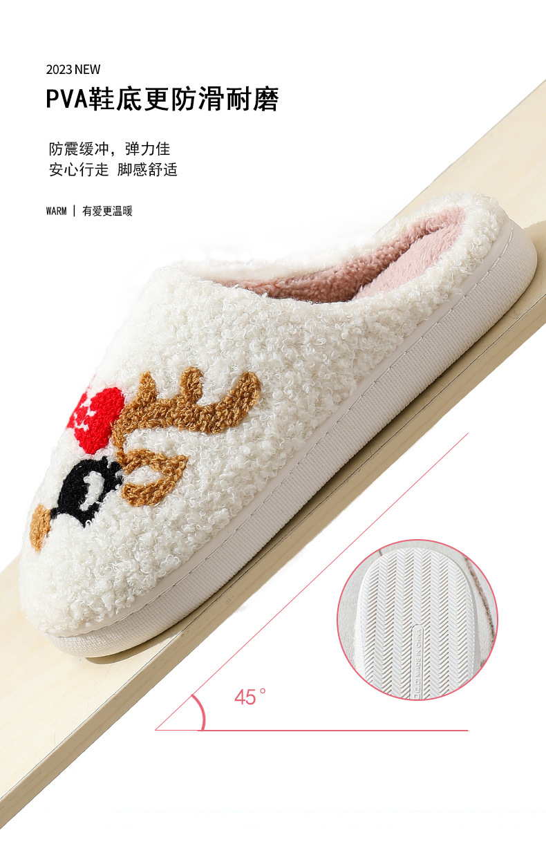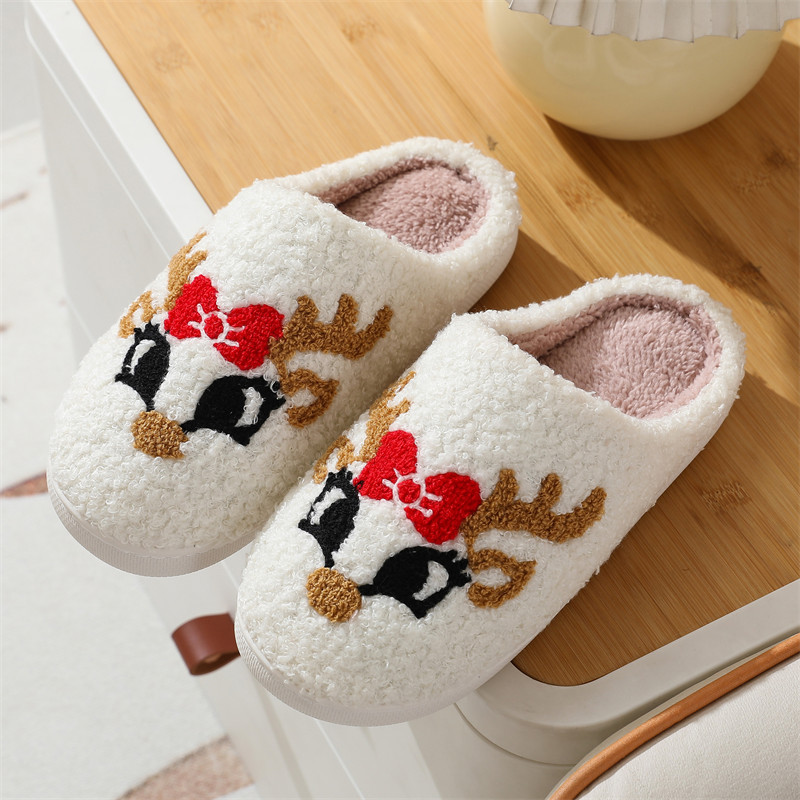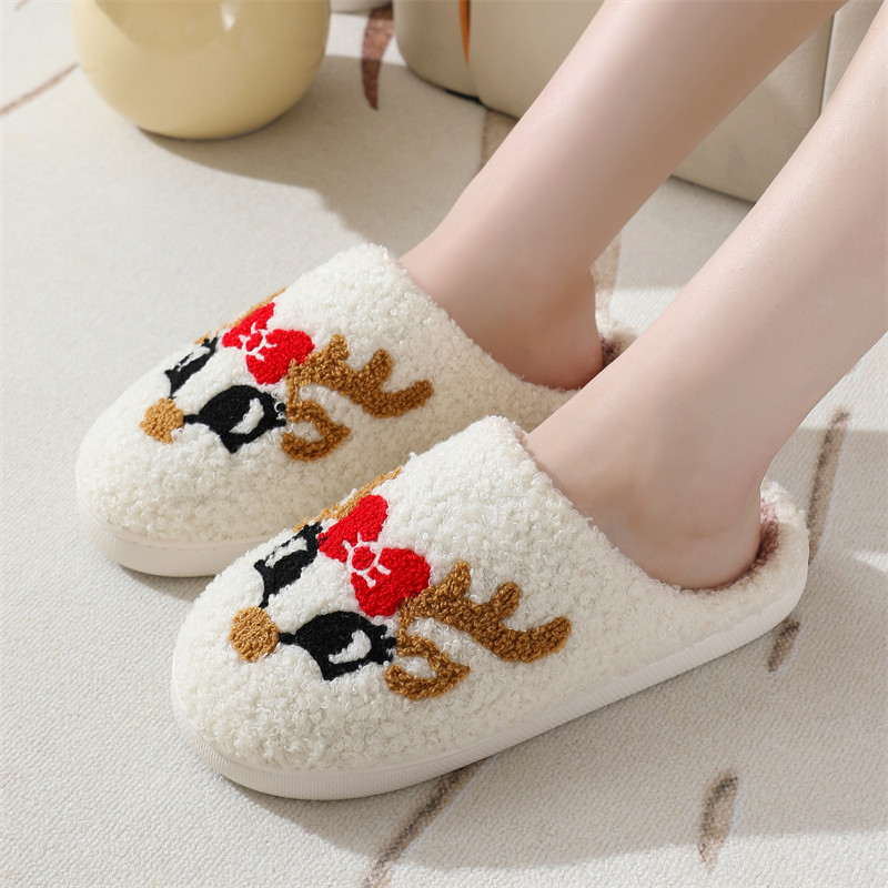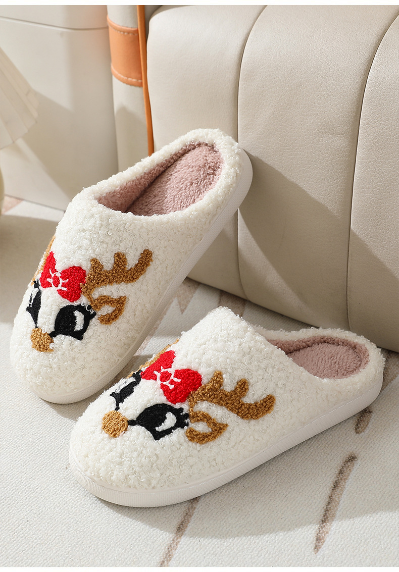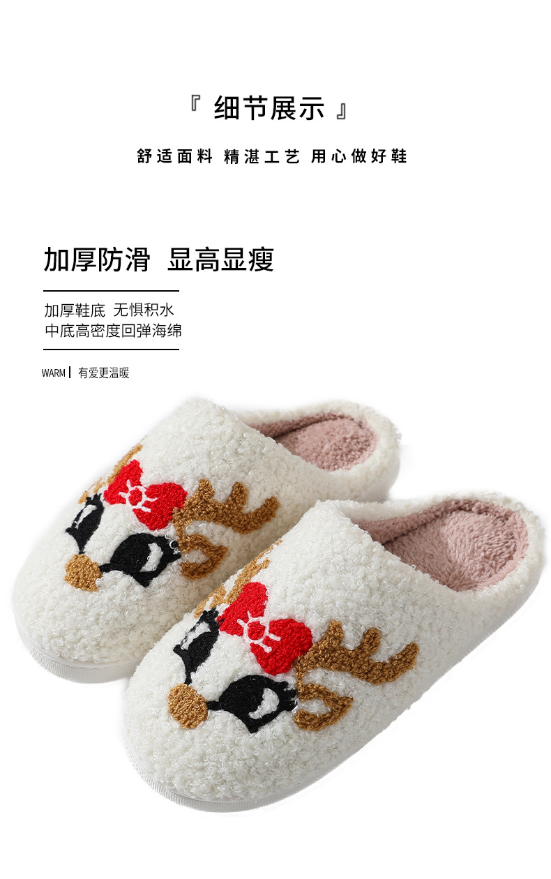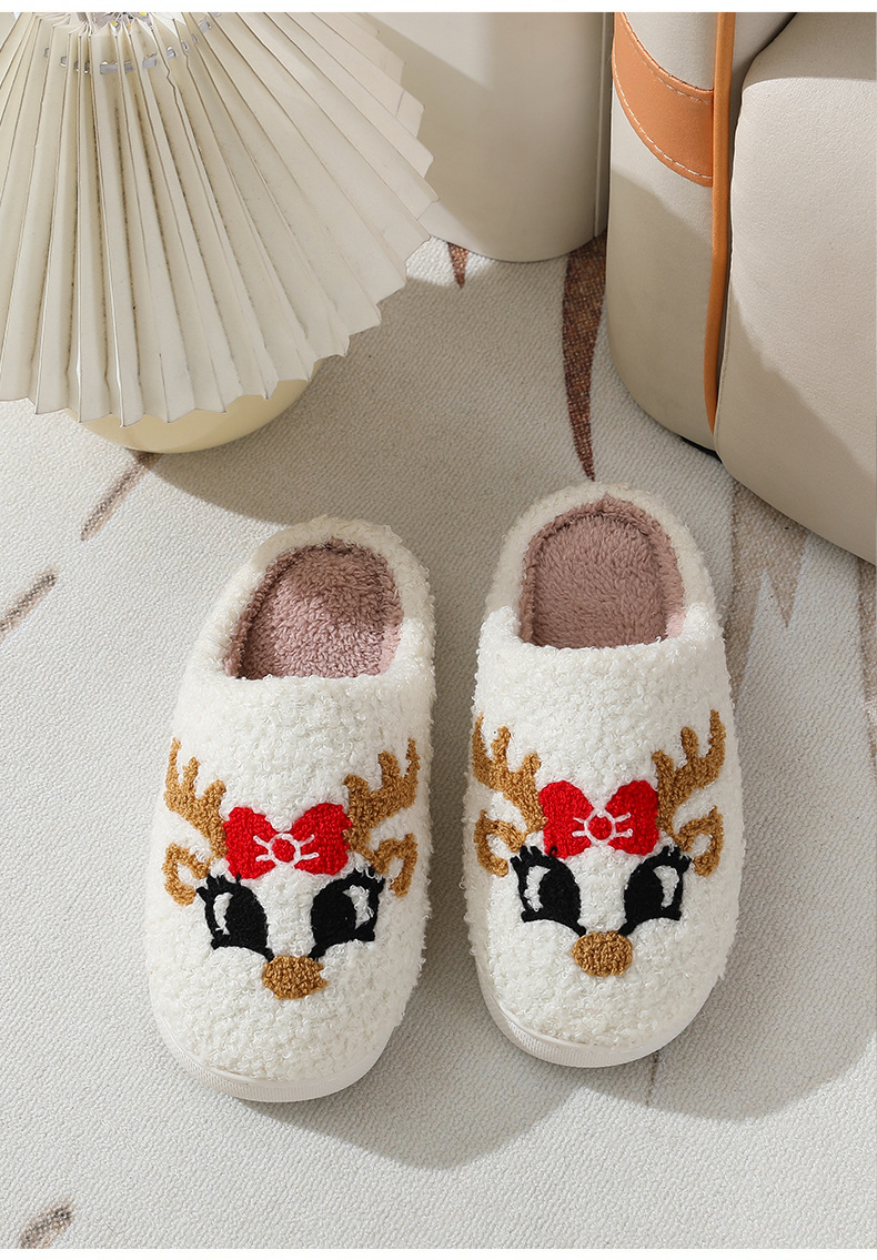 Новые рождественские тапочки из лисьего хлопка для мужчин и женщин, осенне-зимние милые Мультяшные домашние Нескользящие домашние плюшевые хлопковые туфли для пар