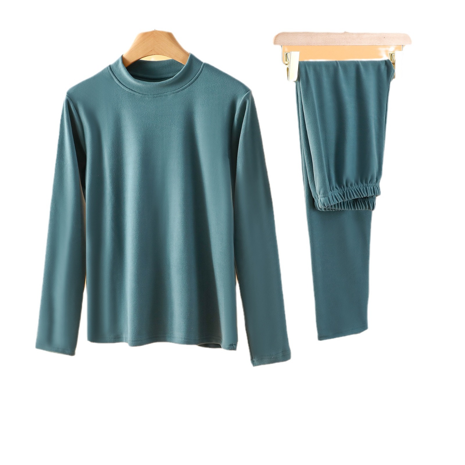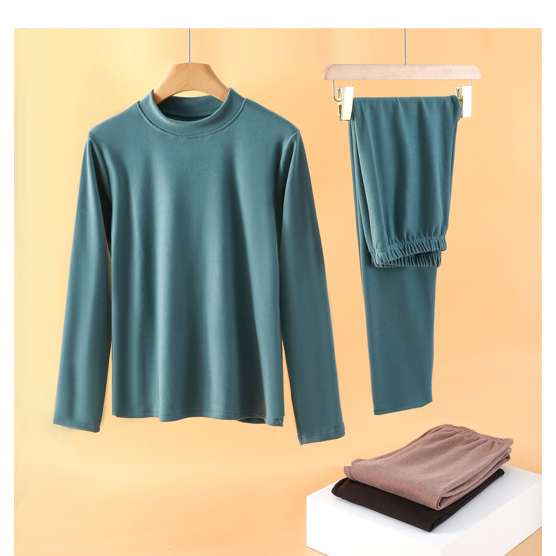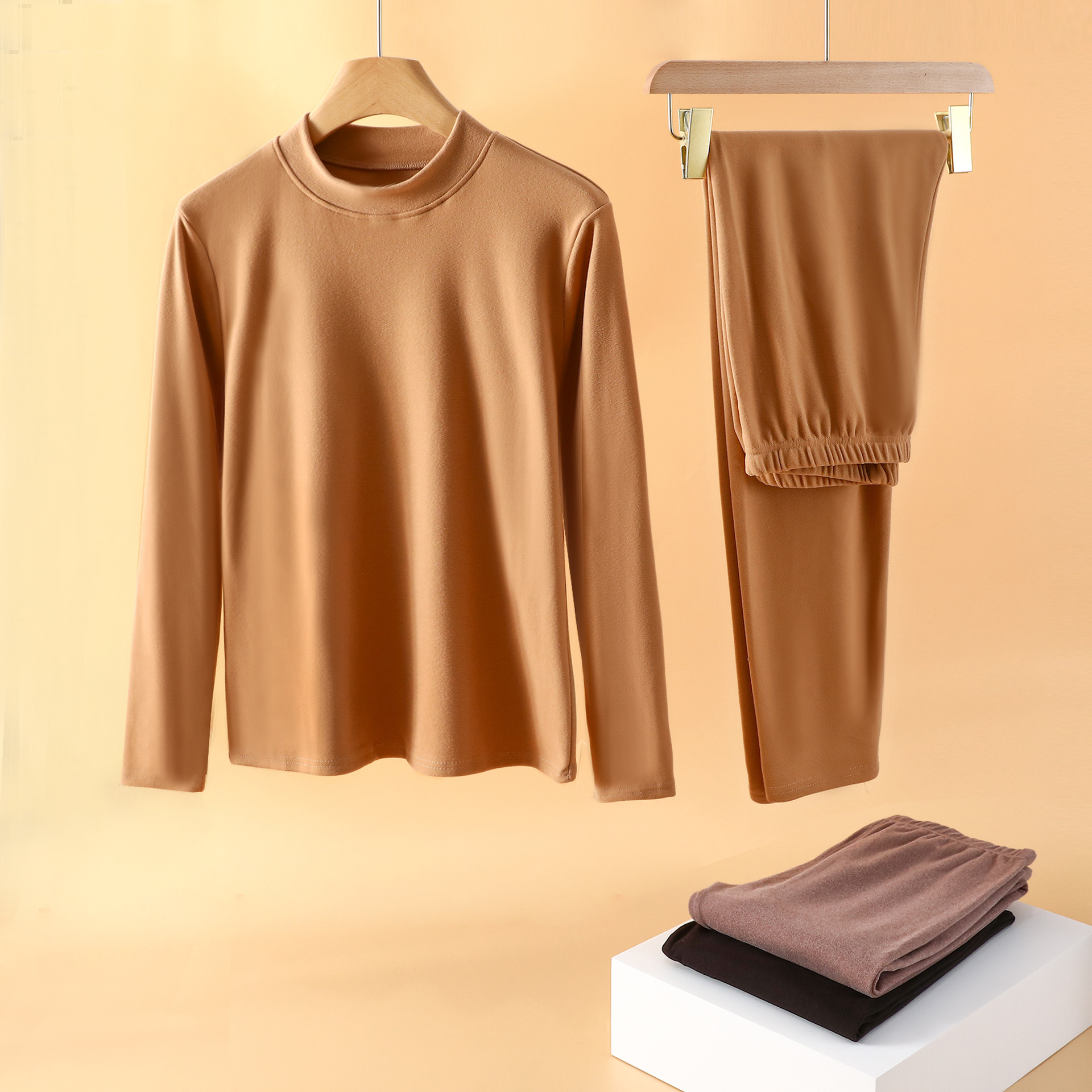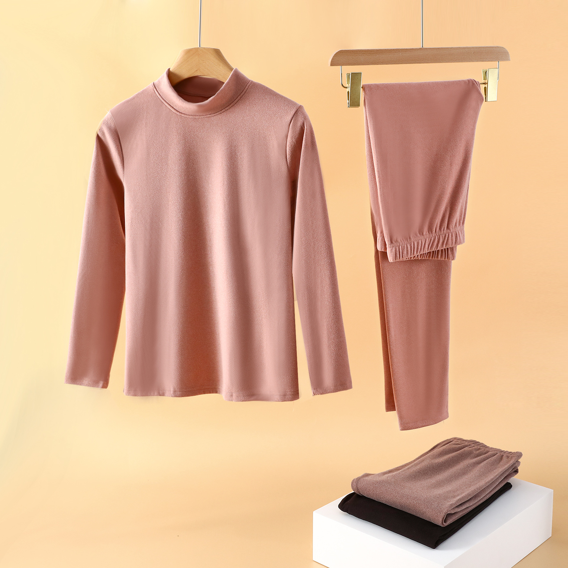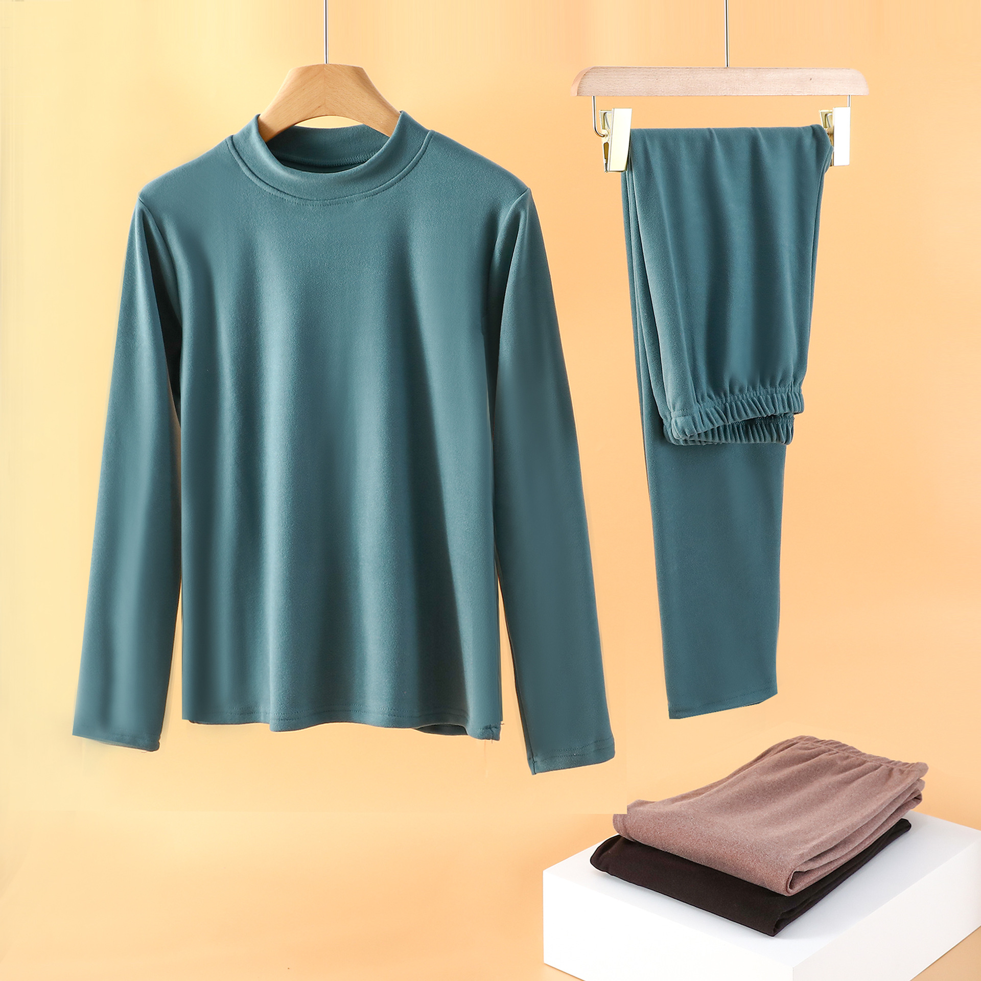 Женский костюм с длинным рукавом и воротником Desong, однотонная Базовая рубашка, теплый домашний комплект из двух предметов для осени и зимы