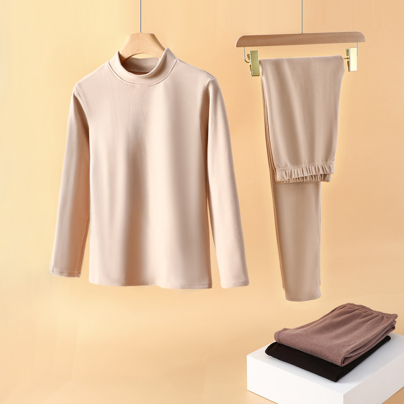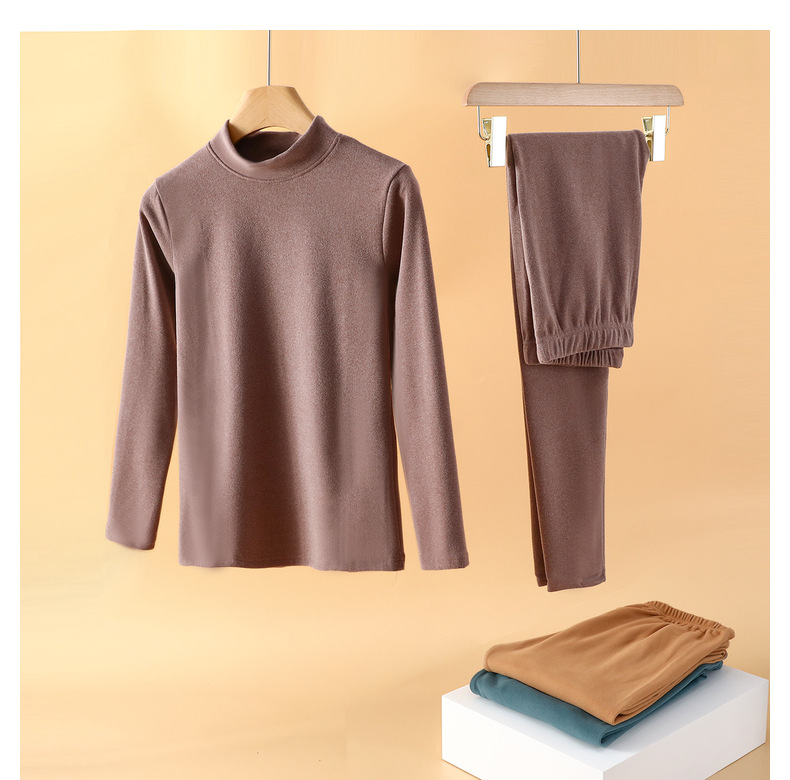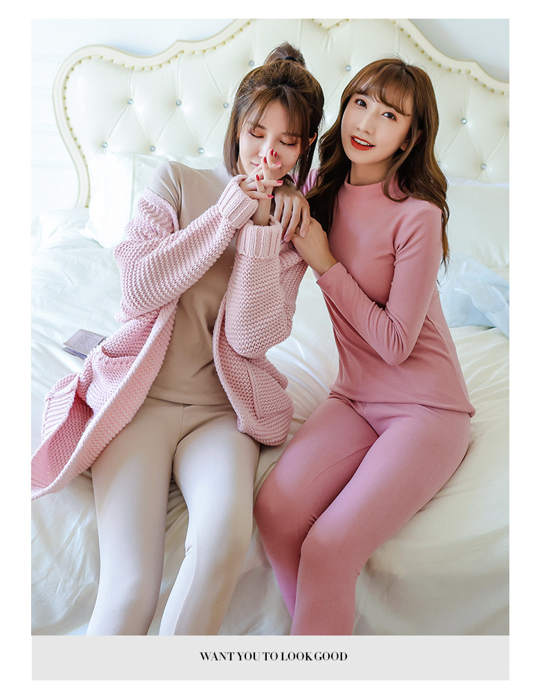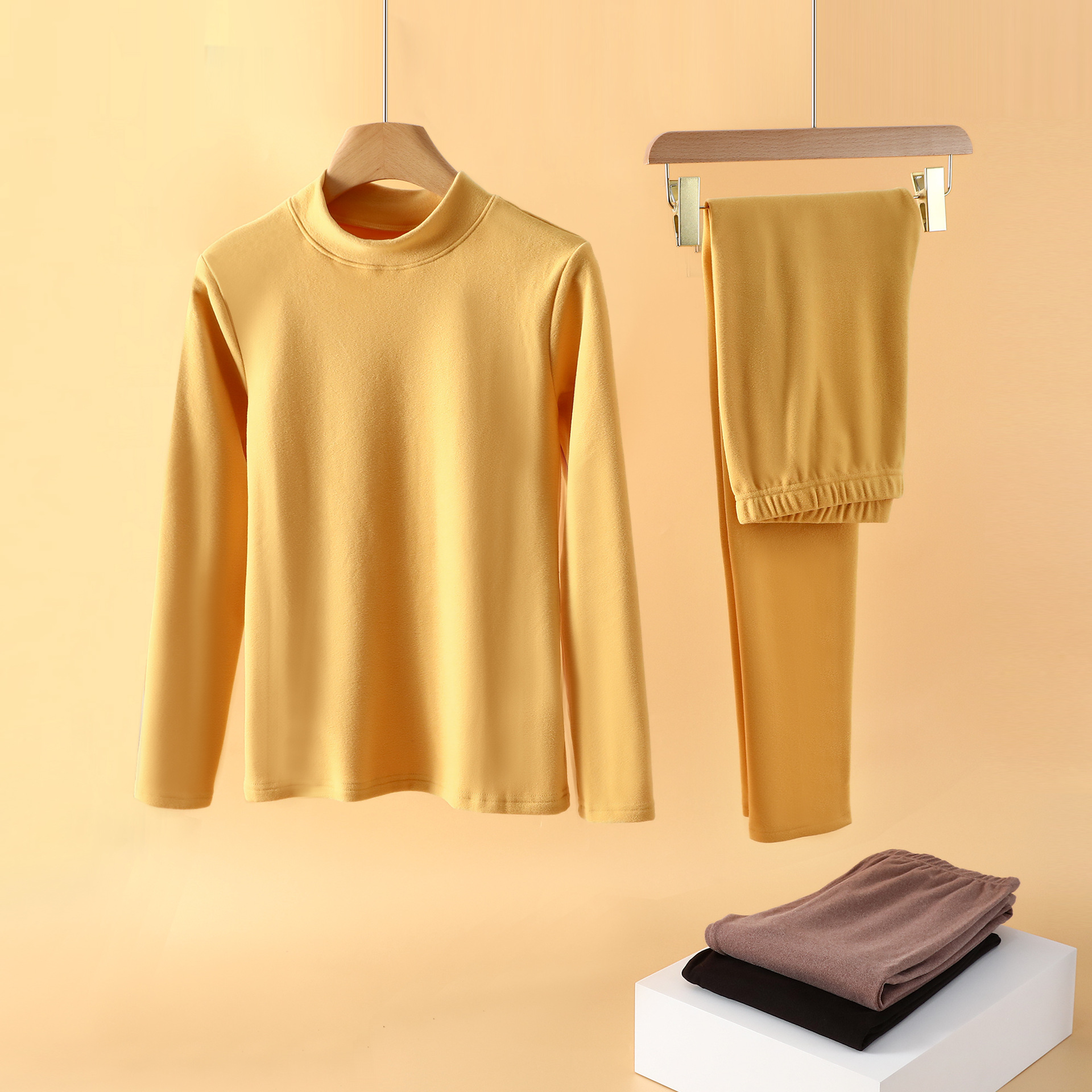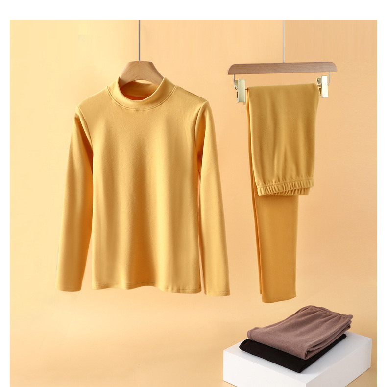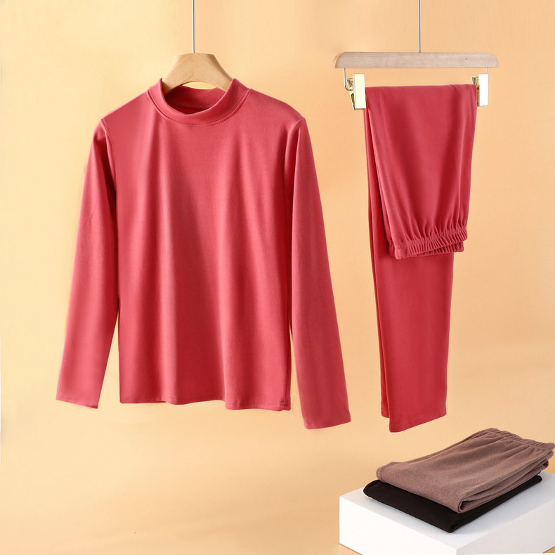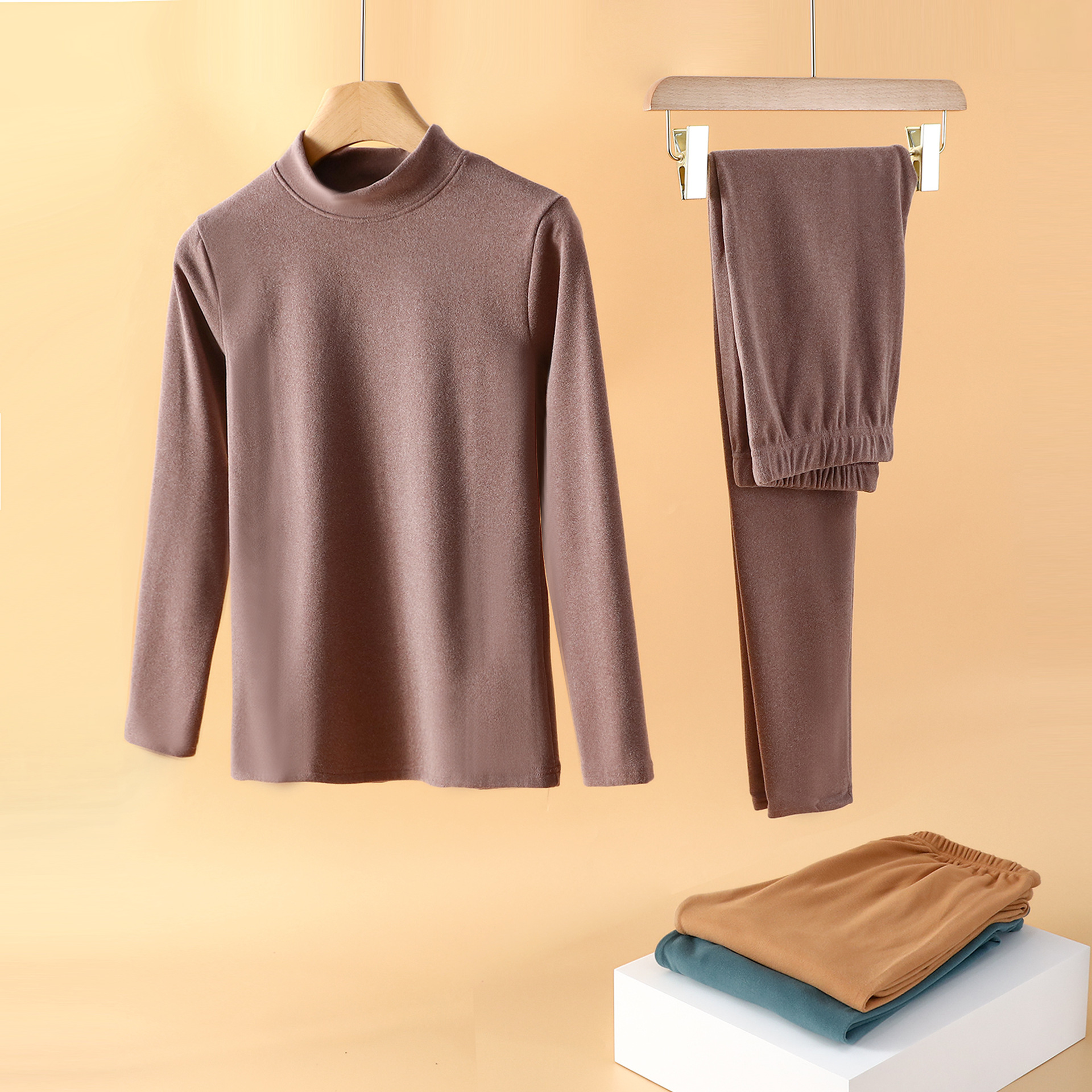 Женский костюм с длинным рукавом и воротником Desong, однотонная Базовая рубашка, теплый домашний комплект из двух предметов для осени и зимы