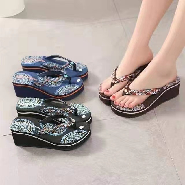 Вьетнамские тапочки Вьетнамки, женская летняя модная верхняя одежда, сандалии на танкетке, пляжные женские тапочки, шлепанцы на платформе