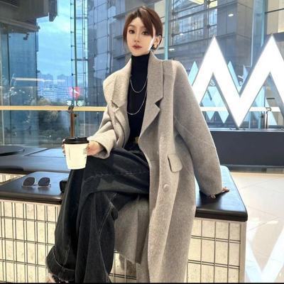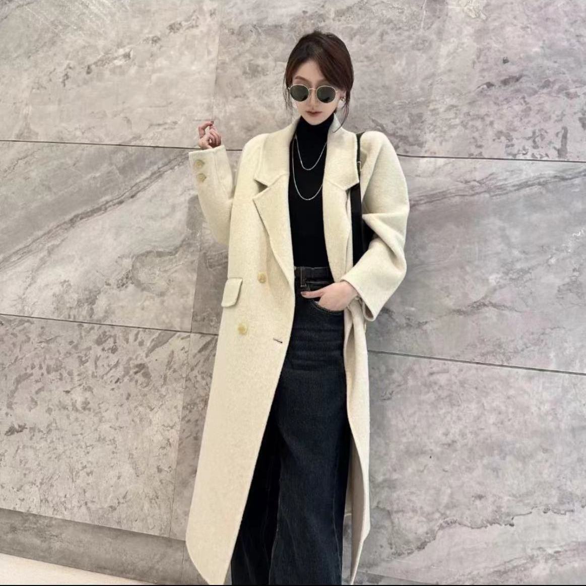 Высококачественная двусторонняя кашемировая верхняя одежда для женщин, стильная новинка осени и зимы 2025 года, утолщенная шерстяная шерстяная верхняя одежда в стиле Хепберн