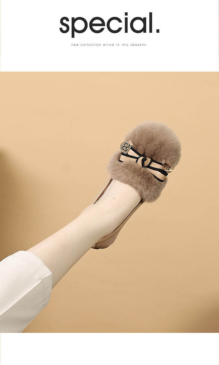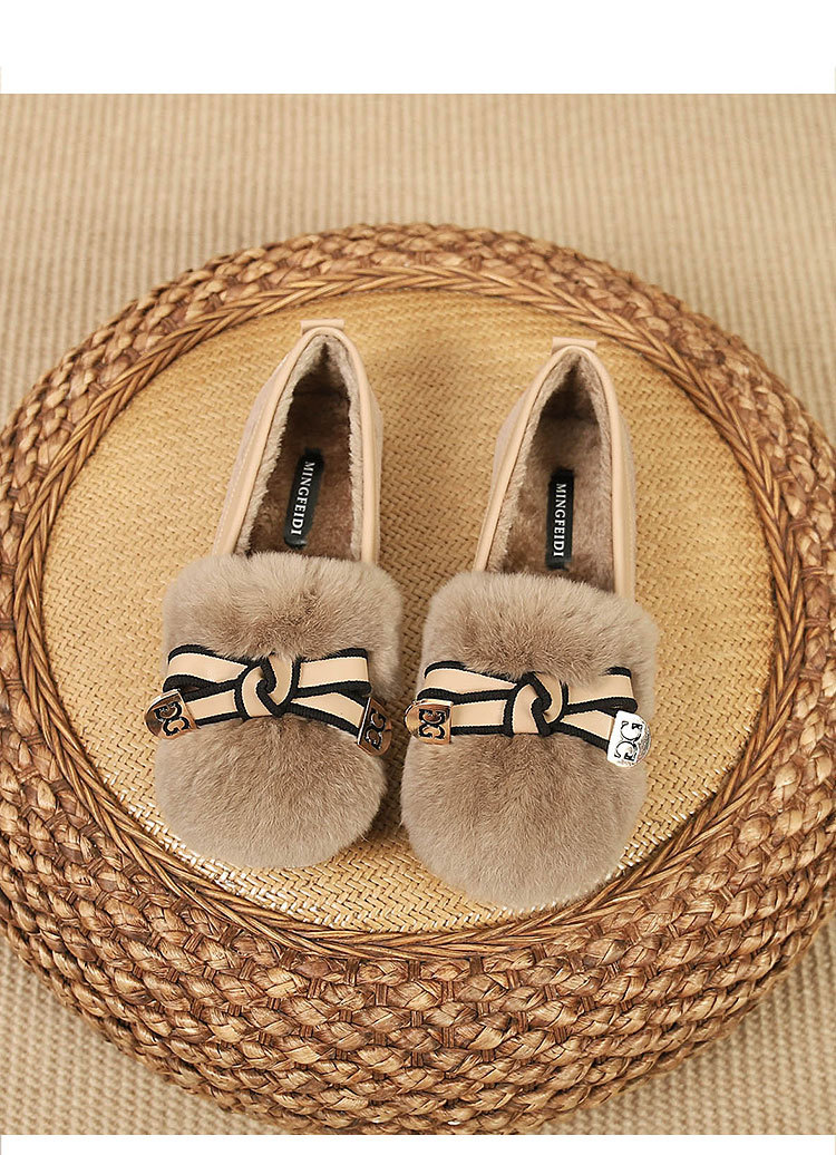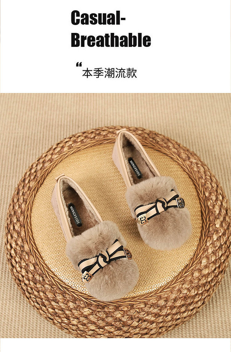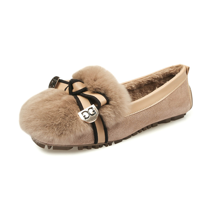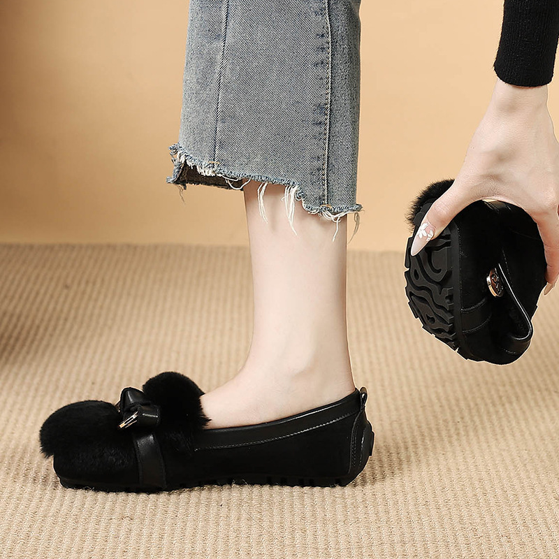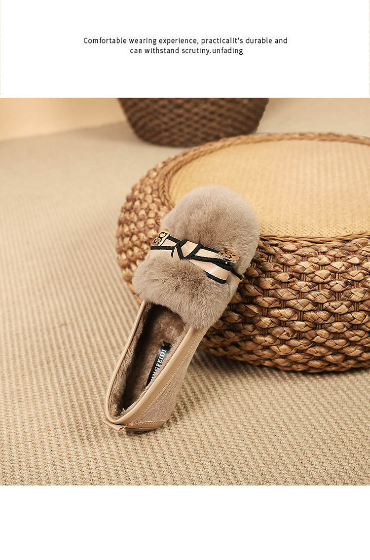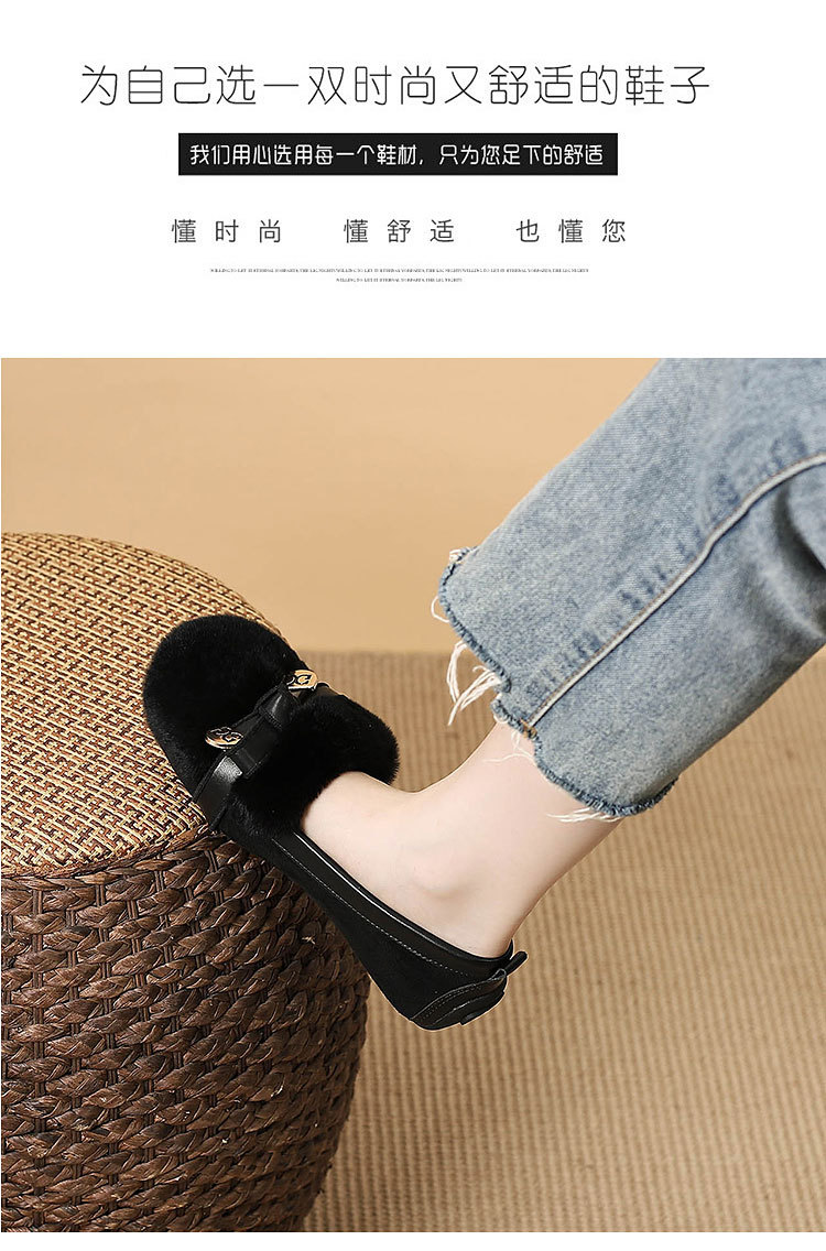 Обувь Mao Женская осень и зима 2023 новые туфли на плоской флисовой подкладке Bean из меха кролика, хлопчатобумажные половники, большие размеры 41-43, зима
