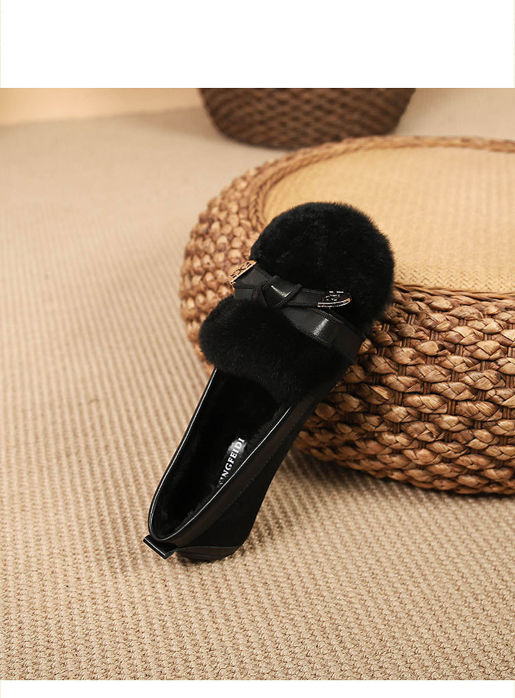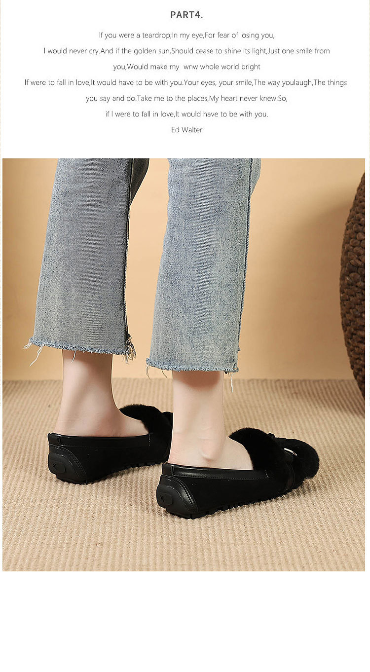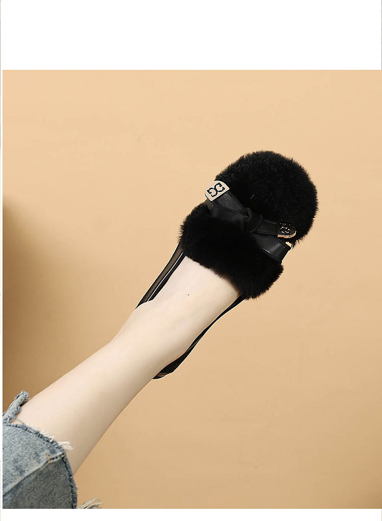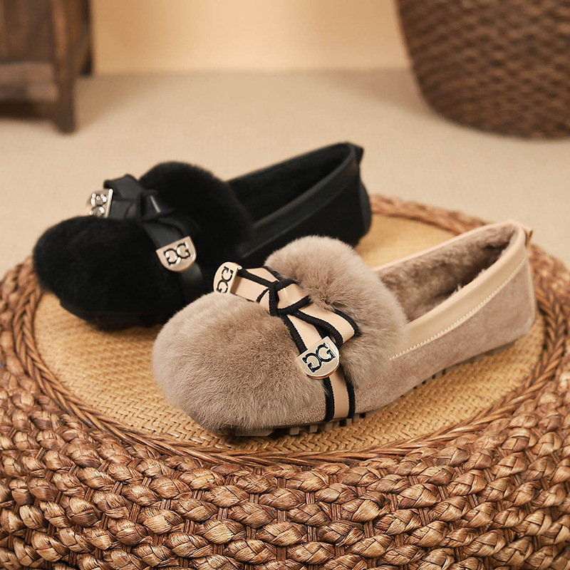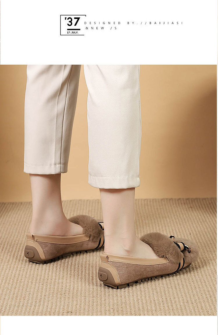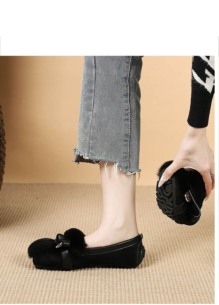 Обувь Mao Женская осень и зима 2023 новые туфли на плоской флисовой подкладке Bean из меха кролика, хлопчатобумажные половники, большие размеры 41-43, зима