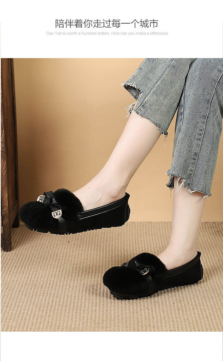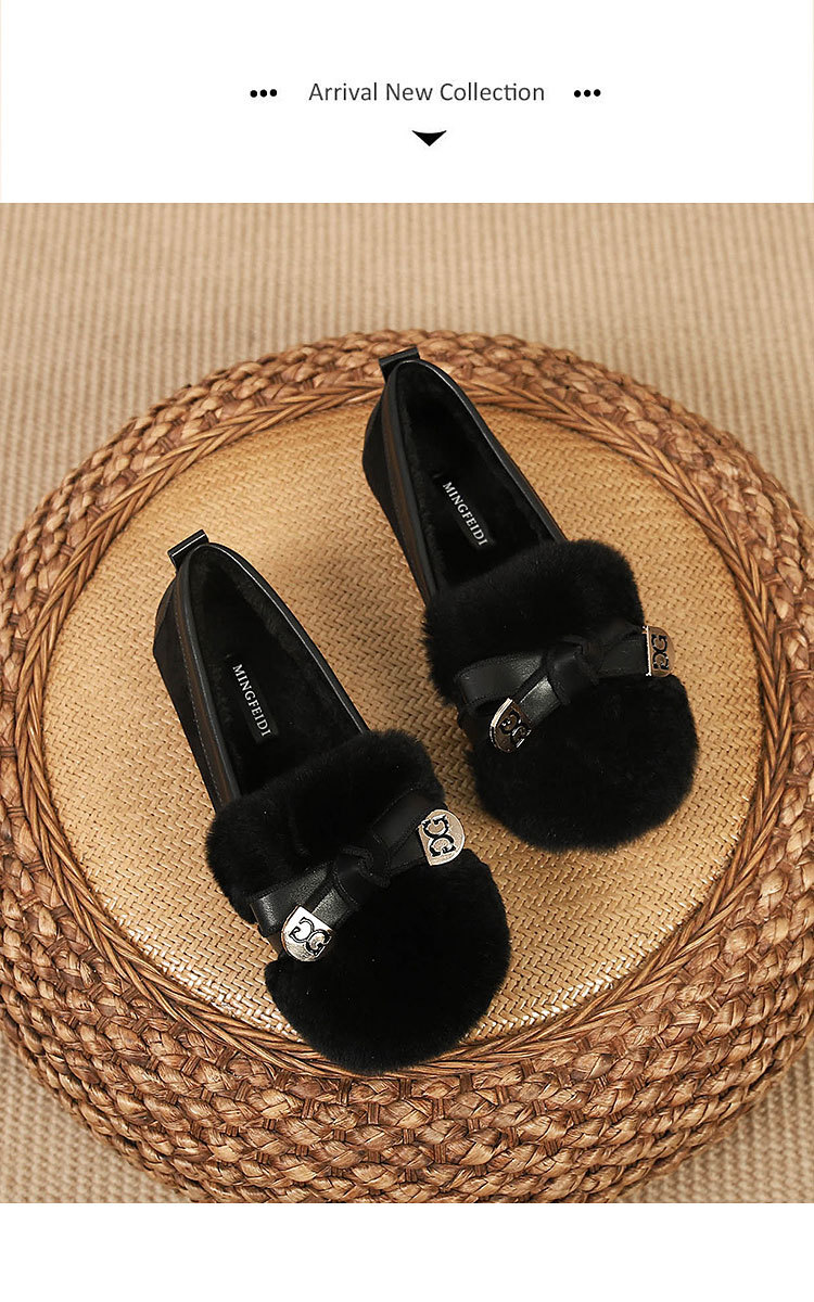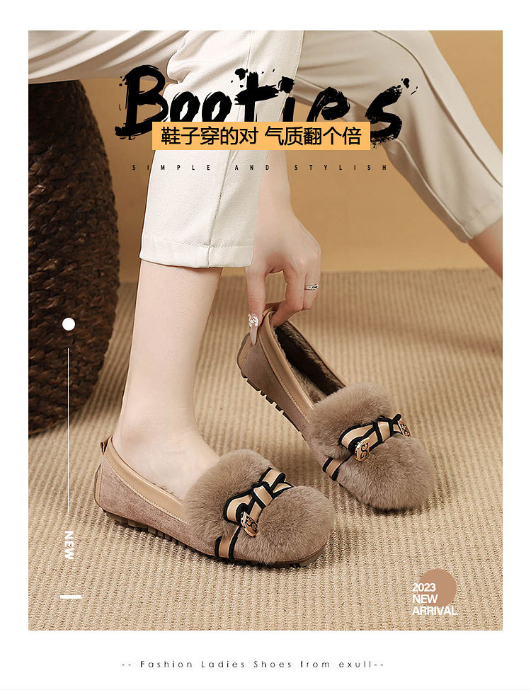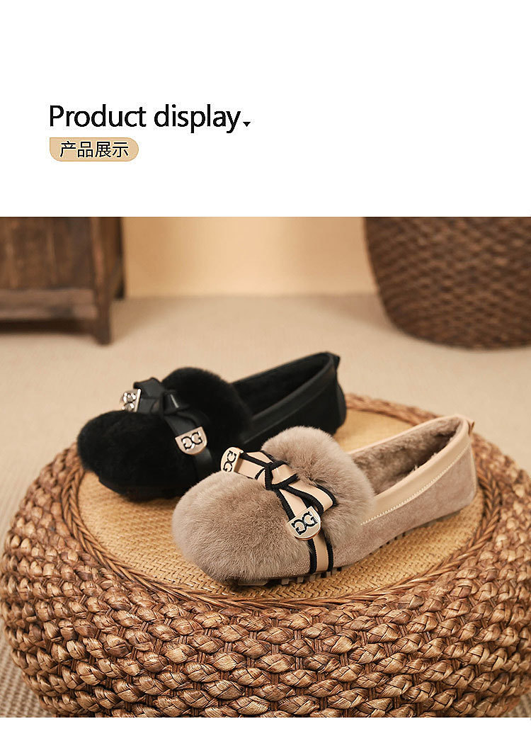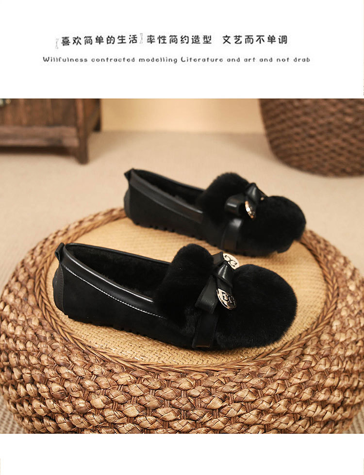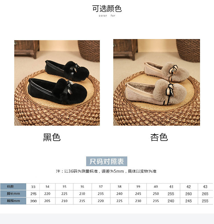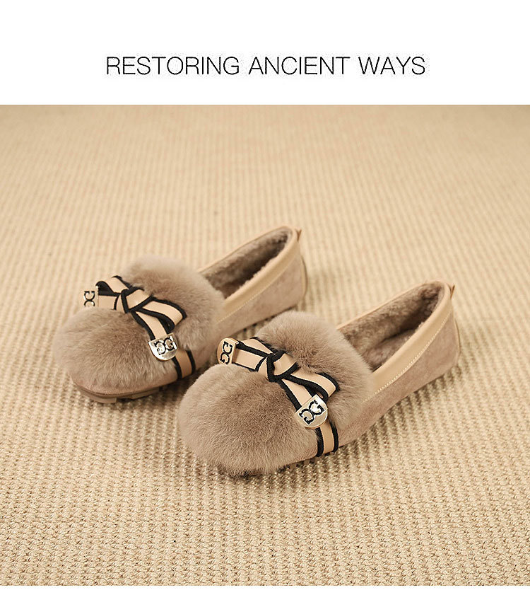 Обувь Mao Женская осень и зима 2023 новые туфли на плоской флисовой подкладке Bean из меха кролика, хлопчатобумажные половники, большие размеры 41-43, зима